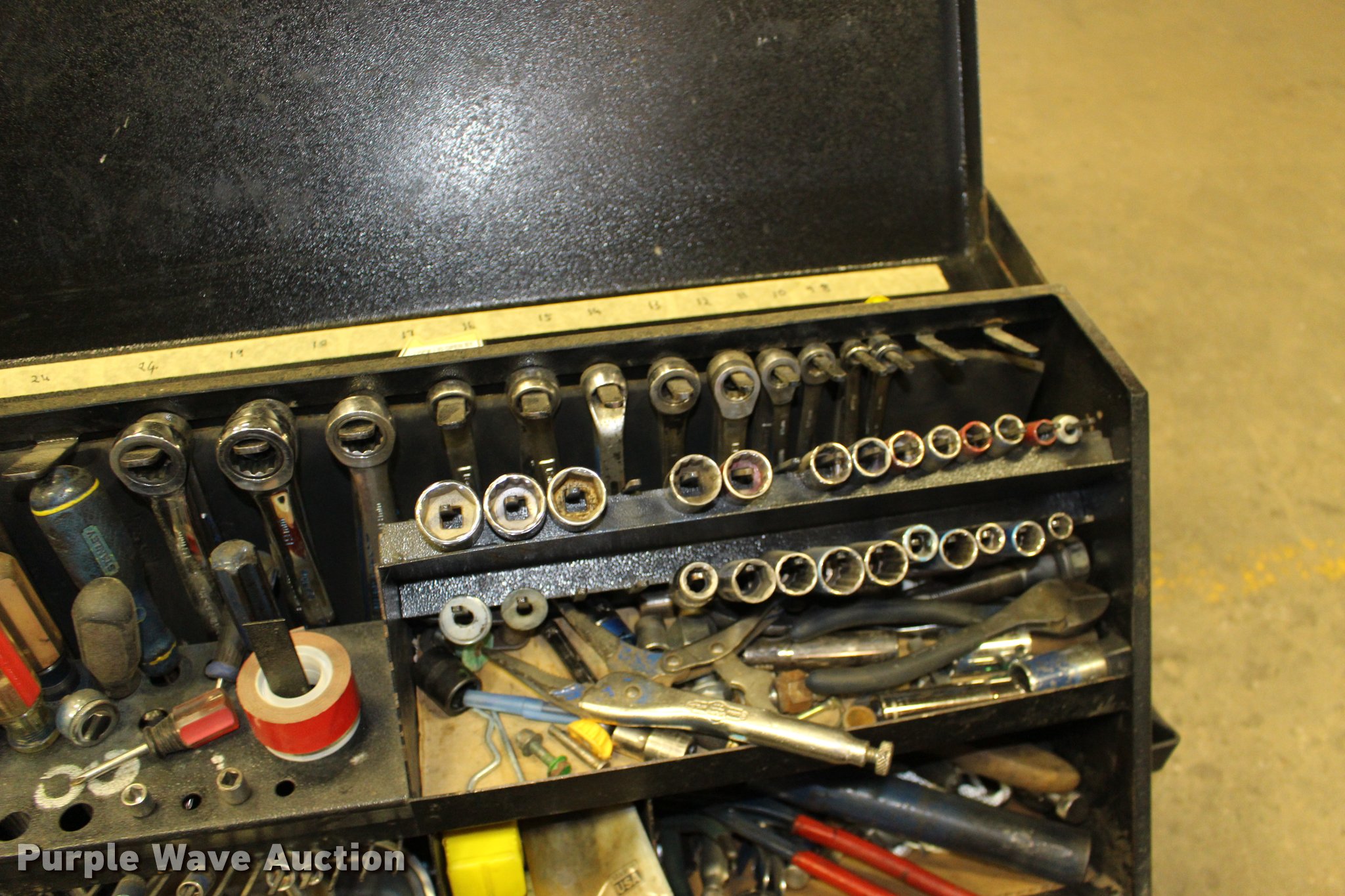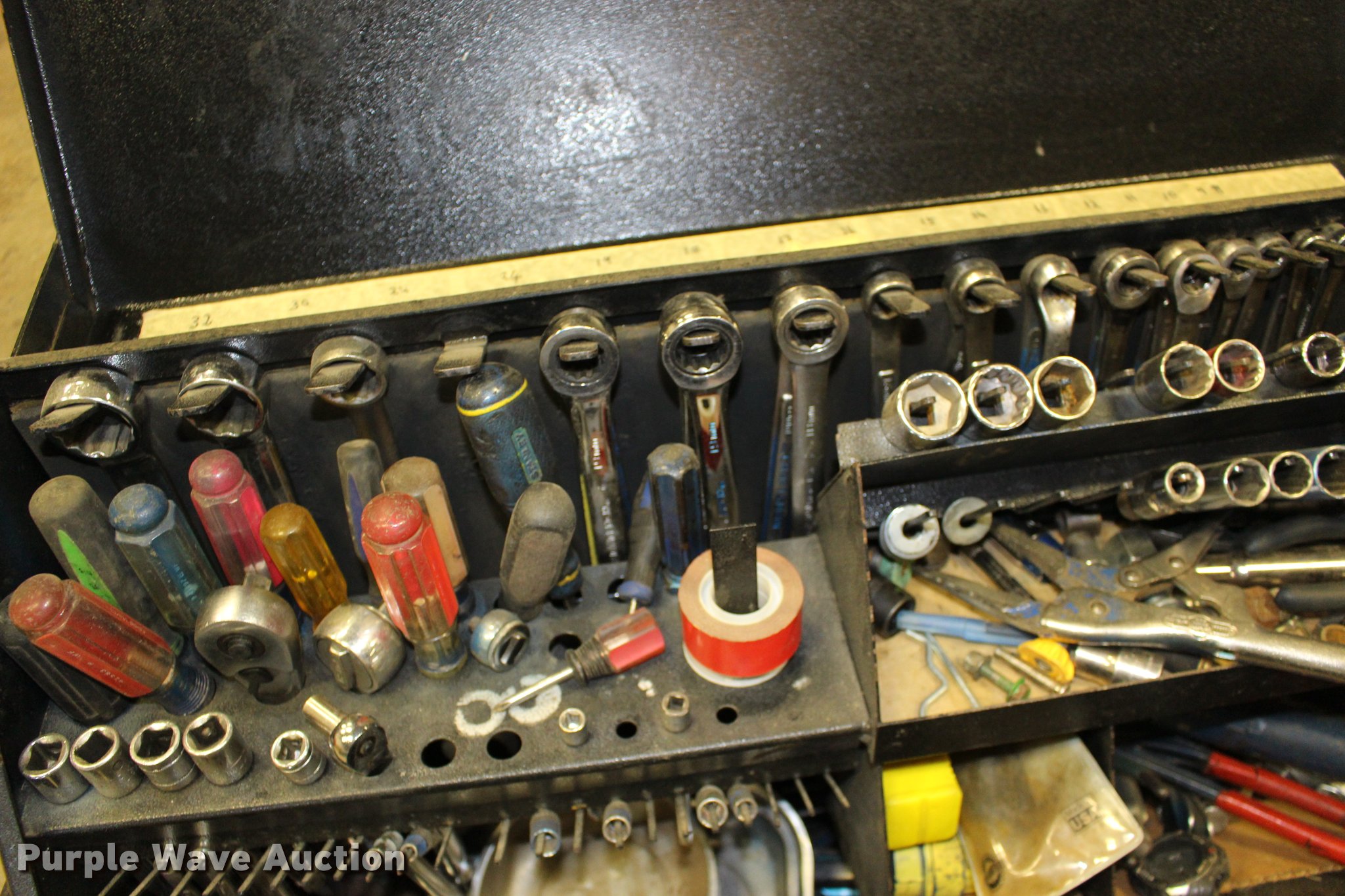 Purple Wave is selling a used Tools in Kansas. This item is a CPL tool management box with the following: 31" x 15" x 18", Sockets, Ratchets, Pliers, Screw drivers, Wrenches and more, No keys
