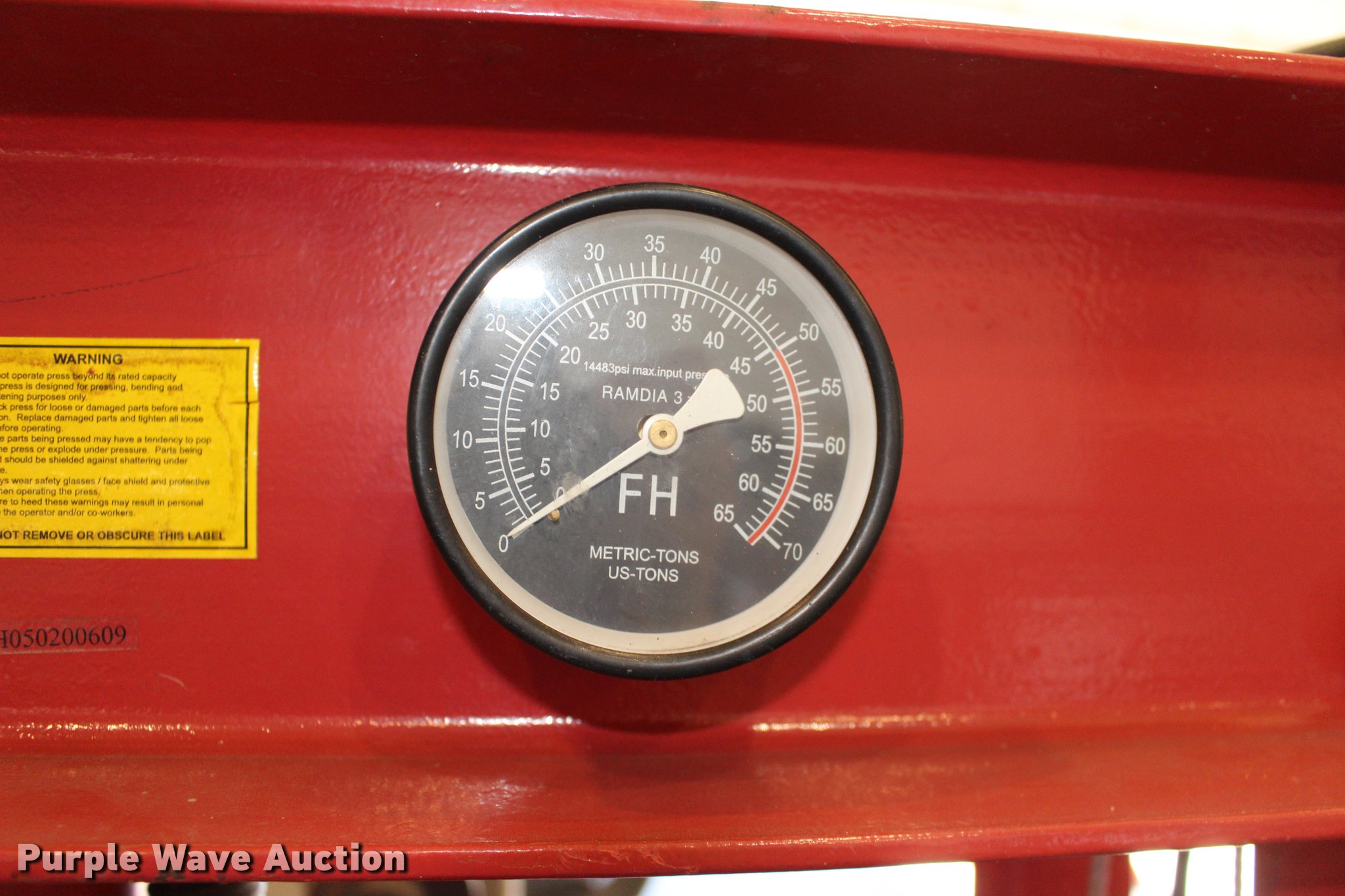Purple Wave is selling a used Tools in Kansas. This item is a American Forge & Foundry shop press with the following: Model 837, 39" x 24" x 65"H, 70 to 150 psi, 50 ton capacity