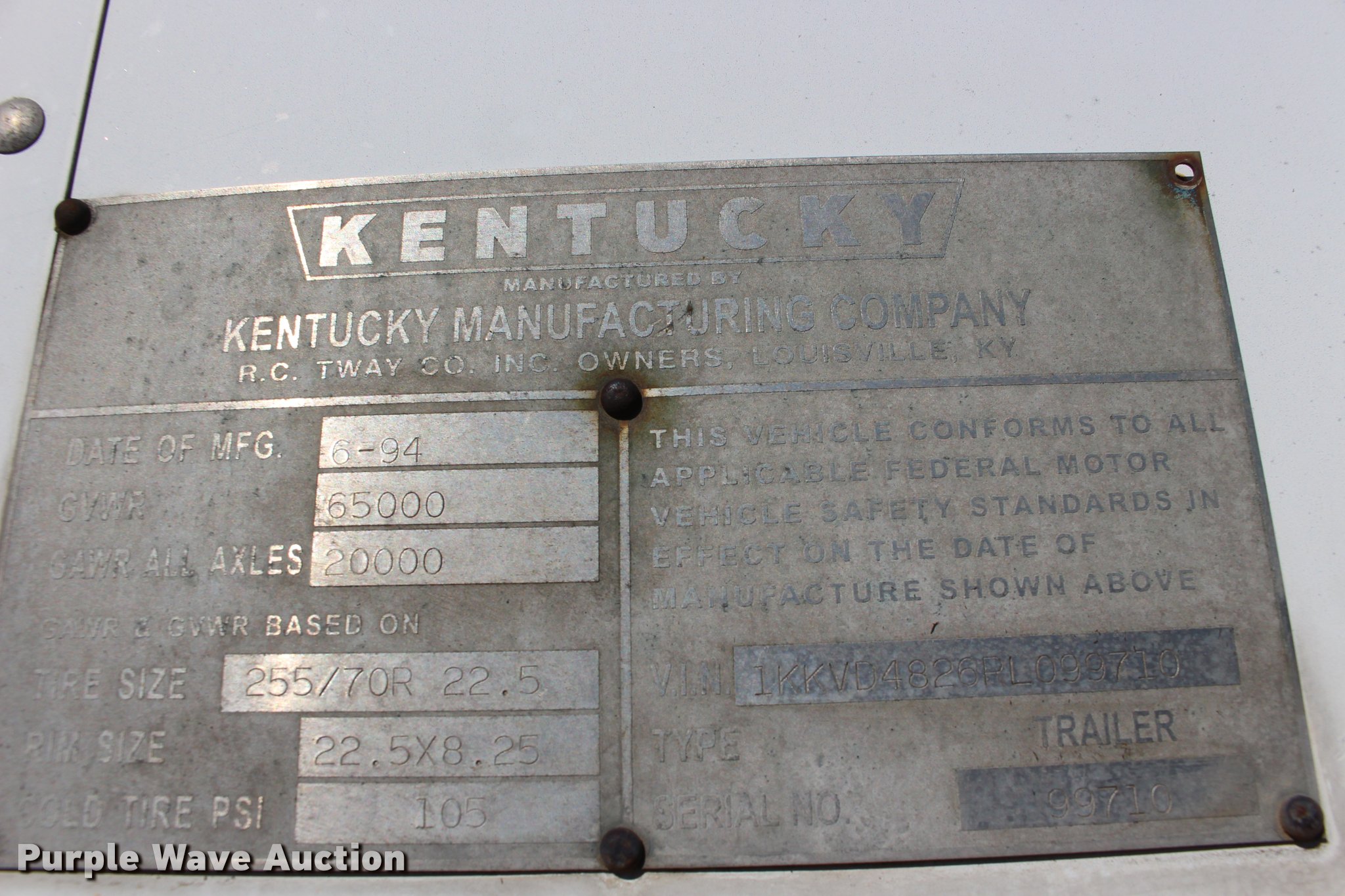 Purple Wave is selling a used Dry Van Trailer in Kansas. This item is a 1994 Kentucky dry van trailer with the following: 48'L x 102"W, Side entry door, Air suspension, 255/70R22.5 tires