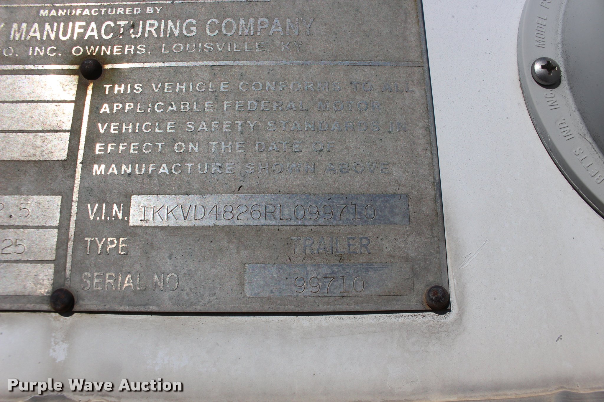1994 Kentucky dry van trailer. 48'L x 102"W, Side entry door, Air suspension, 255/70R22.5 tires. Kansas title. 1KKVD4826RL099710. MachineryLink Inc.. Pratt, KS 67124