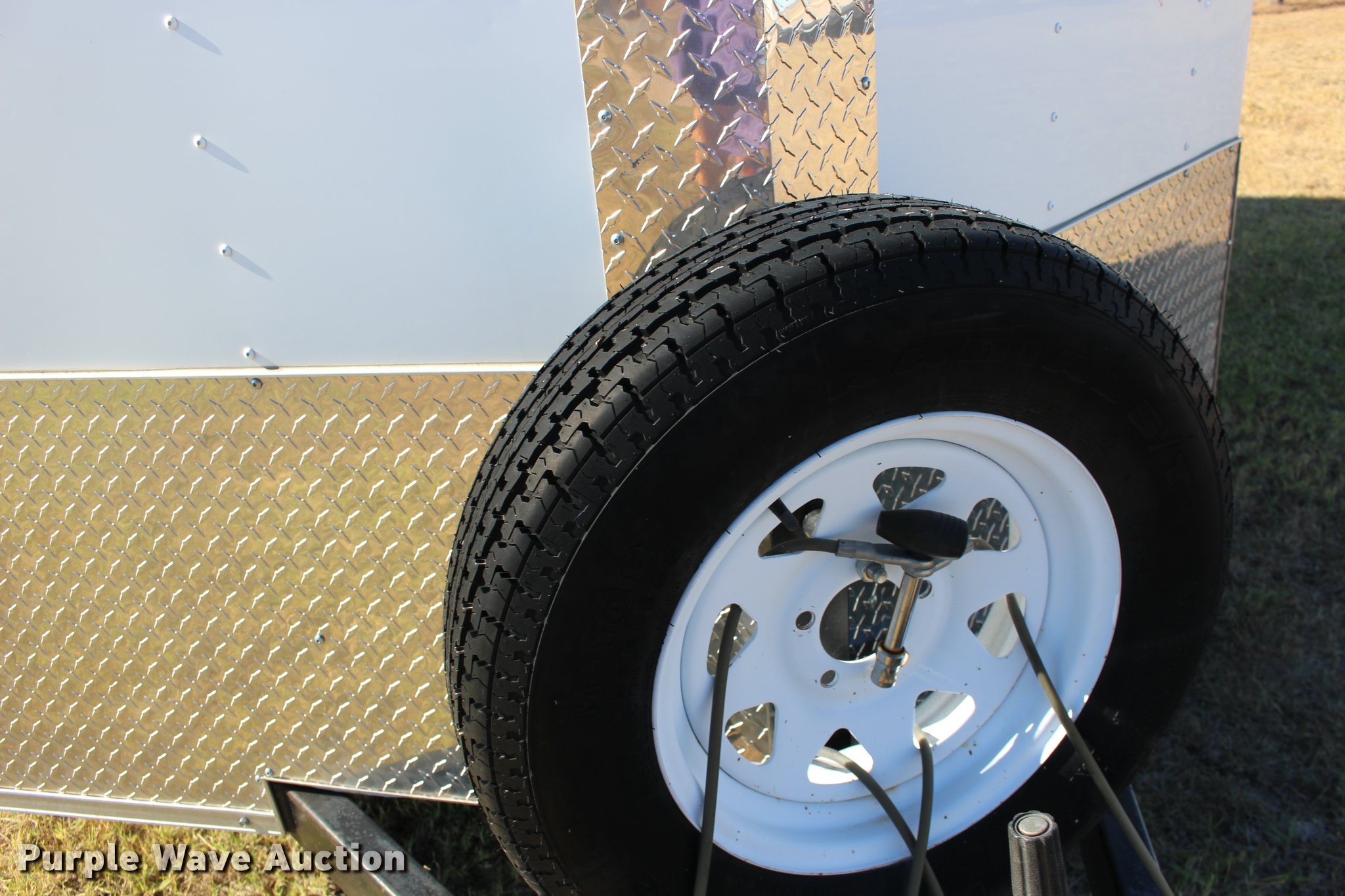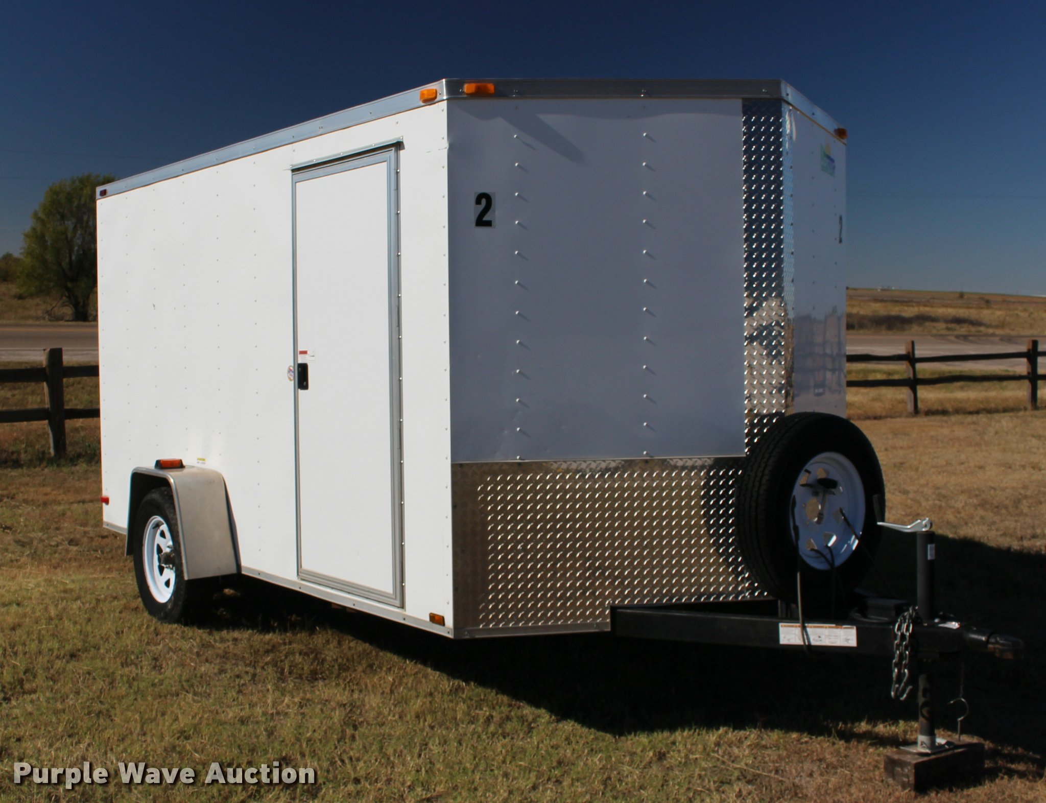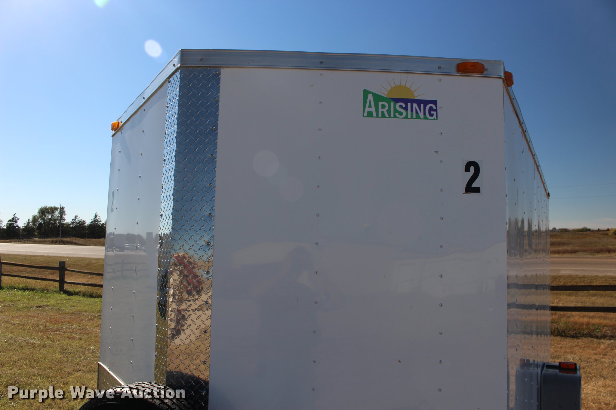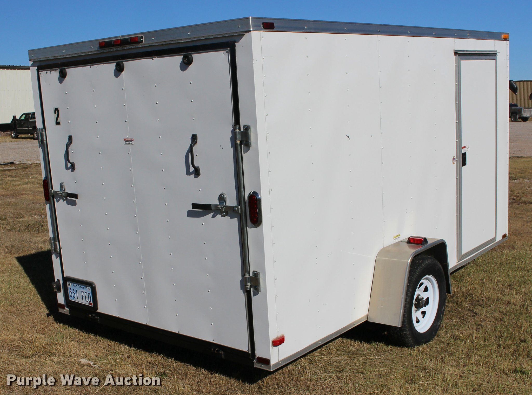 Purple Wave is selling a used Enclosed Cargo Trailer in Kansas. This item is a 2013 Arising 712VSRW enclosed cargo trailer with the following: 14.5'L x 7'W x 78"H, Side entry door, Rear ramp door, V-nose, 2" ball hitch, 205/75R15 tires
