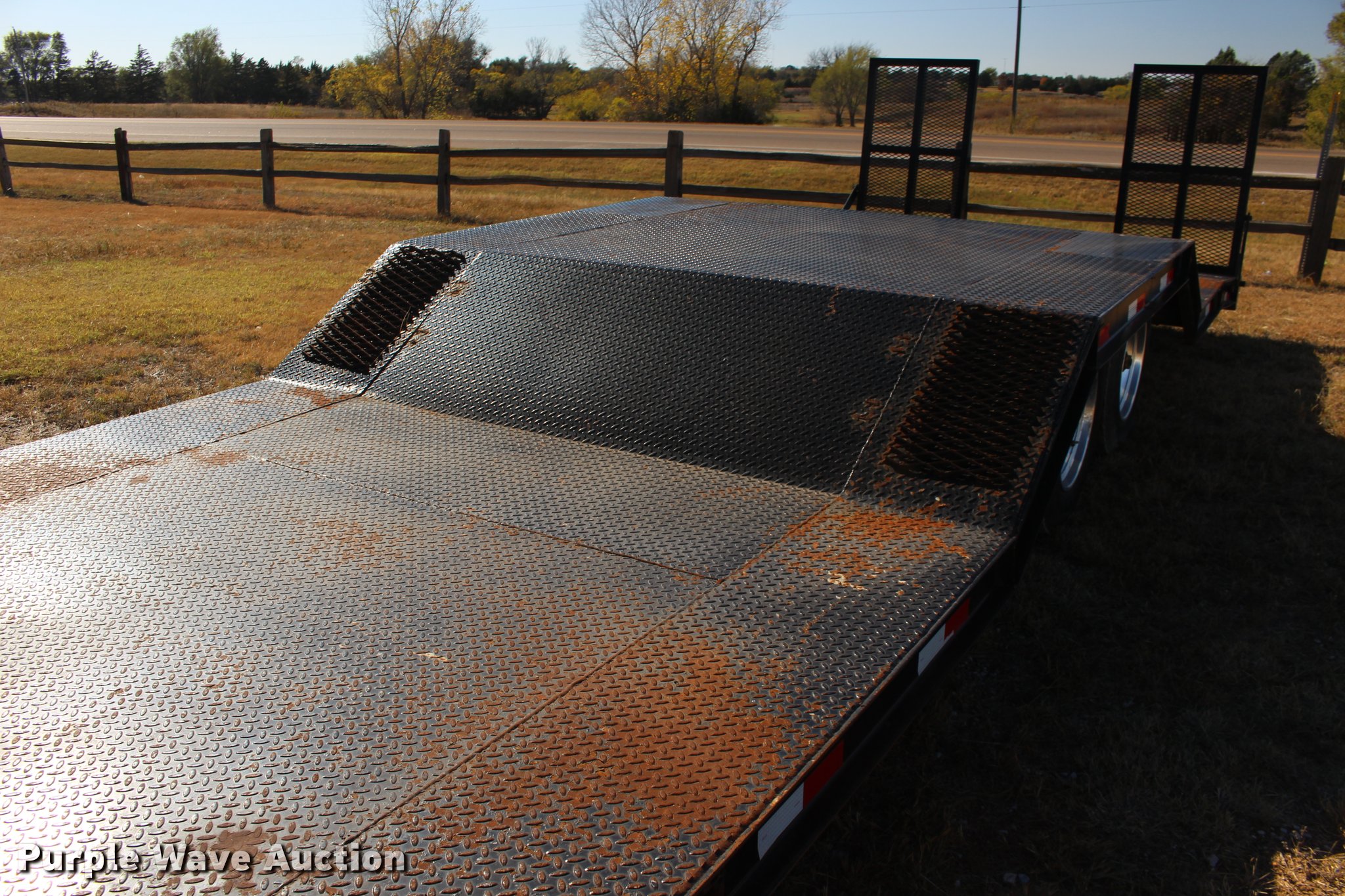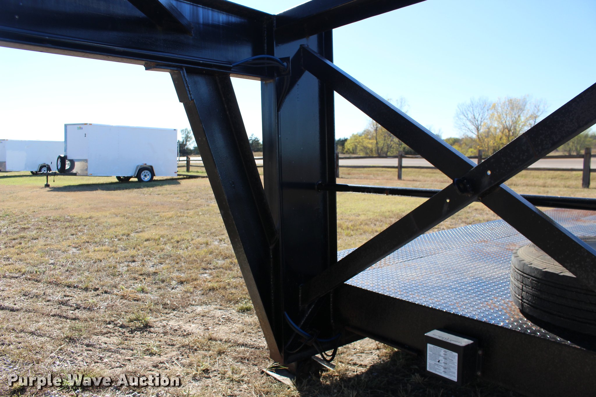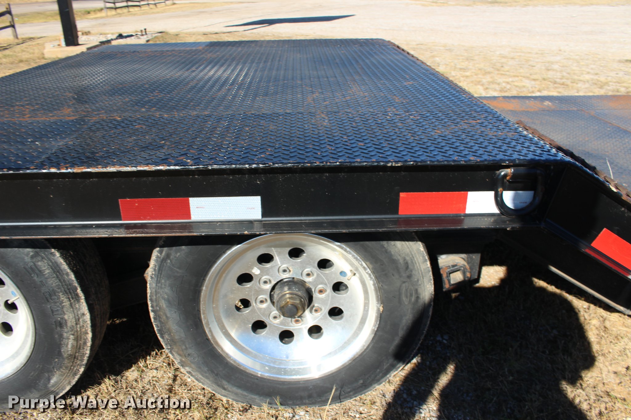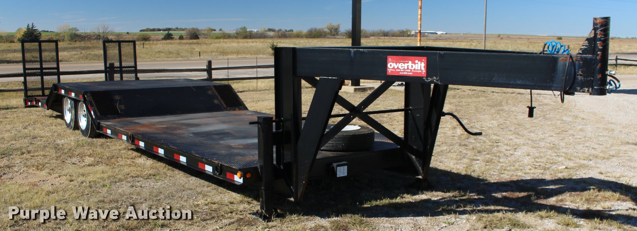 Purple Wave is selling a used Equip. Trailer in Kansas. This item is a 2008 Overbilt step deck trailer with the following: 28'L x 102"W, 14'L deck in front of axle, 6'L deck over axles, 6'L deck behind axles, Steel deck, Gooseneck hitch, Ball hitch included, Dual leg landing gear, Air suspension, Electric brakes, Tandem axle, 215/75R17.5 tires, GVWR 25,860 lbs