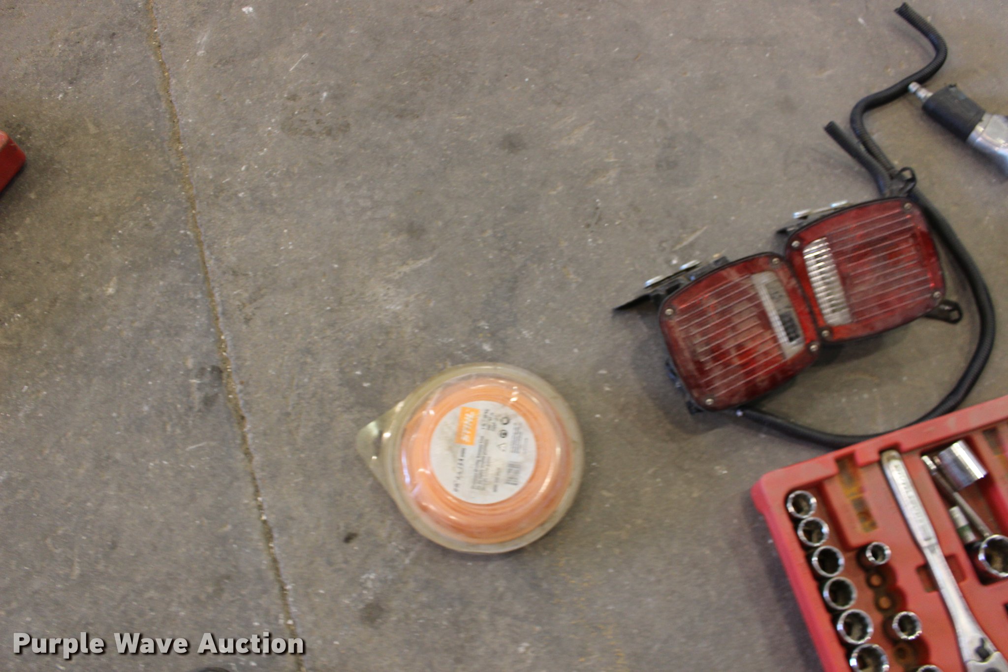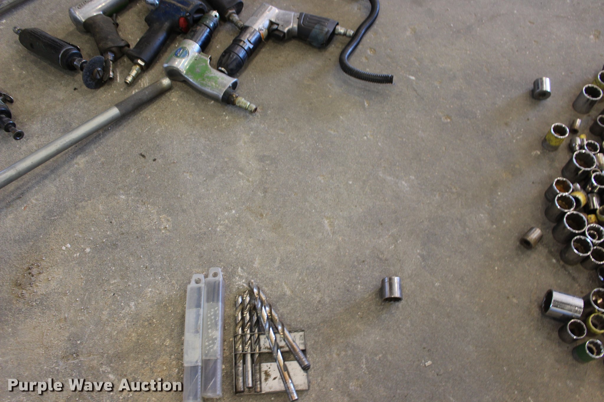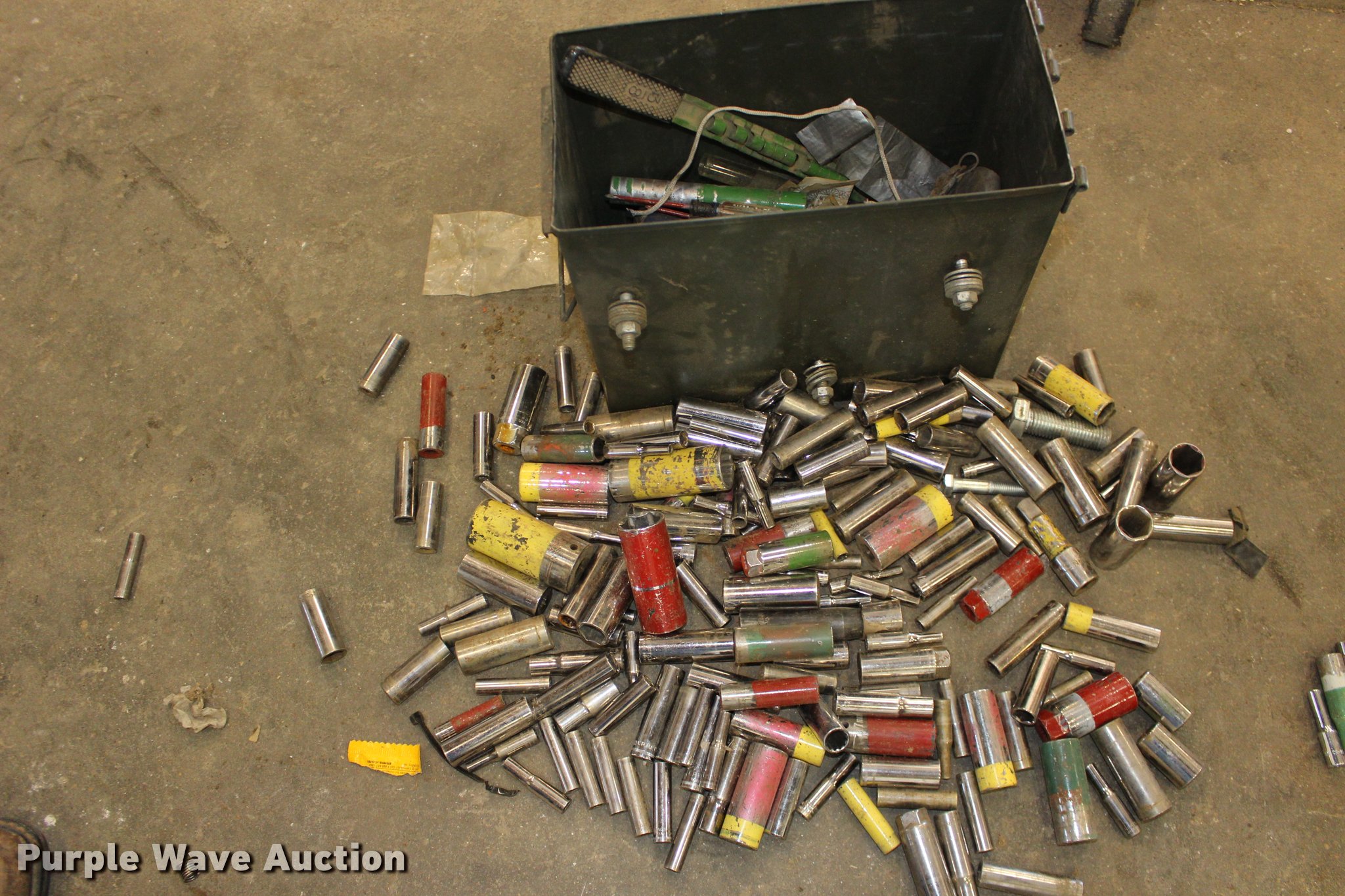 Purple Wave is selling a used Tools in Kansas. This item is a Shop equipment with the following: O-ring kits, Cordless drills, Cordless impact, Lock jaw pliers, Chain hoists, Sockets, Branding iron, Ratchets, Wrenches, Trailer lights, Air tools, Trailer hitches, Chain breaker, Jumper cables, Allen wrenches, Screw drives and more