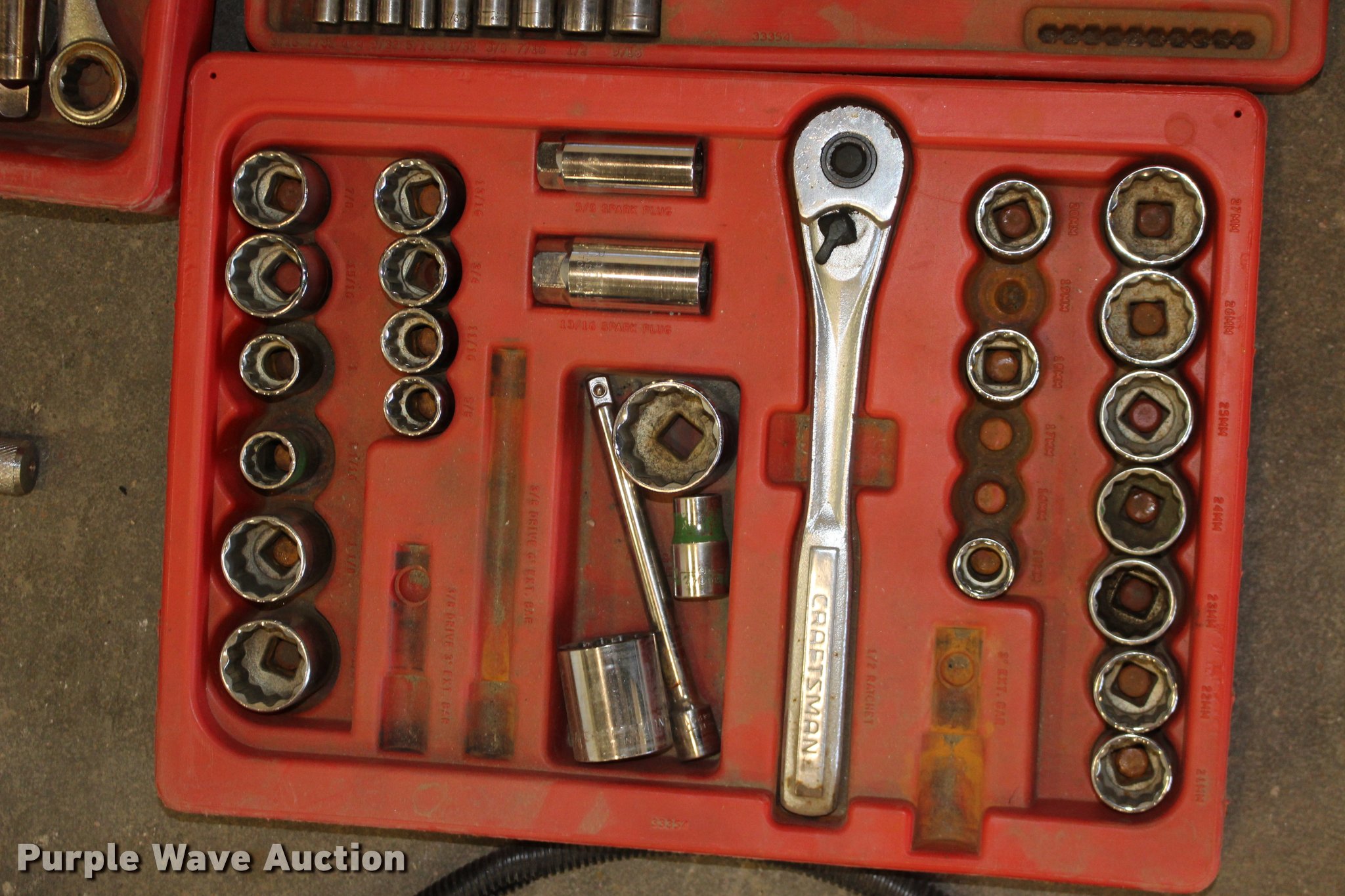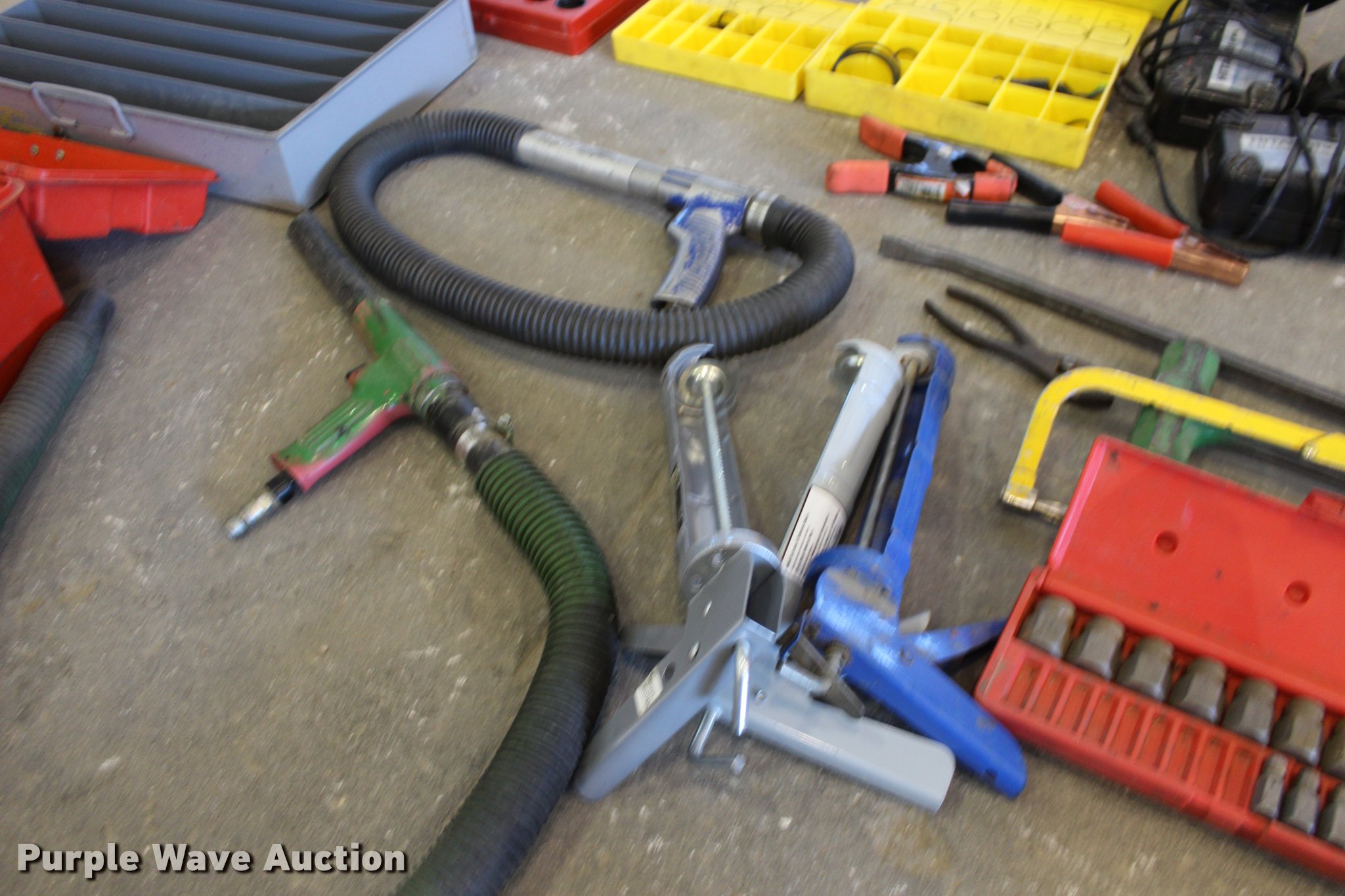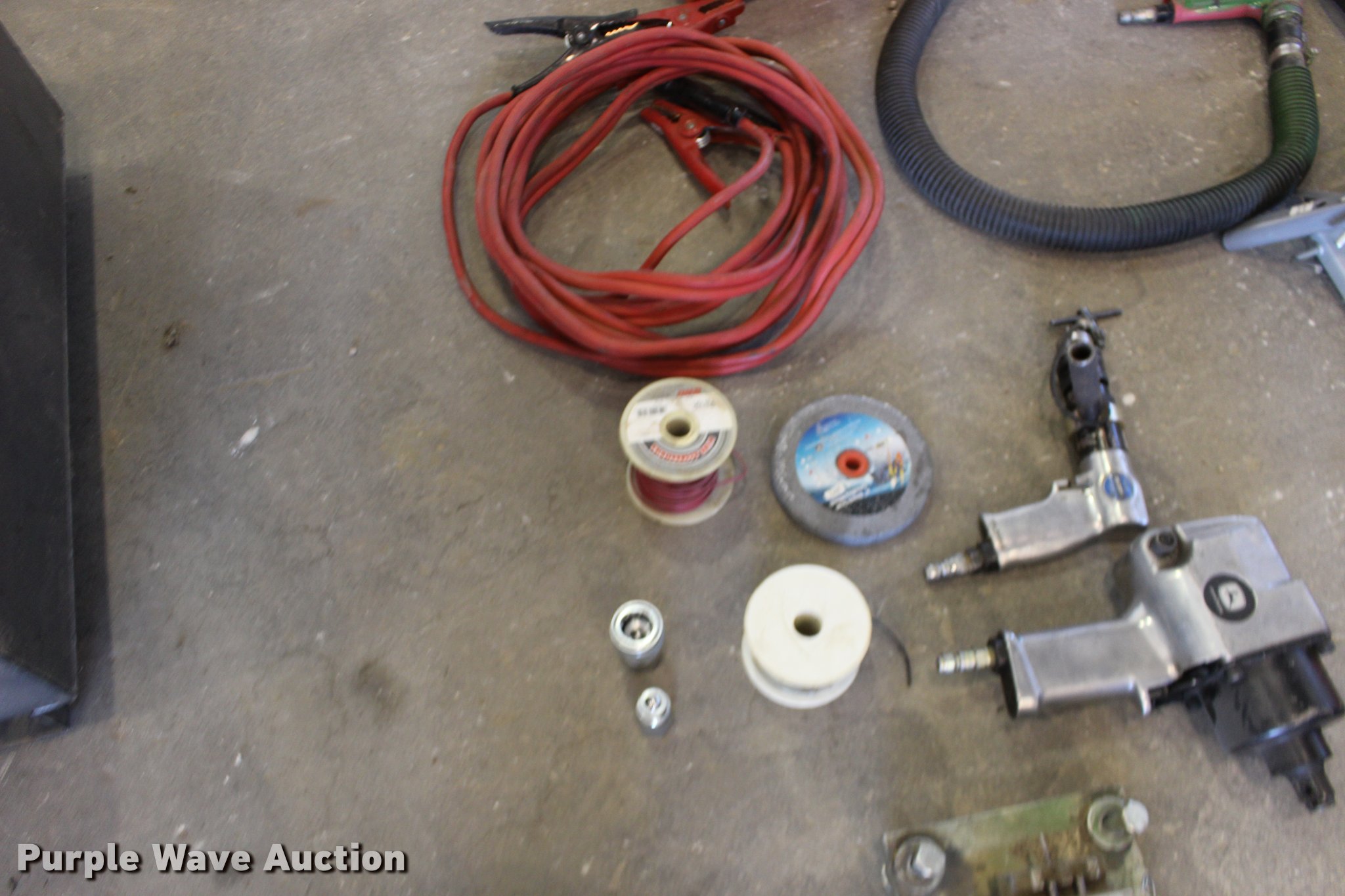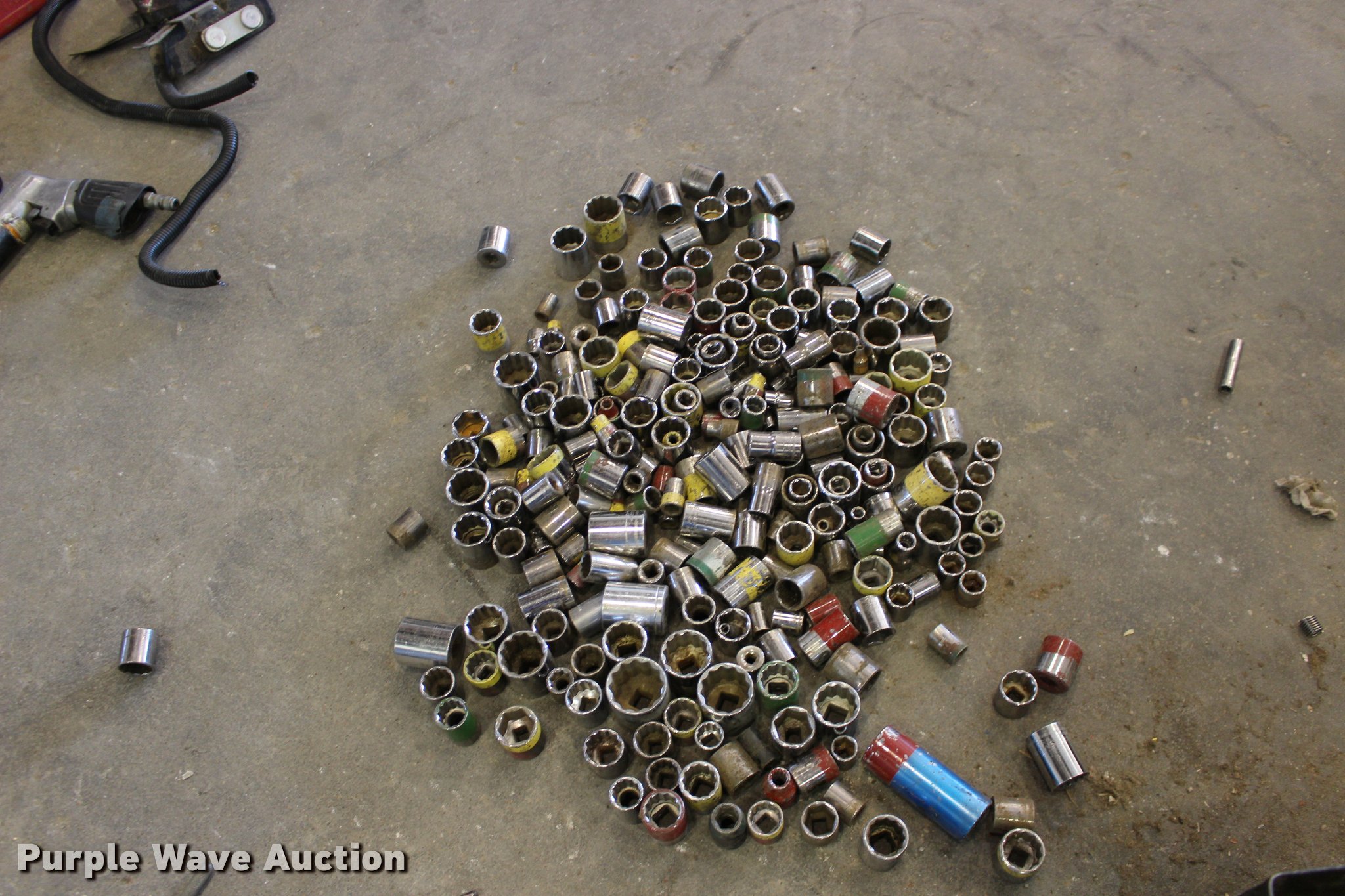 Purple Wave is selling a used Tools in Kansas. This item is a Shop equipment with the following: O-ring kits, Cordless drills, Cordless impact, Lock jaw pliers, Chain hoists, Sockets, Branding iron, Ratchets, Wrenches, Trailer lights, Air tools, Trailer hitches, Chain breaker, Jumper cables, Allen wrenches, Screw drives and more