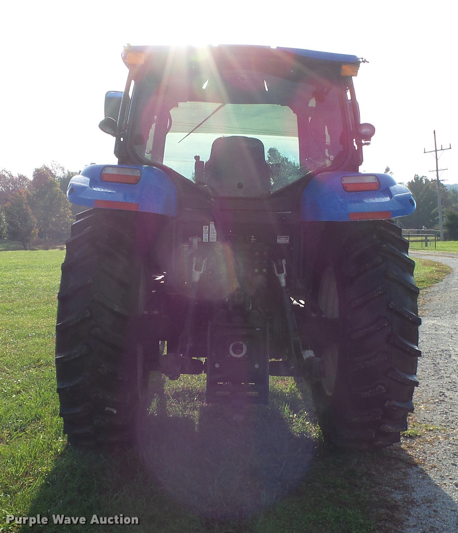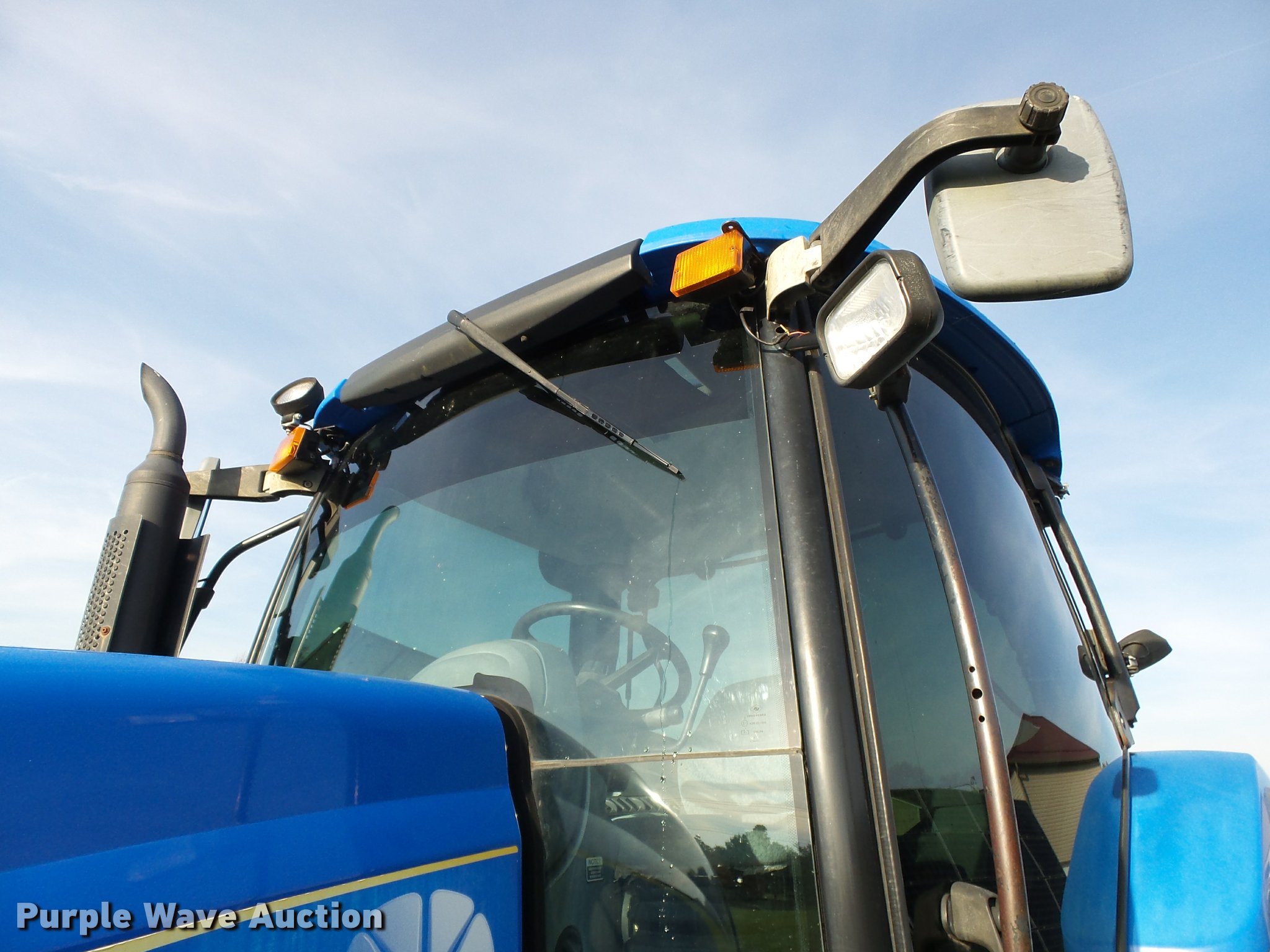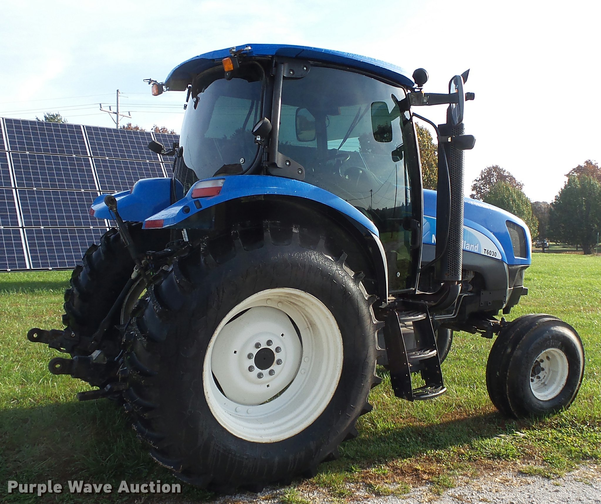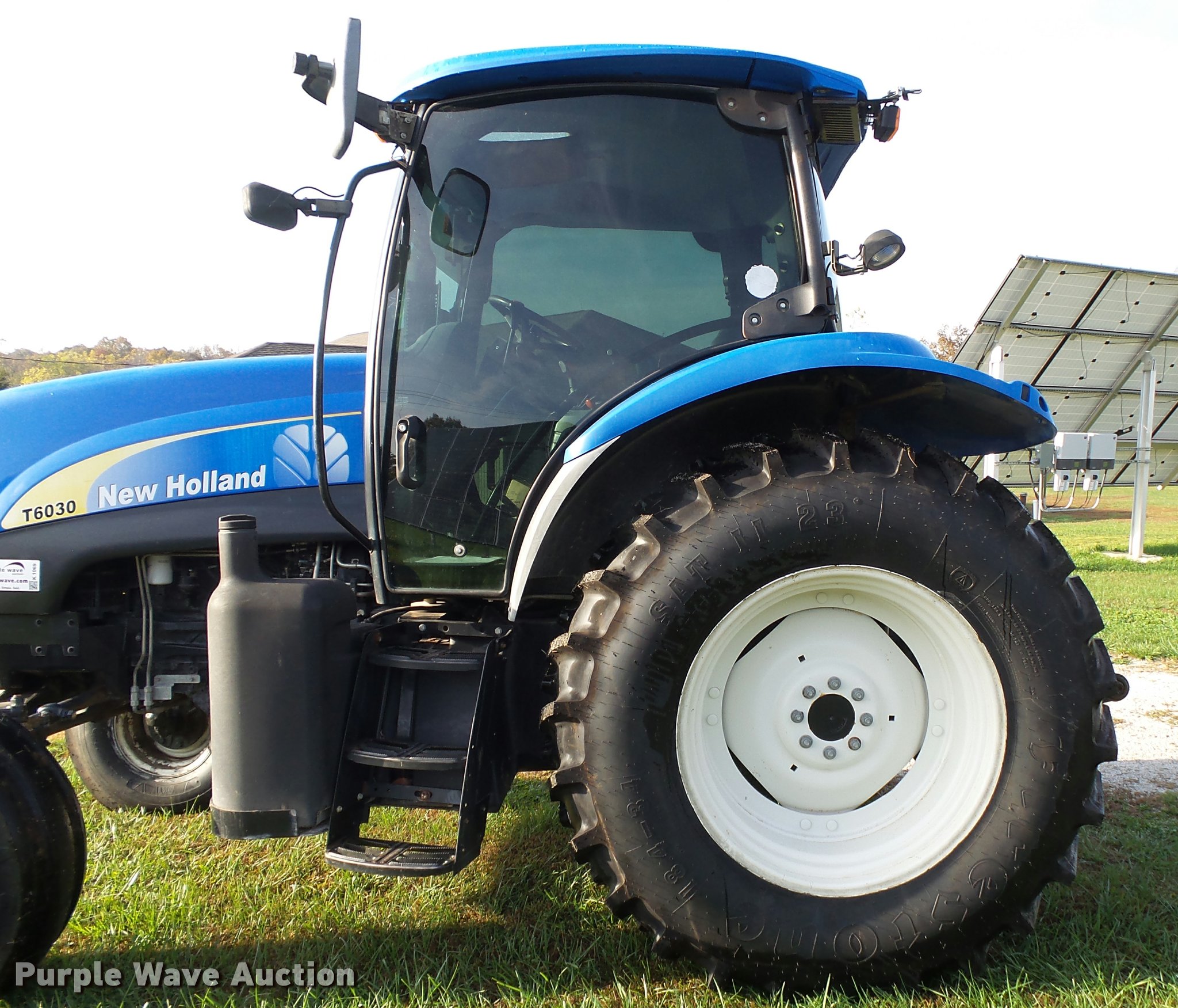 Purple Wave is selling a used Tractor in Missouri. This item is a 2008 New Holland T6030 tractor with the following: 660 hours on meter, Hours may vary, still in use, New Holland 667TA/MEA 411 C.I.D. turbo diesel engine, 115 HP, Synchro transmission, 12F-12R gears, Differential lock, AC and heat, Tilt steering wheel, AM/FM, Suspension seat, Shade, Work lights, Glow plugs, Three point, Top link, 540/1000 PTO, Rear hydraulic remote sets, 11.0-16 front tires, 18.4-34 rear tires, Owner's manual, Serial Z7BD04811