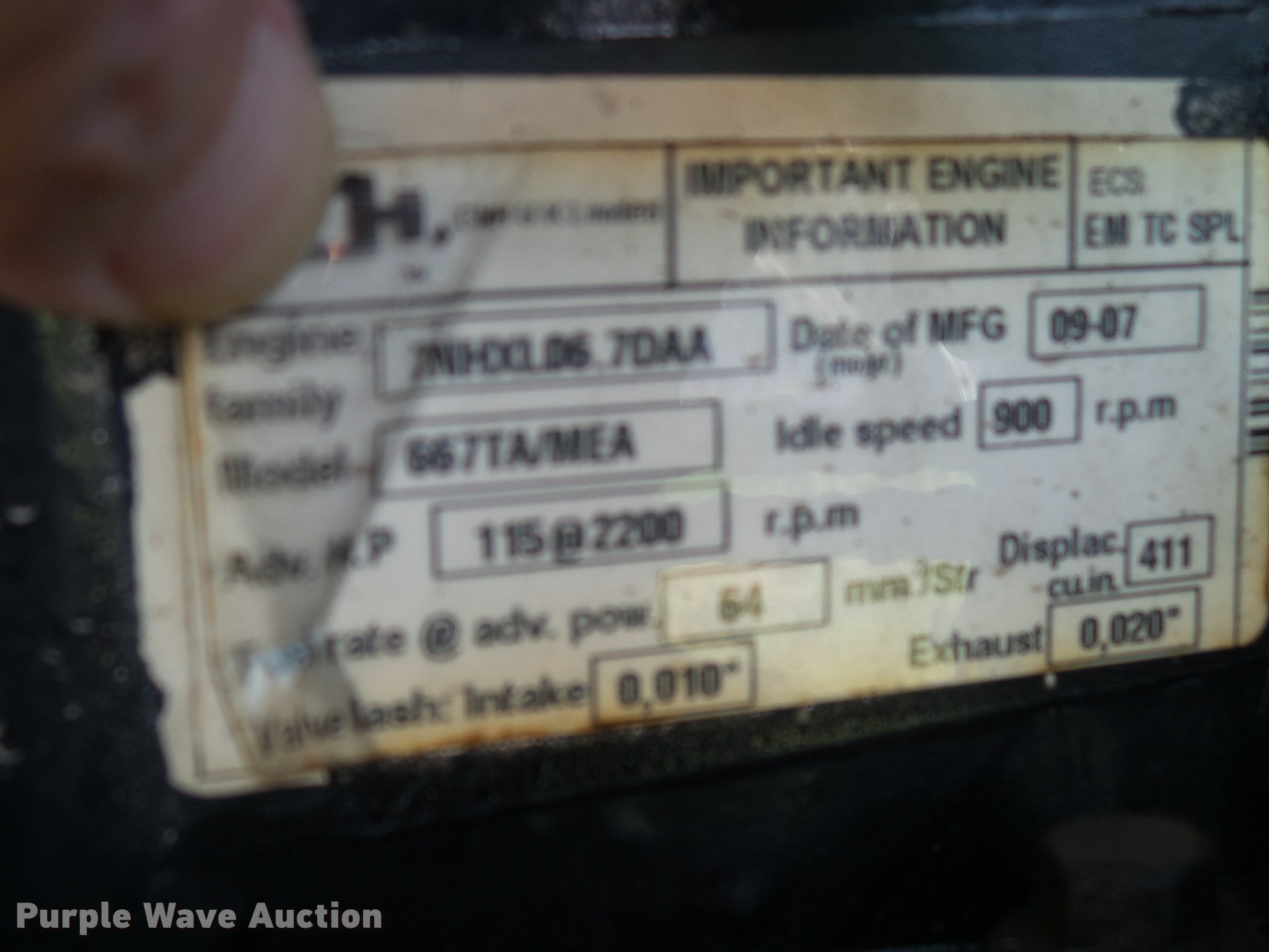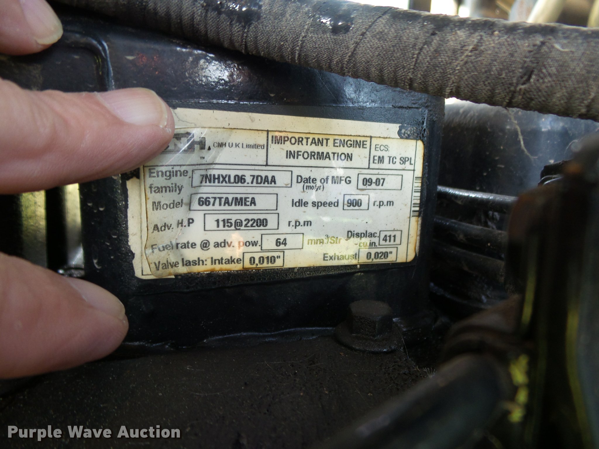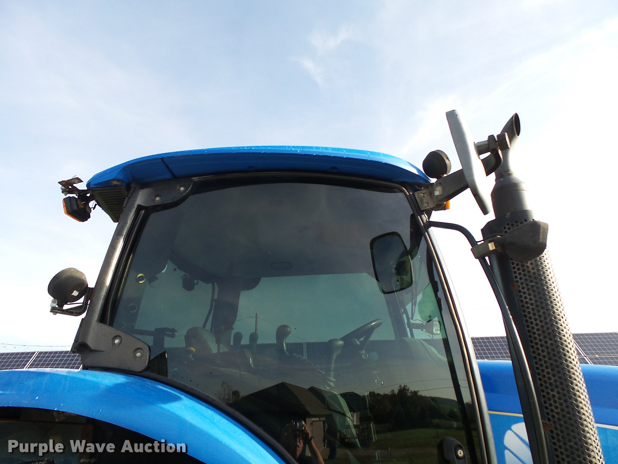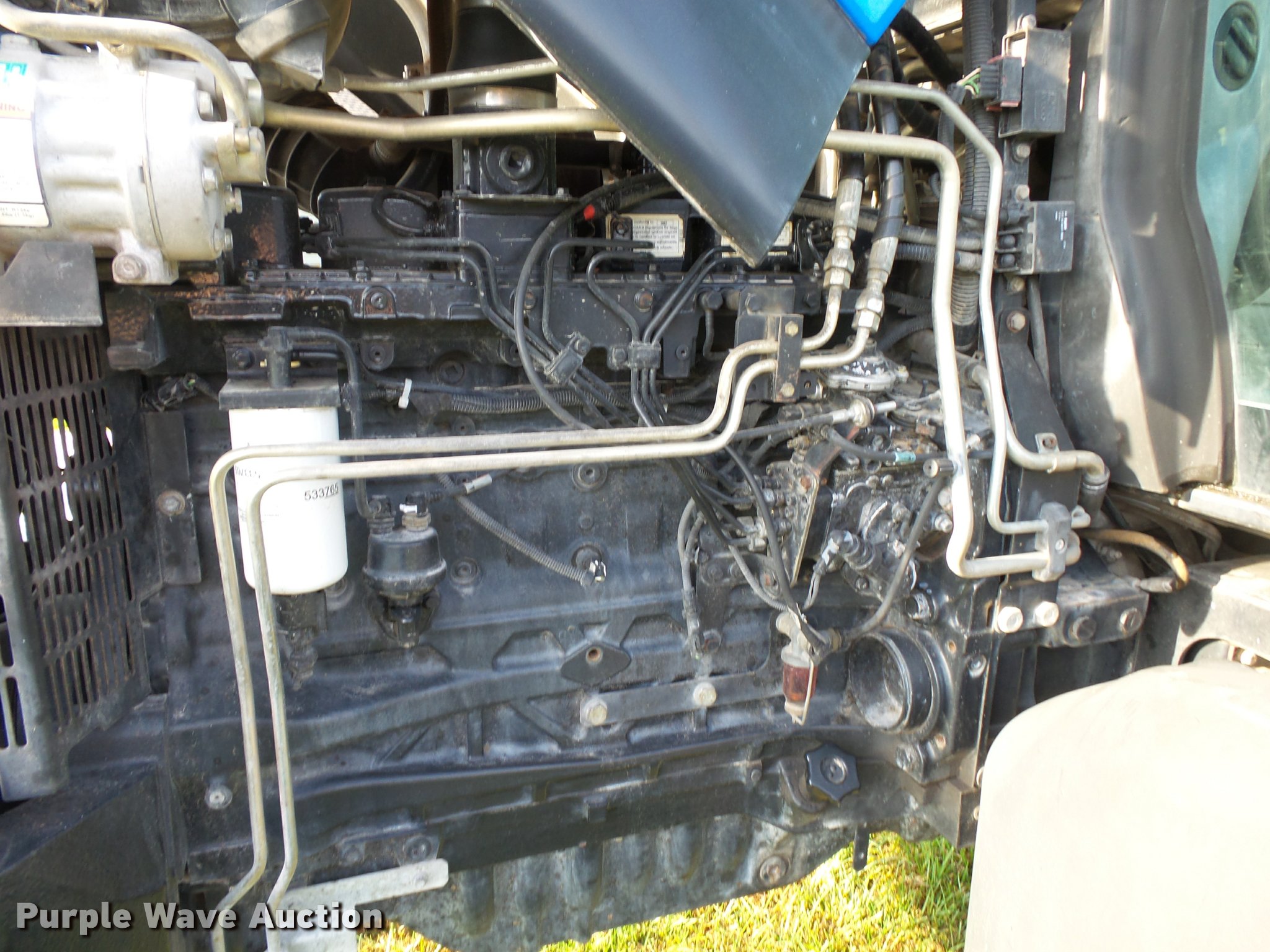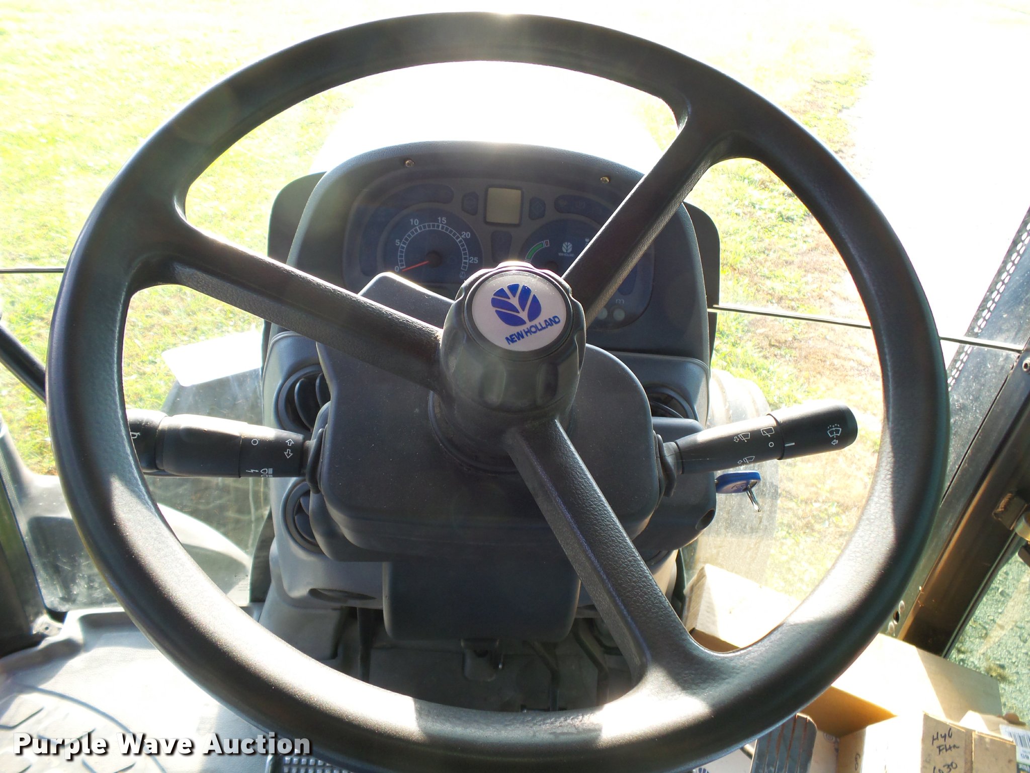 Purple Wave is selling a used Tractor in Missouri. This item is a 2008 New Holland T6030 tractor with the following: 660 hours on meter, Hours may vary, still in use, New Holland 667TA/MEA 411 C.I.D. turbo diesel engine, 115 HP, Synchro transmission, 12F-12R gears, Differential lock, AC and heat, Tilt steering wheel, AM/FM, Suspension seat, Shade, Work lights, Glow plugs, Three point, Top link, 540/1000 PTO, Rear hydraulic remote sets, 11.0-16 front tires, 18.4-34 rear tires, Owner's manual, Serial Z7BD04811