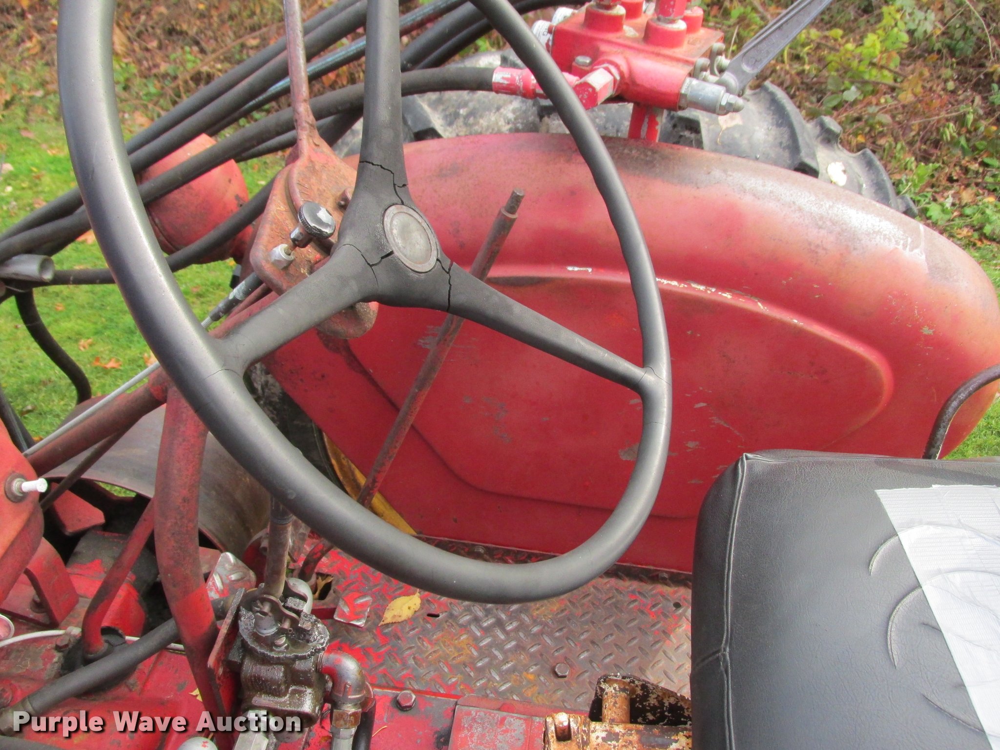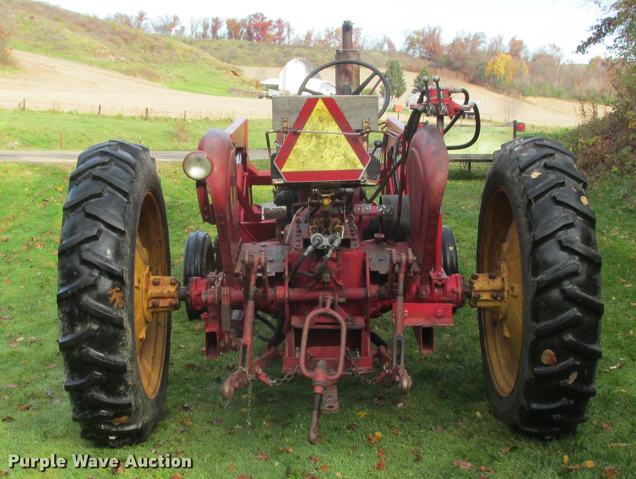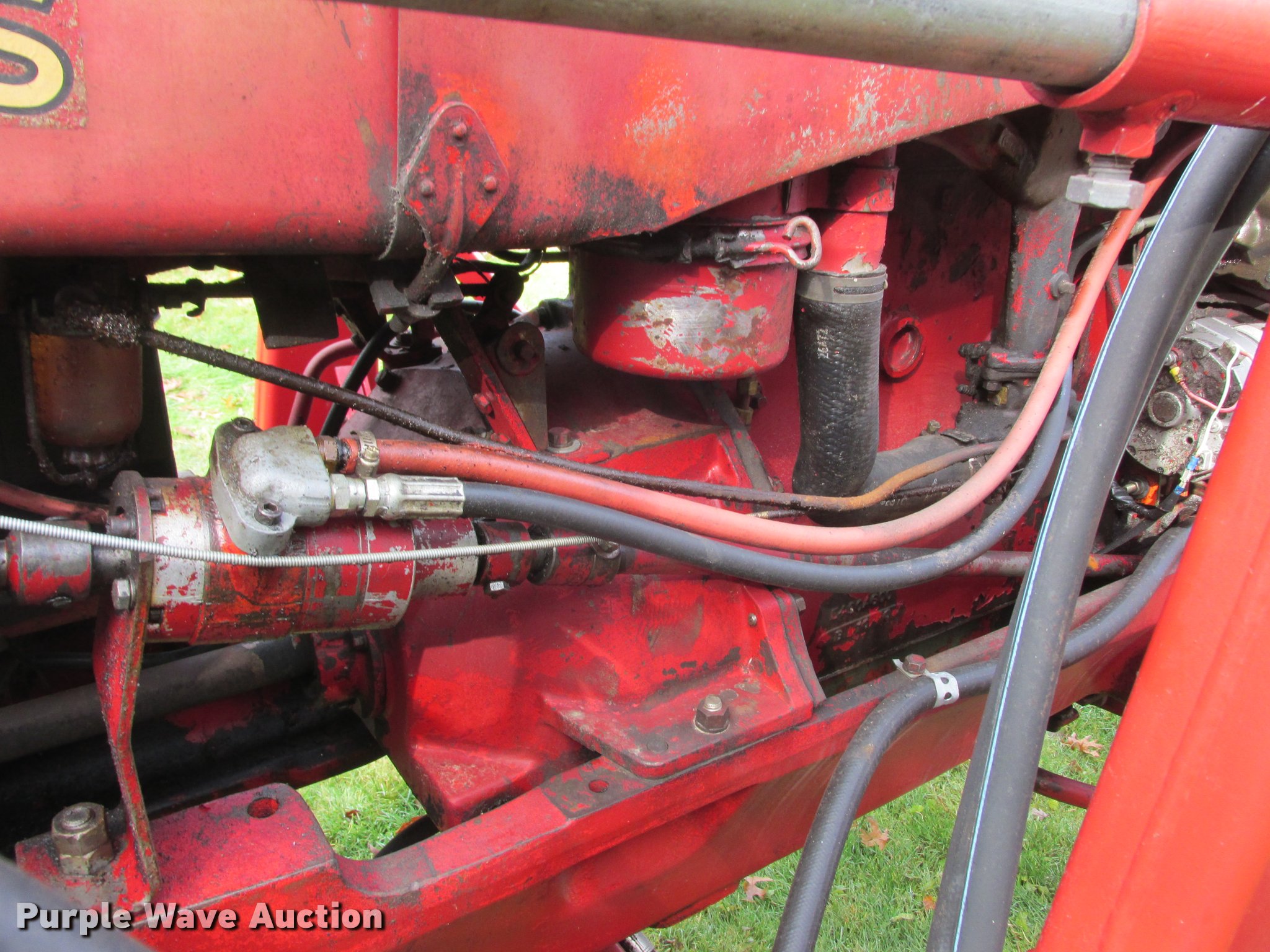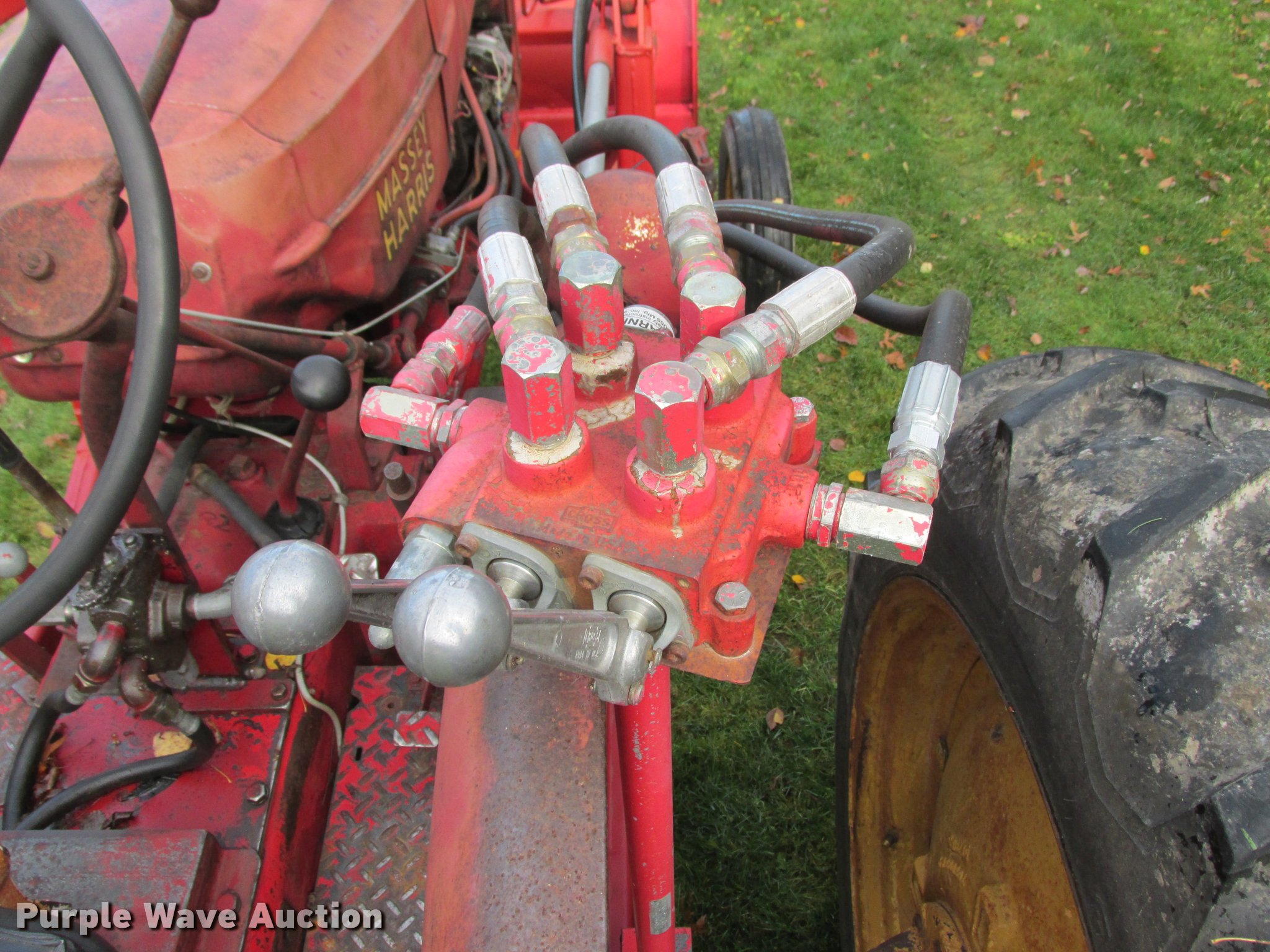 Purple Wave is selling a used Tractor in Wisconsin. This item is a 1953 Massey-Harris 33 tractor with the following: Four cylinder gas engine, 33 HP, Manual transmission, 5F-1R gears, Differential lock, Suspension seat, Power steering, Loader, 65"W bucket, Weld-on cutting edge, Two-lever controls, Three point, 540 PTO, Draw bar, Rear hydraulic remote sets, 5.50-15 front tires, Adjustable front tires, 12.4-38 rear tires, Tire chains, Manual