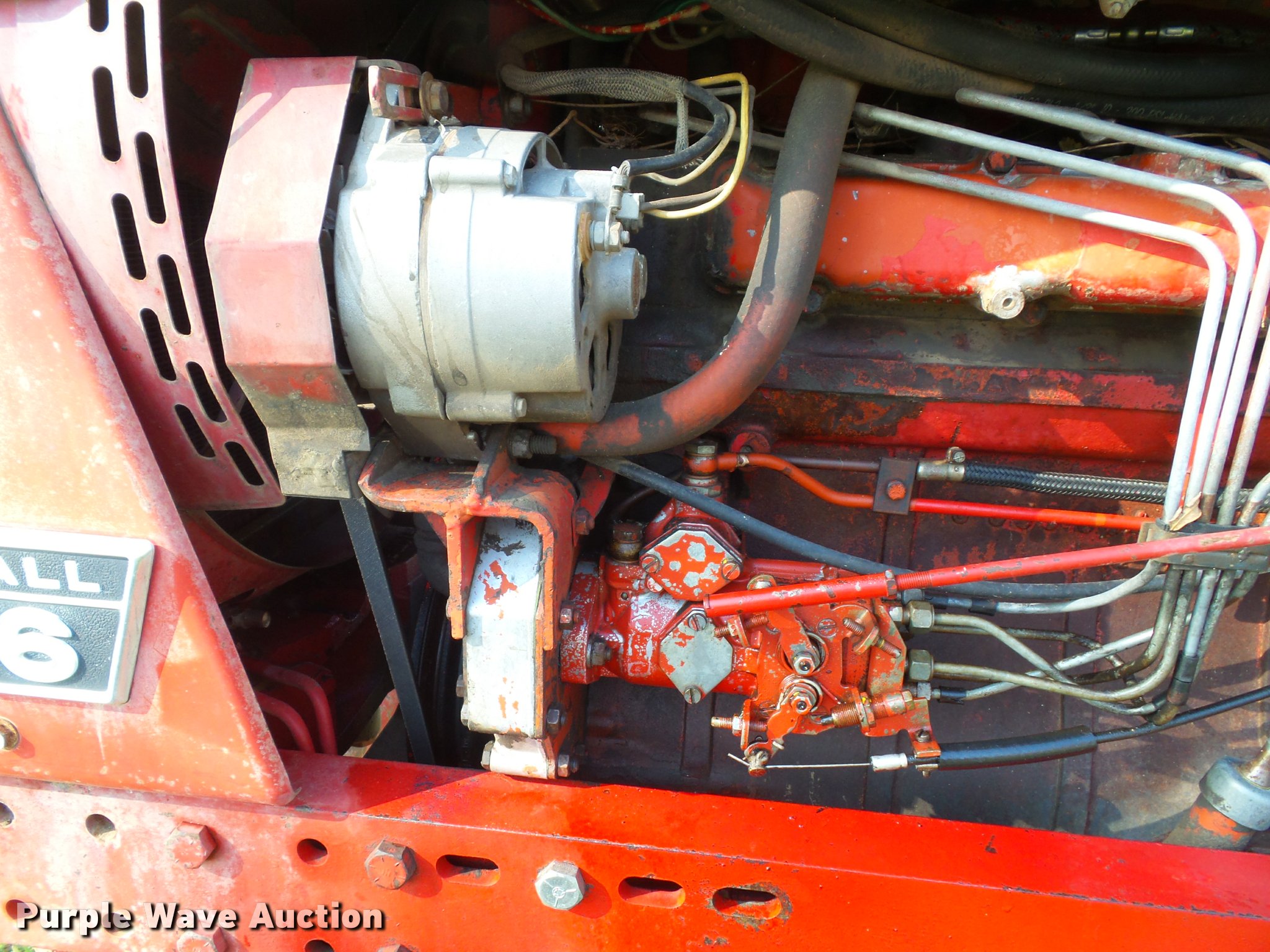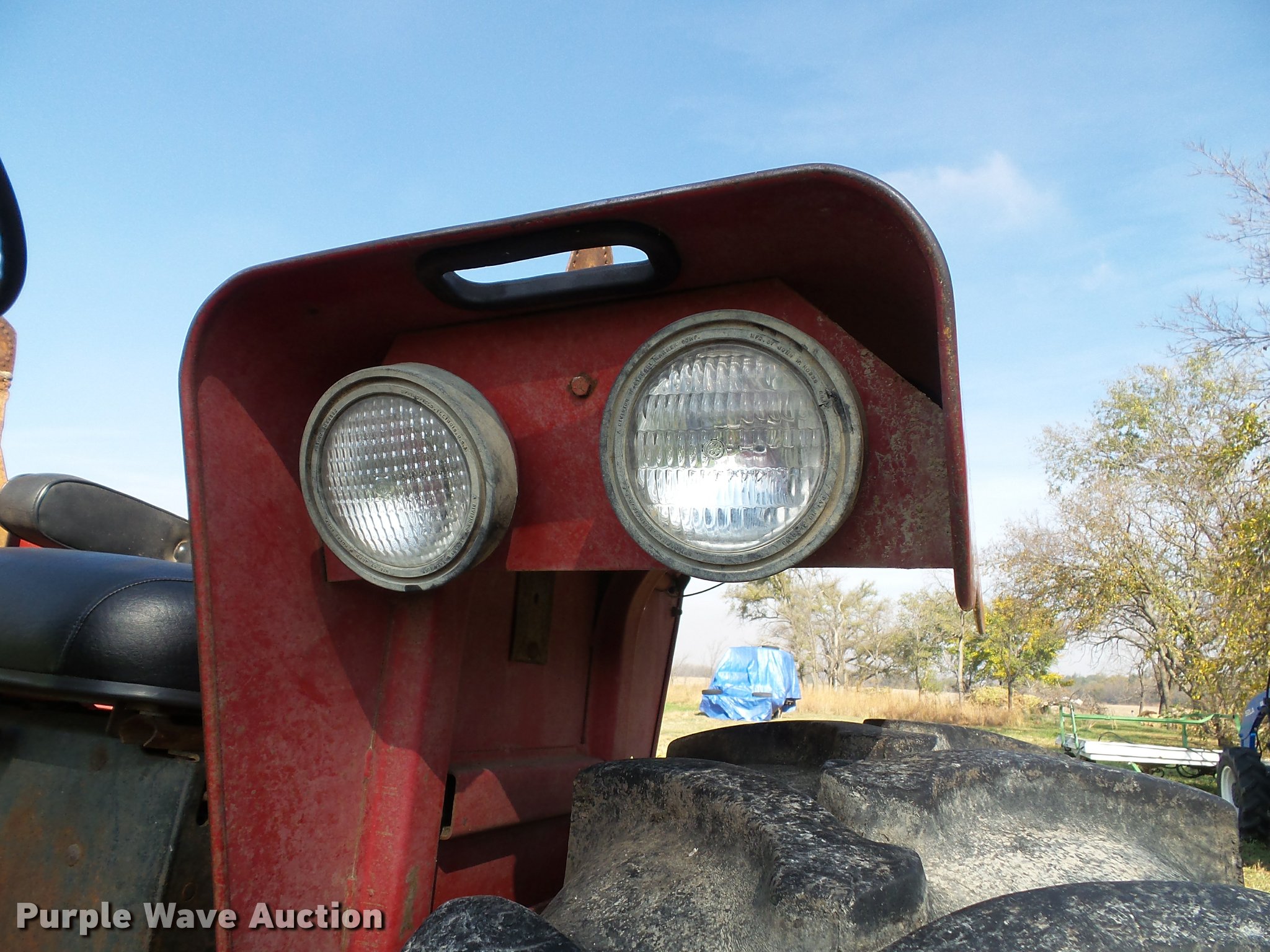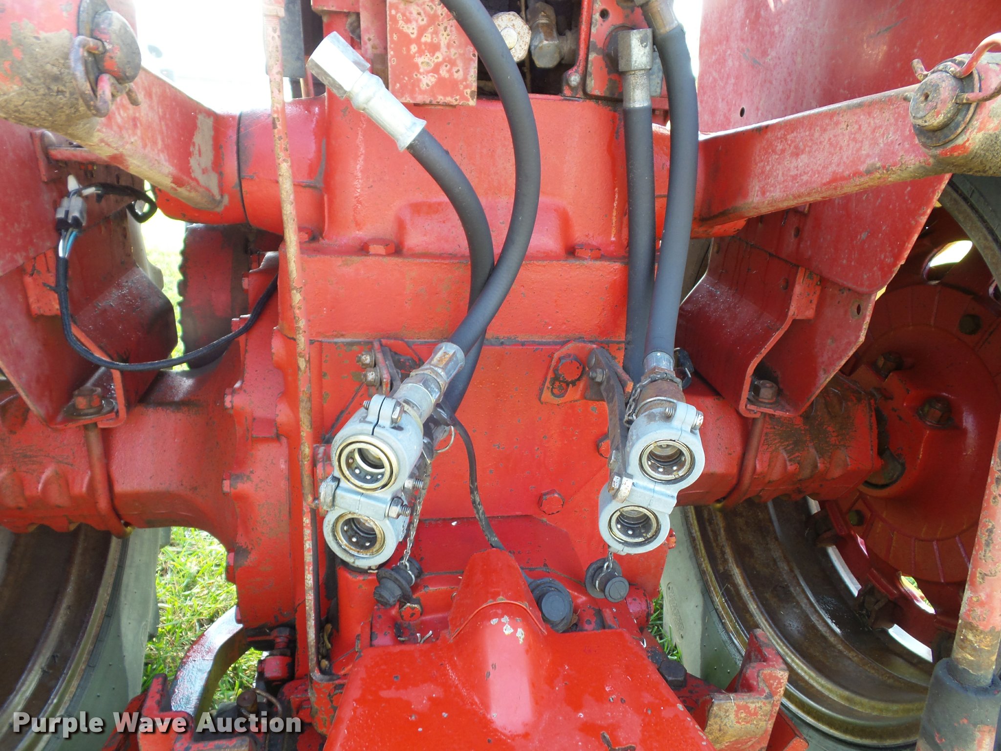 Purple Wave is selling a used Tractor in Kansas. This item is a 1969 International 756 tractor with the following: 308 hours on meter, Hour meter has been replaced, International 5.1L six cylinder turbo diesel engine, 85 HP, Torque amplifier hydrostatic transmission, 8F-2R gears, Front and rear work lights, Two point, Quick attach, 540/1000 PTO, Draw bar, (2) rear hydraulic remote sets, Rear wheel weights, 105" wheelbase, 10.00-16 front tires, 18.4R34 rear tires, Serial 16618S-Y
