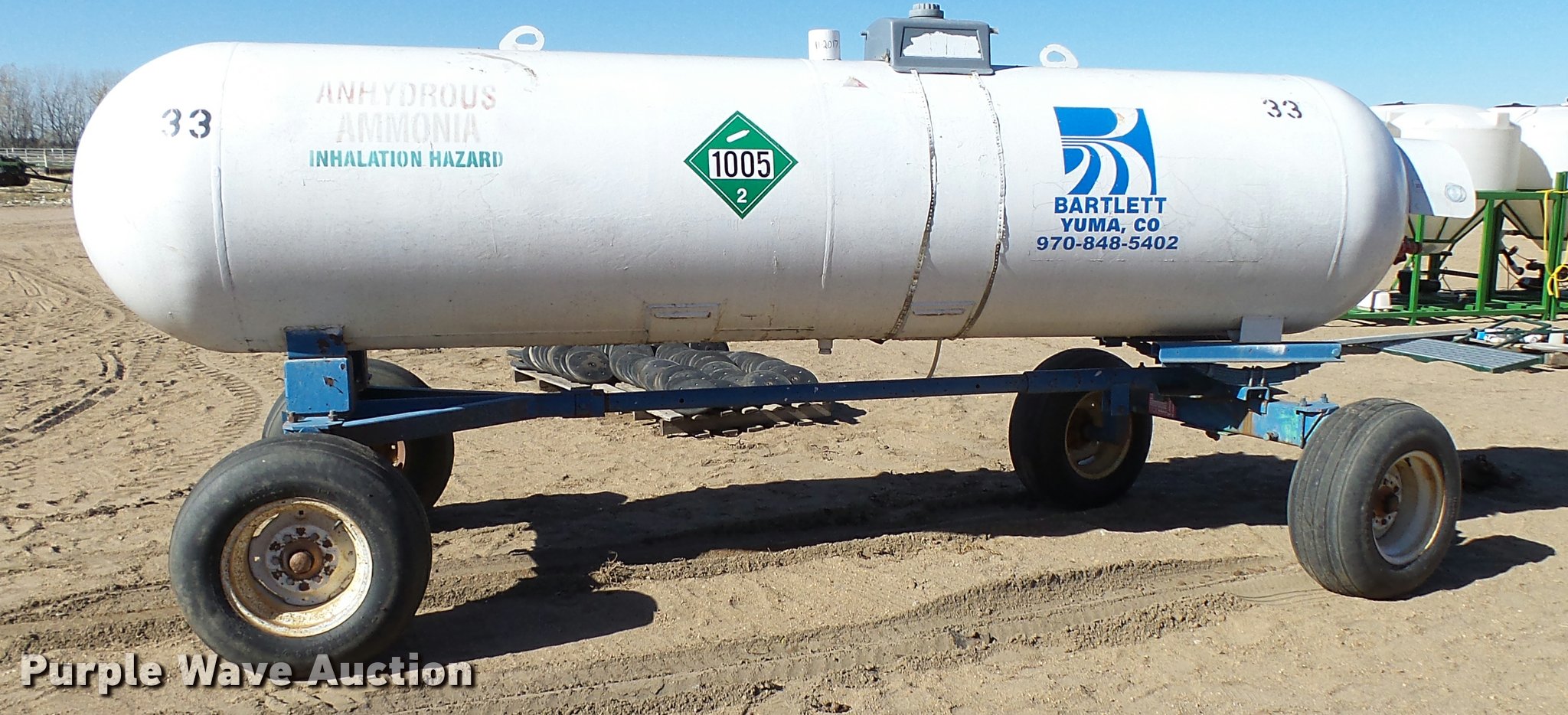 Purple Wave is selling a used Applicator Attach. in Kansas. This item is a Anhydrous tank with the following: 1,000 gallon capacity, Running gear, 11L-15 tires
