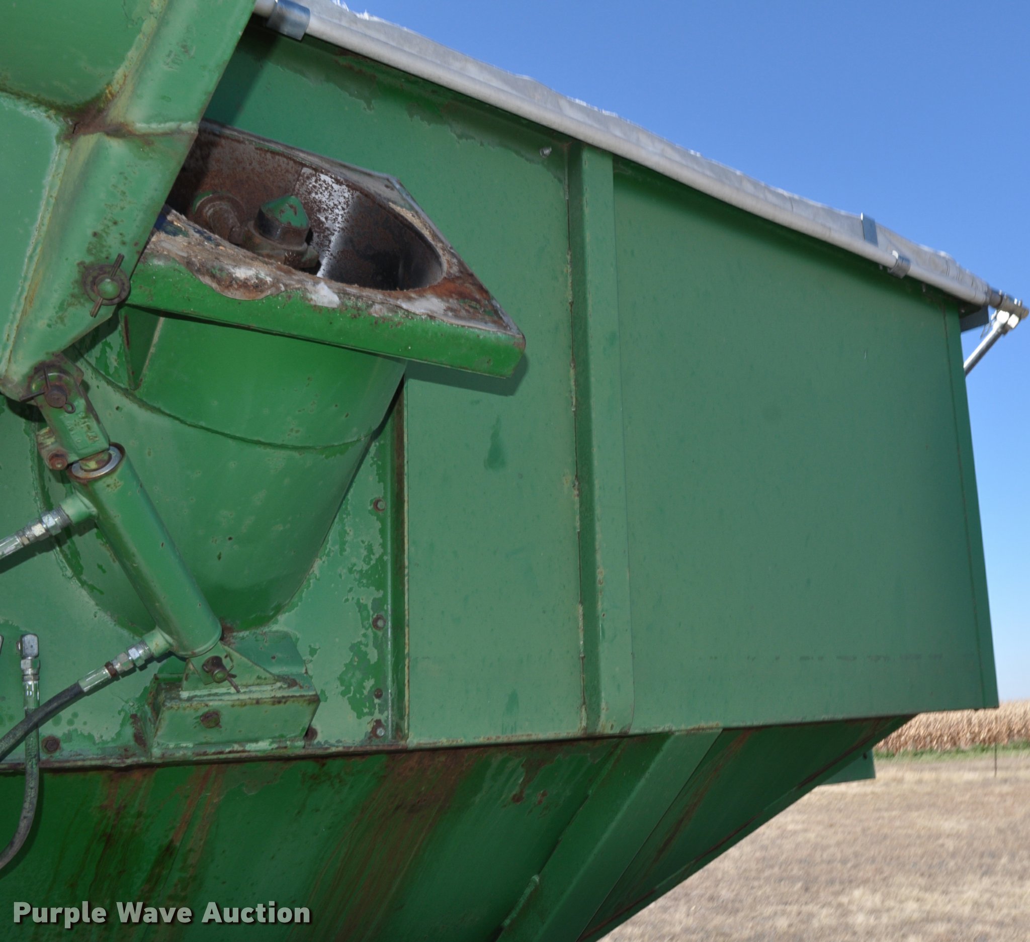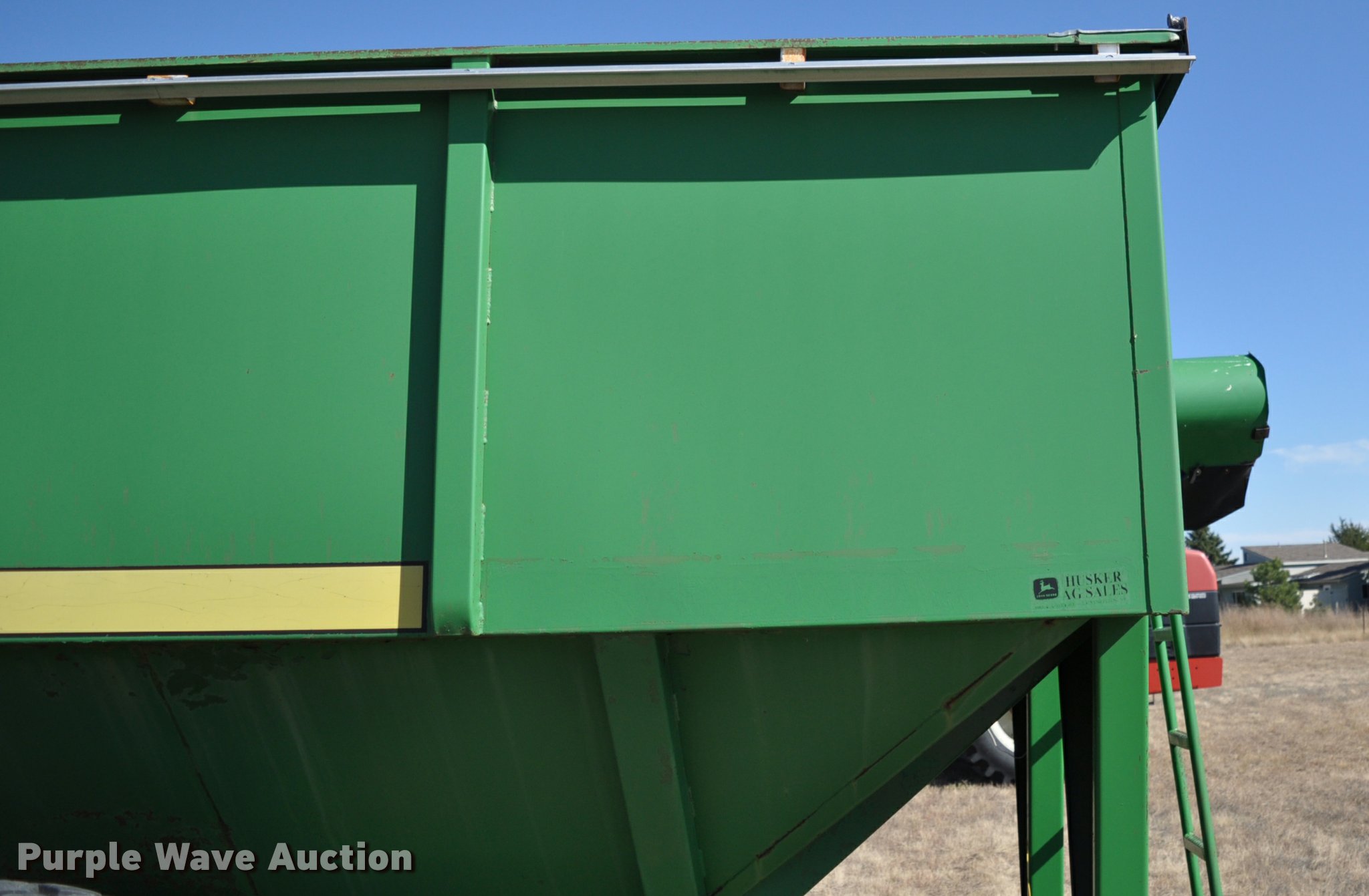 Purple Wave is selling a used Grain Cart or Gravity Wagon in Colorado. This item is a John Deere 500 grain cart with the following: 15" diameter auger, Hydraulic operation, Rollover tarp, Tarp ripped, 1000 PTO, Pin hitch, 18.4-26 tires, Serial A0500X010131