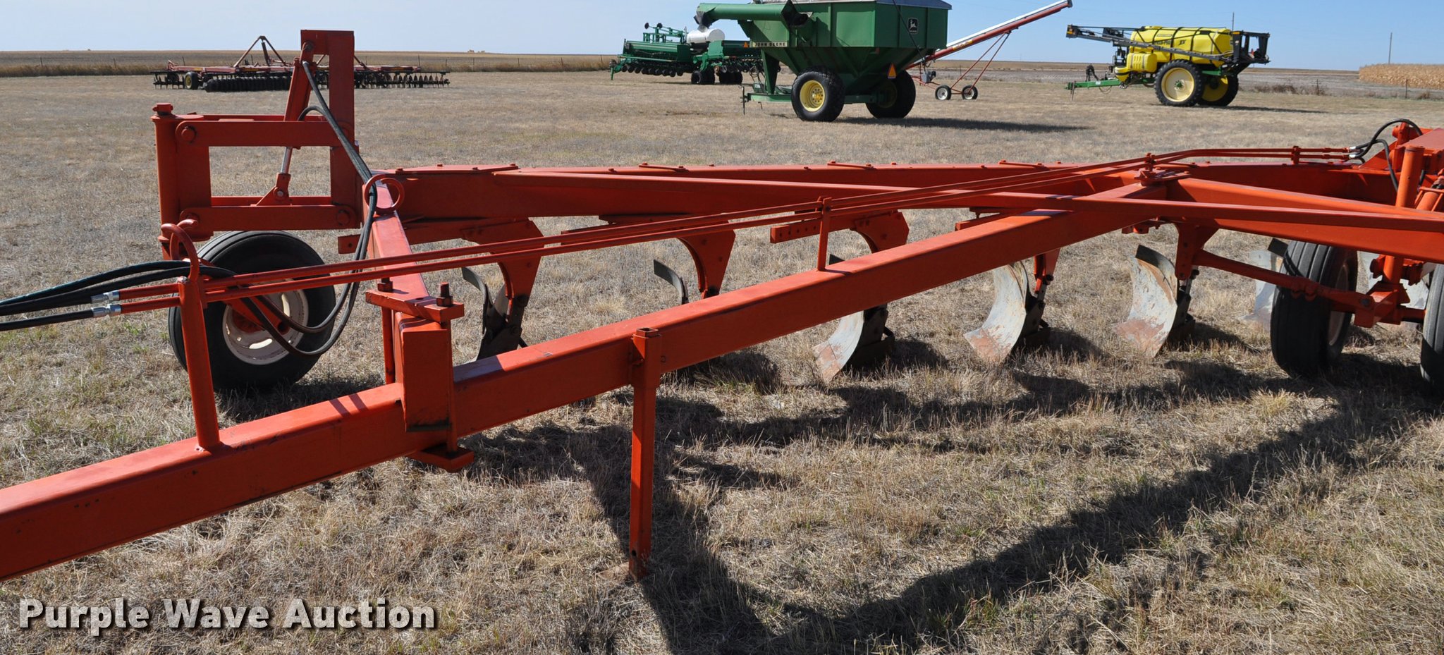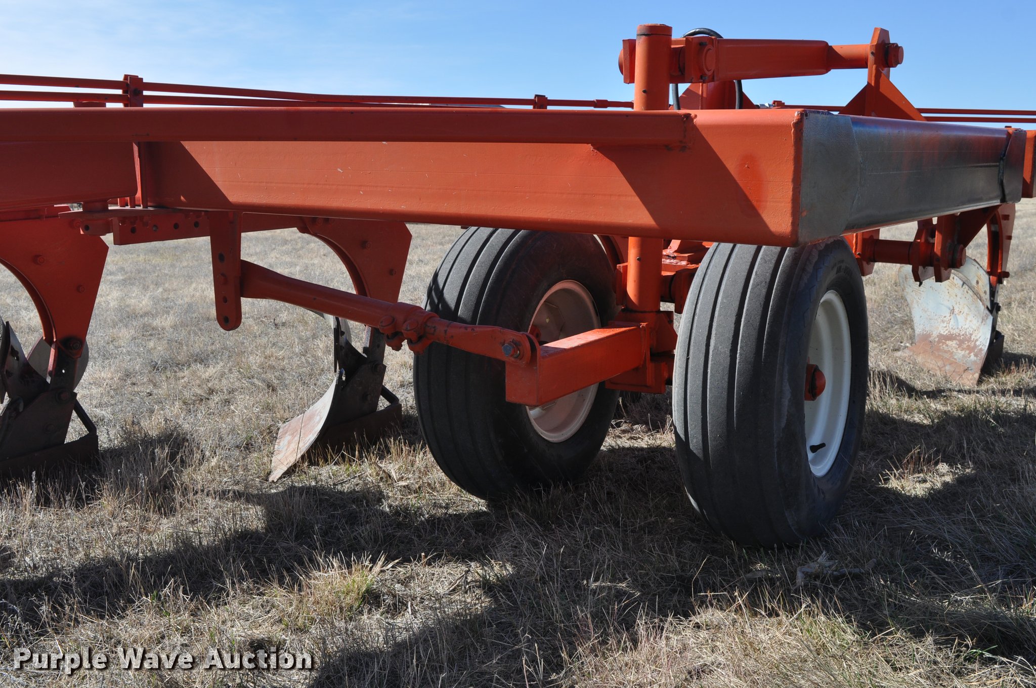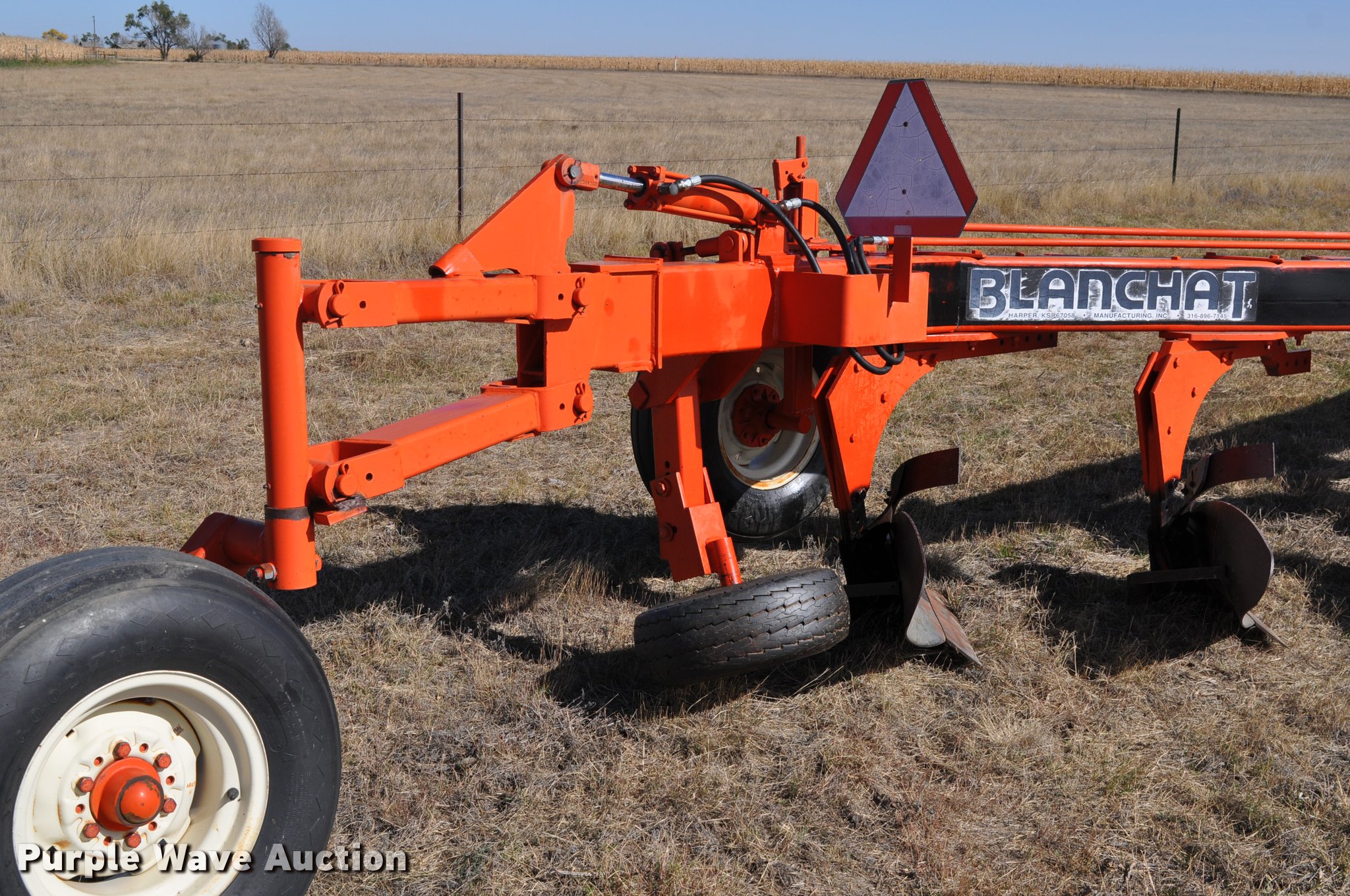 Purple Wave is selling a used Plow in Colorado. This item is a Blanchat one-way 10 bottom plow with the following: Case IH 18" bottoms, Hydraulic controls, Rolling coulters, Two damaged, Slab hitch, 20.5x8.0-10 in furrow guide tire, 11L-15 tires, Additional set of moldboards and lathes, Recently replaced hoses, Serial 7101152605