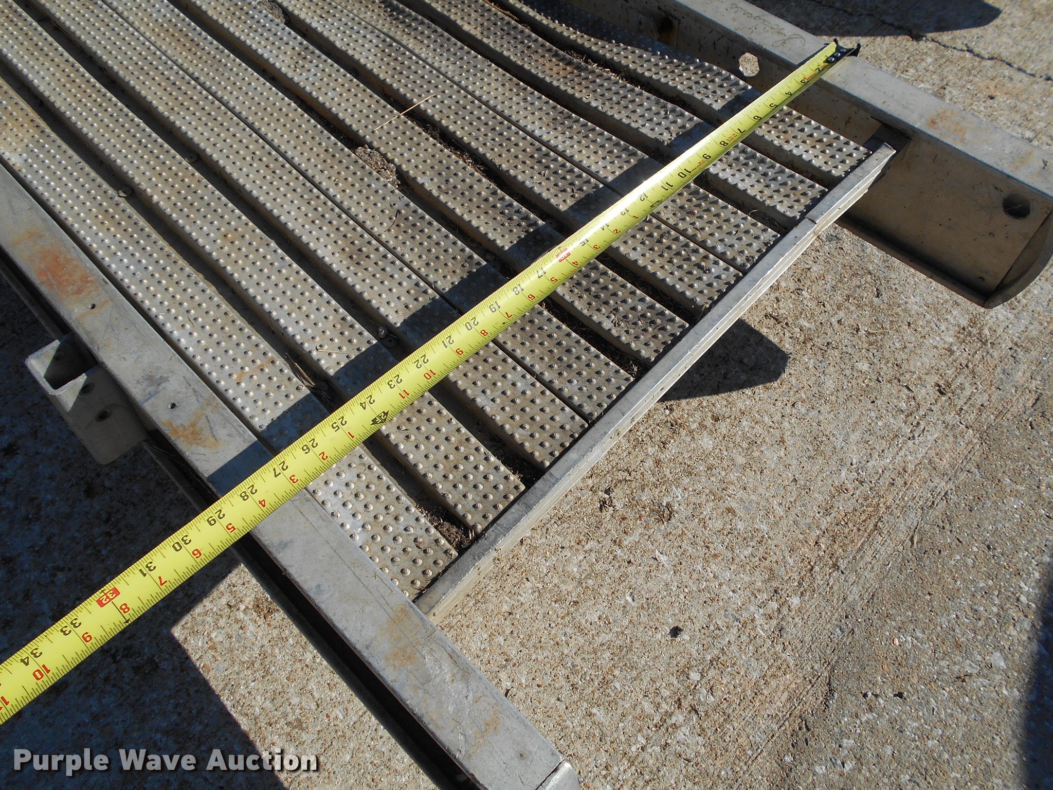 Purple Wave is selling a used Tools in Kansas. This item is a (2) aluminum scaffold planks with the following: 30'L x 28"W, Hand rail