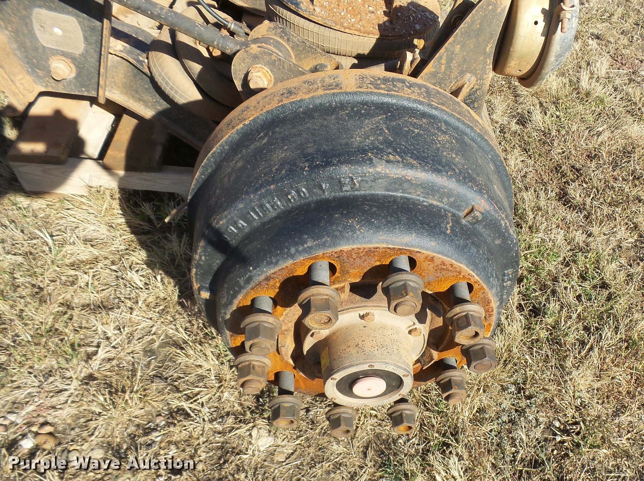 Pusher axle. Approx. 36"W, Air suspension, Air brakes, 10 lug. Jacam Chemicals. 1656 Avenue Q. Sterling, KS 67579