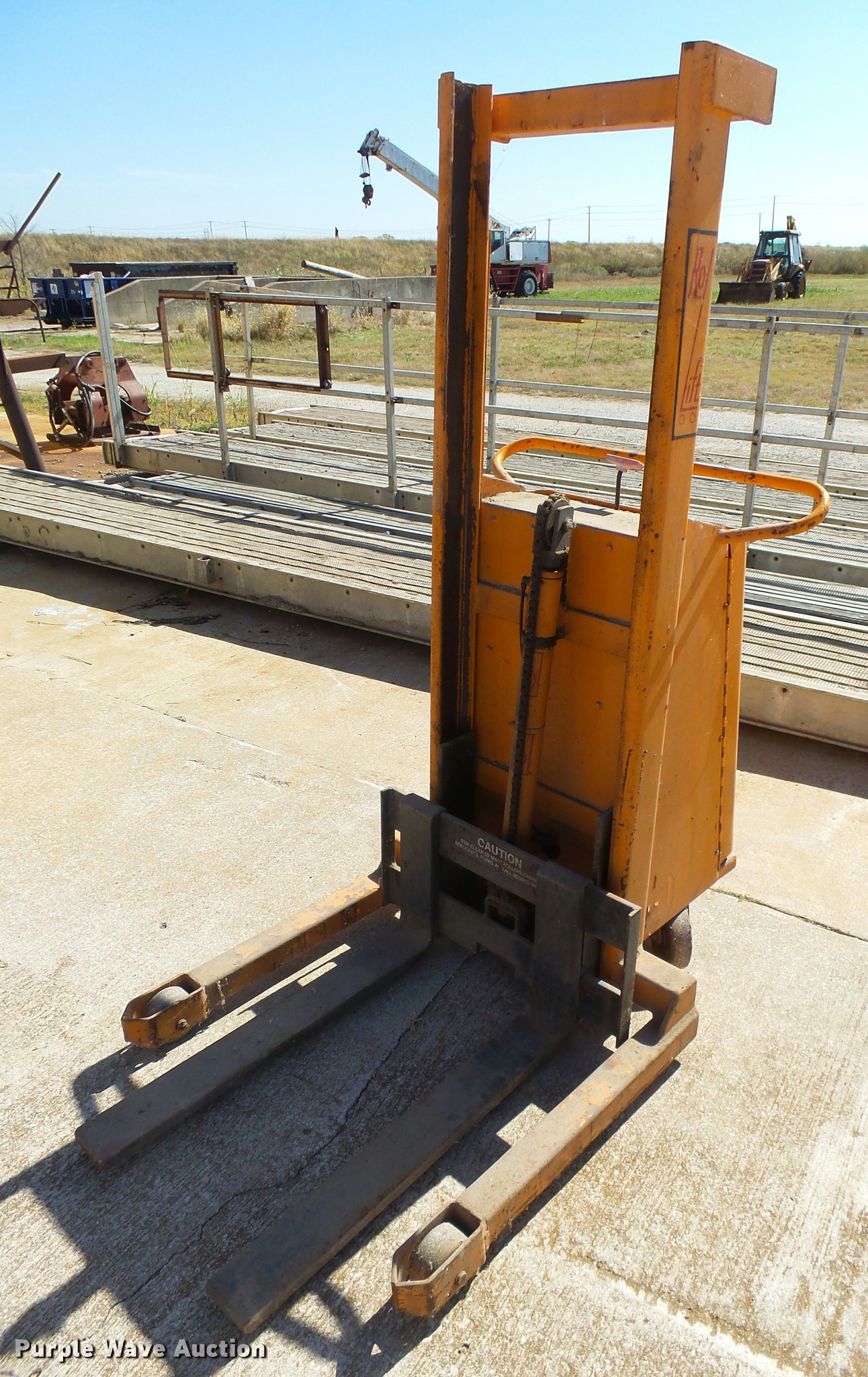 Purple Wave is selling a used Warehouse Forklift in Kansas. This item is a Rol-lift stacker with the following: Electric operation, 1,000 lbs capacity, 24" load center, 50" lift height, 30" forks, Serial 3521