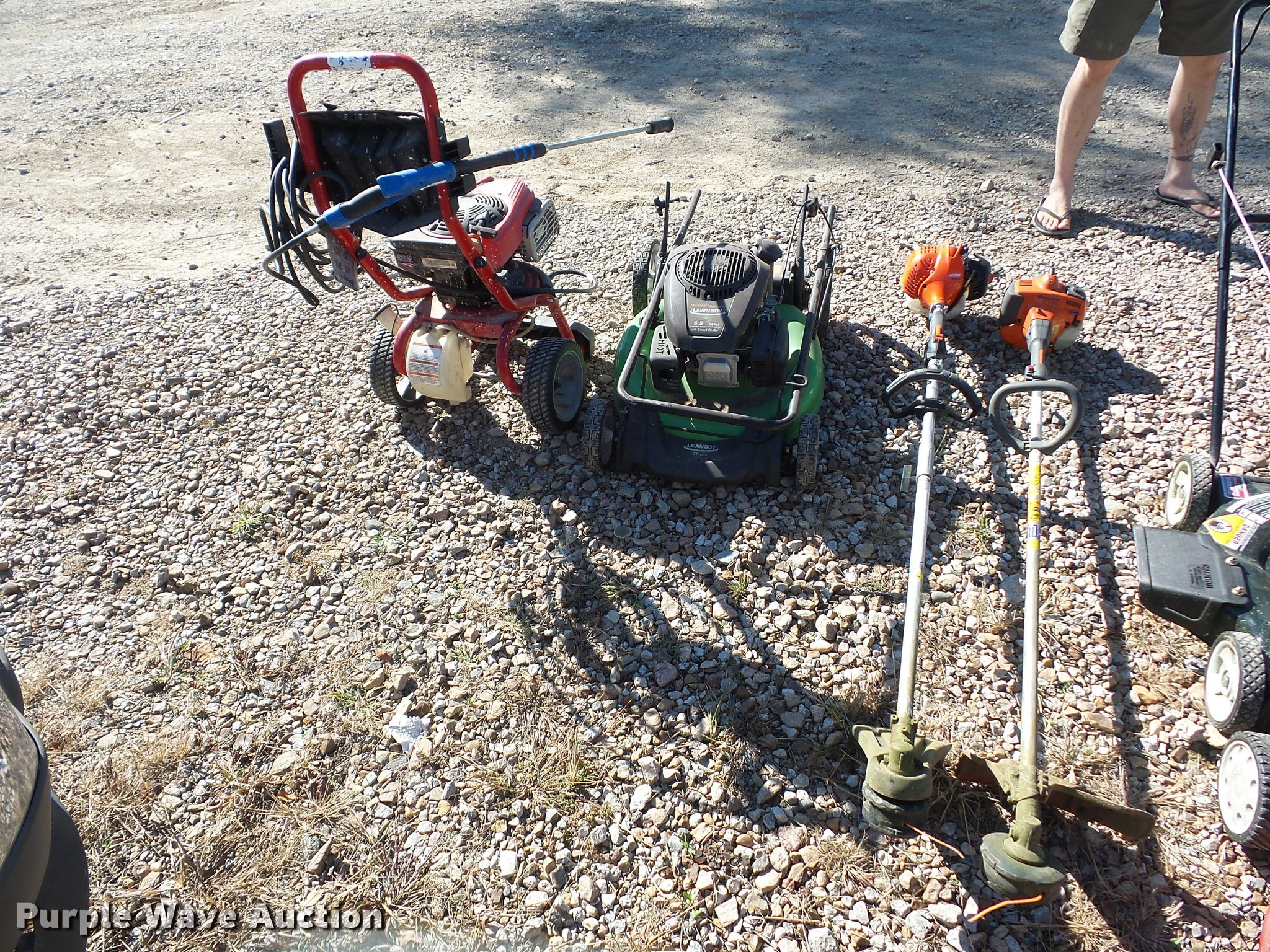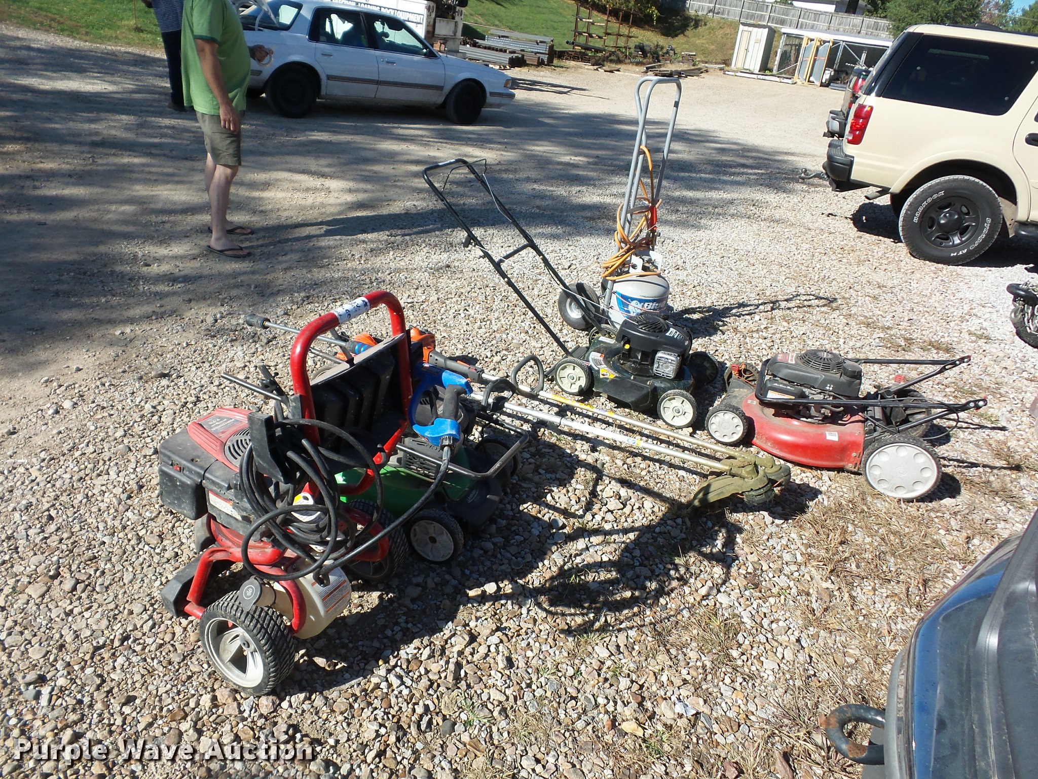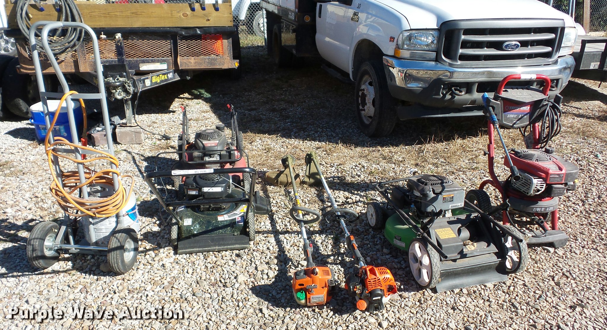 Purple Wave is selling a used Lawn and Garden in Missouri. This item is a Lawn and garden equipment with the following: (3) push mowers, (2) string trimmers, Pressure washer, Propane torch