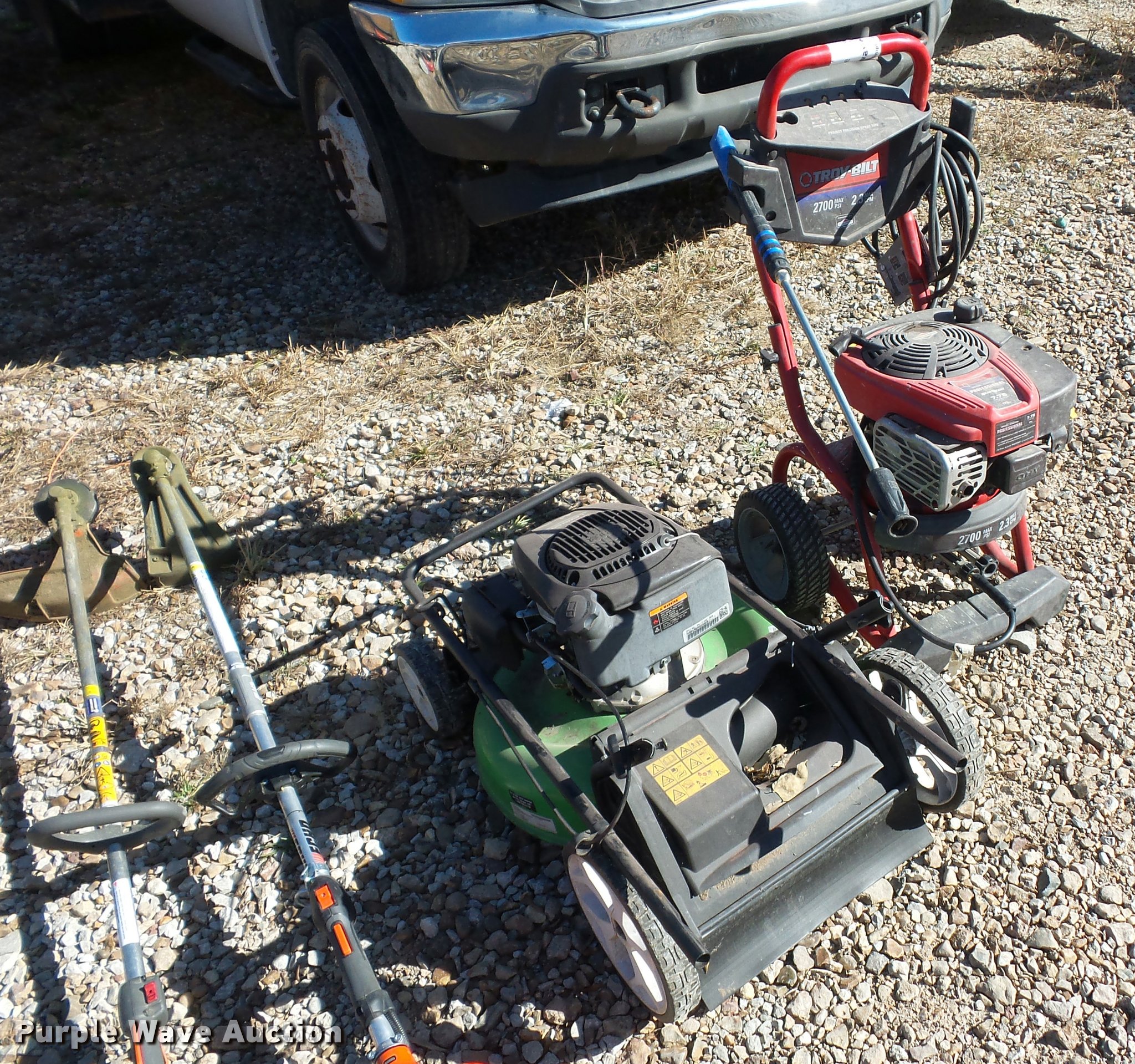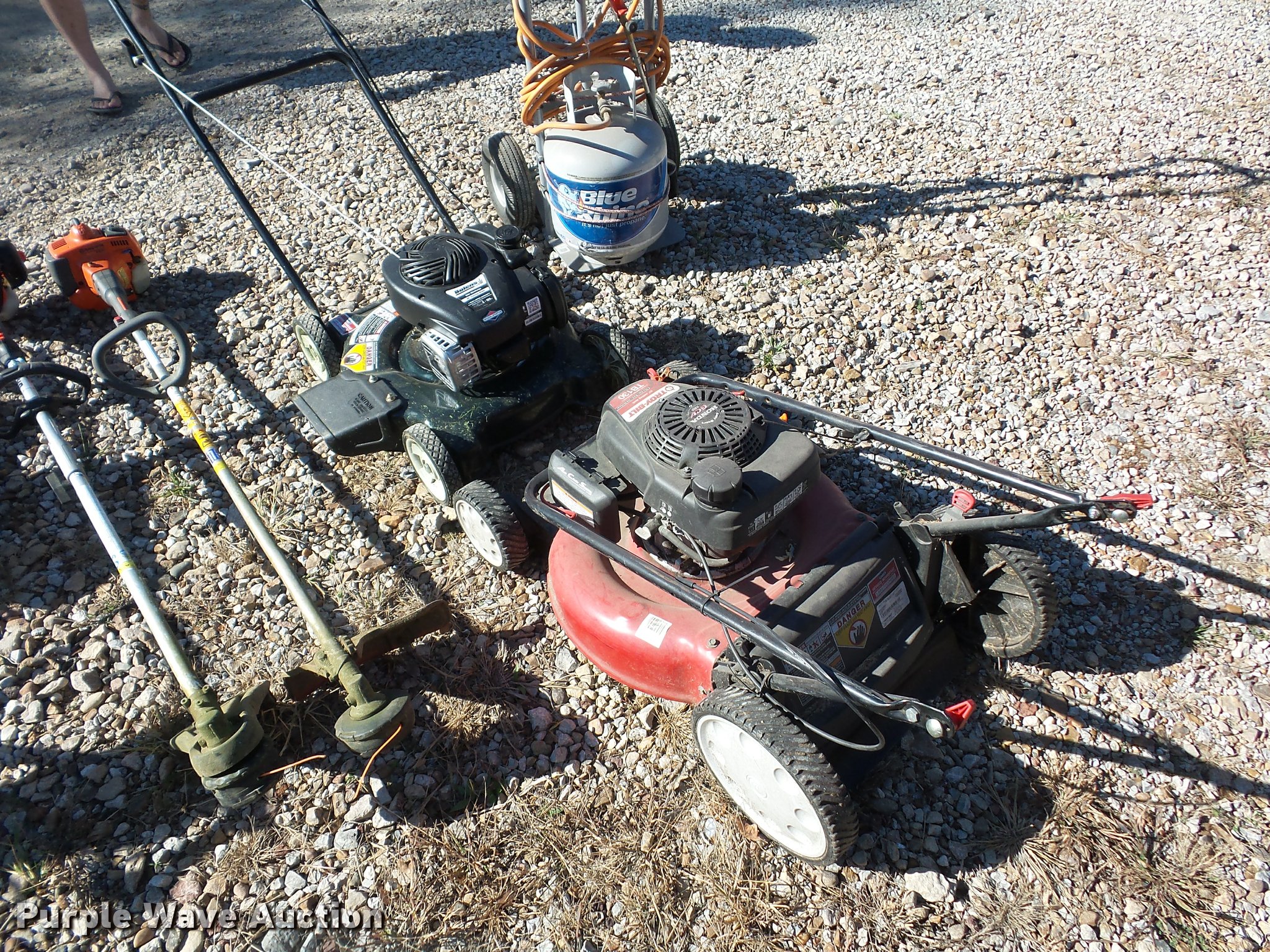 Lawn and garden equipment. (3) push mowers, (2) string trimmers, Pressure washer, Propane torch. 5225 WB Hwy 40. Blue Springs, MO 64015