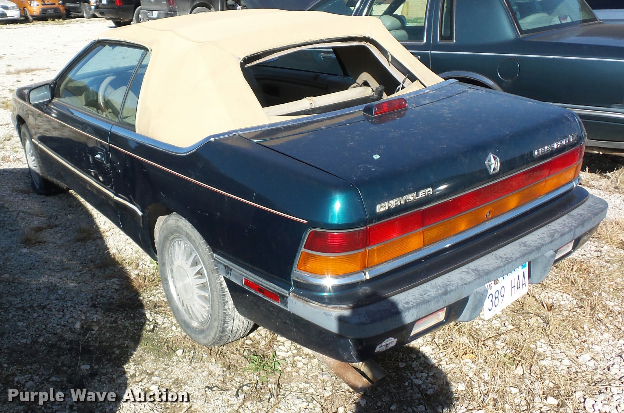 Purple Wave is selling a used Passenger Vehicle in Kansas. This item is a 1993 Chrysler Lebaron LX convertible with the following: 86,080 miles on odometer, 3.0L V6 SOHC 8V gas engine, Automatic transmission, AC and heat, Tilt, Cruise, AM/FM, Power windows, locks, and mirrors, Vinyl interior, 205/60R15 tires, Dead battery, Unknown operating condition