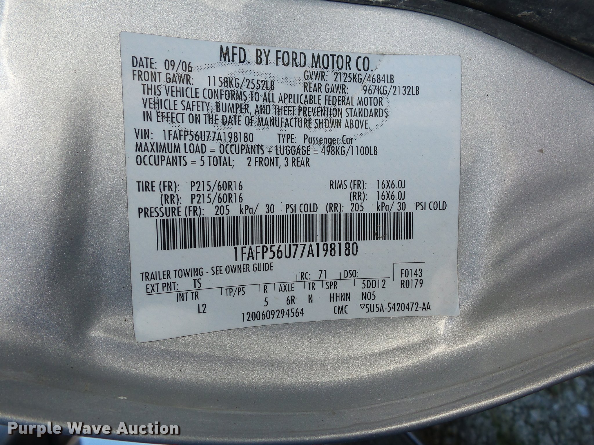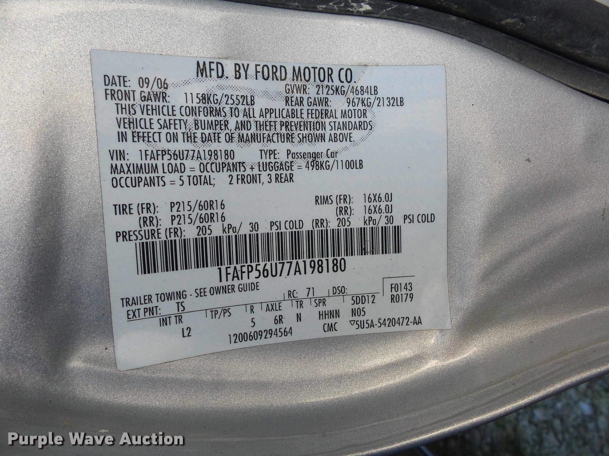 Purple Wave is selling a used Passenger Vehicle in Kansas. This item is a 2007 Ford Taurus with the following: 150,521 miles on odometer, 3.0L V6 OHV 12V gas engine, Automatic transmission, AC and heat, Tilt, Cruise, AM/FM, Power windows, locks, and mirrors, Vinyl interior, 215/60R16 tires, Dead battery, Unknown operating condition