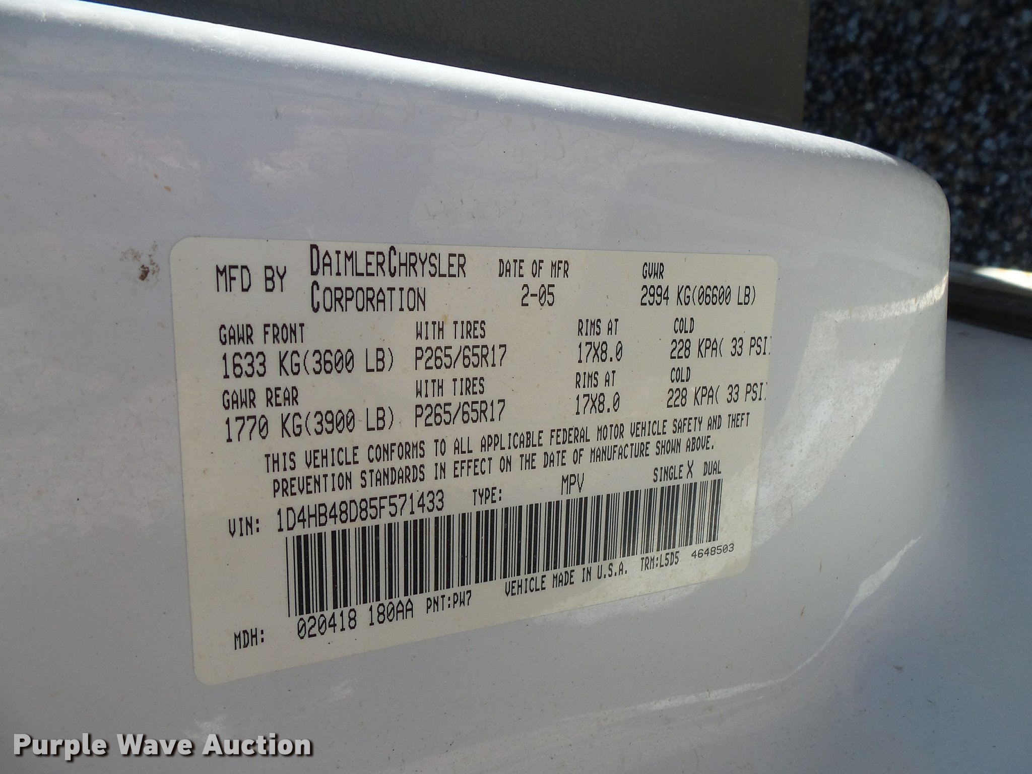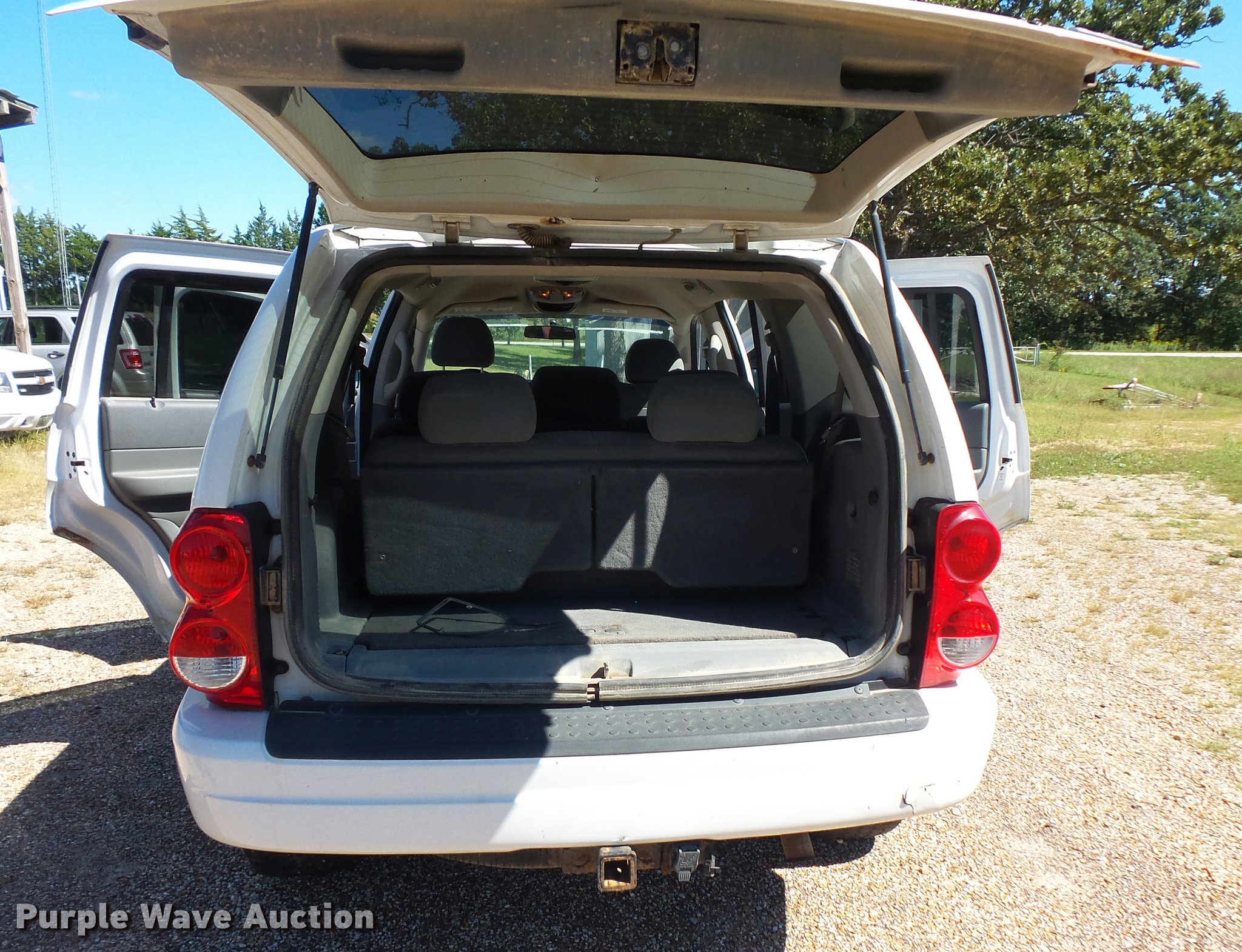 Purple Wave is selling a used Passenger Vehicle in Missouri. This item is a 2005 Dodge Durango SUV with the following: Unknown miles on odometer, 5.7L V8 OHV 16V gas engine, Automatic transmission, AC and heat, Tilt, Cruise, AM/FM/CD, Power windows and locks, Cloth interior, Receiver hitch, Low on power