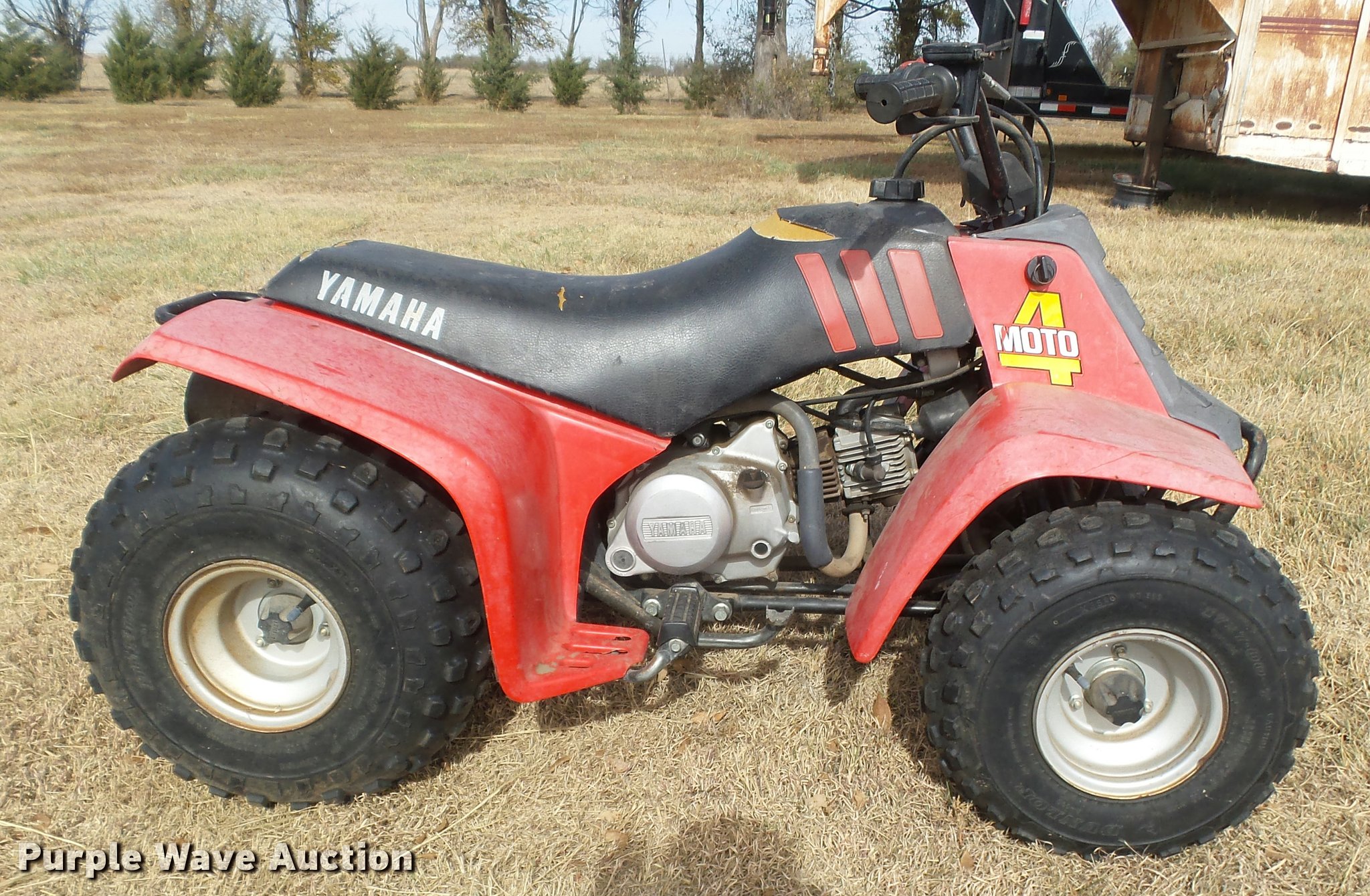 Purple Wave is selling a used ATV in Kansas. This item is a 1985 Yamaha Moto 4 ATV with the following: Single cylinder gas engine, 17x7.00-7 front tires, 18x9.00-7 rear tires, Non-operational unit, carburetor issues