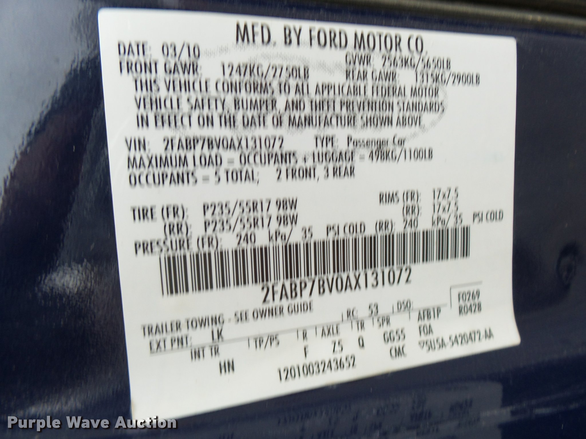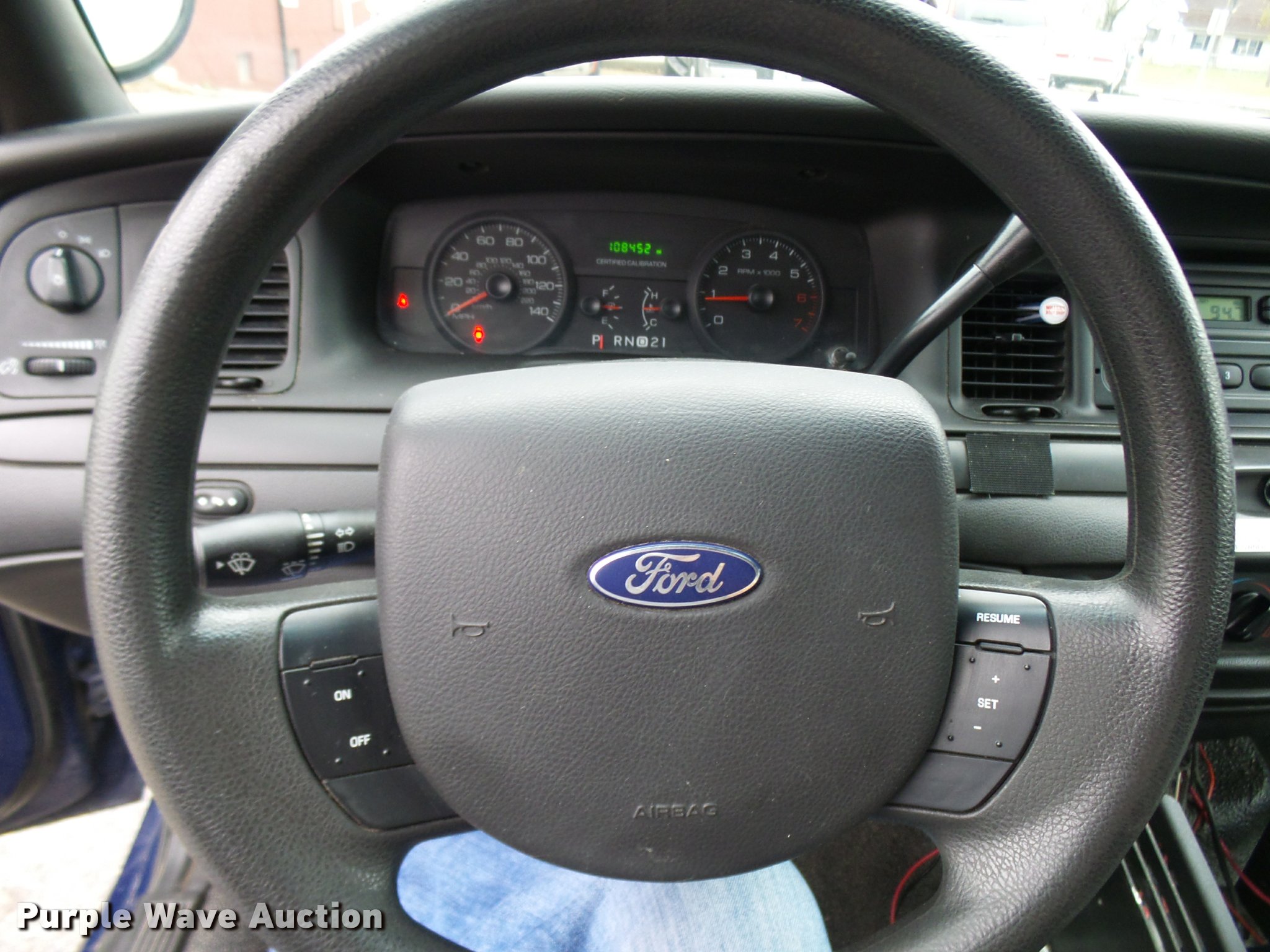 Purple Wave is selling a used Passenger Vehicle in Missouri. This item is a 2010 Ford Crown Victoria Police Interceptor with the following: 108,452 miles on odometer, 4.6L V8 SOHC 16V FFV gas engine, Automatic transmission, AC and heat, Tilt, Cruise, AM/FM, Power windows and locks, Cloth interior, Spotlight, Grill guard, Emergency lights and sirens, 235/55R17 tires