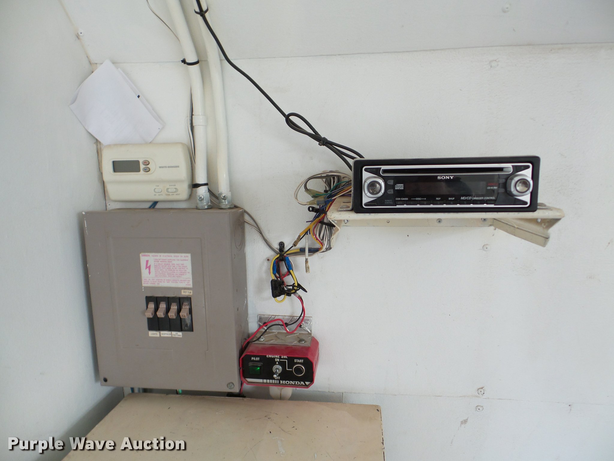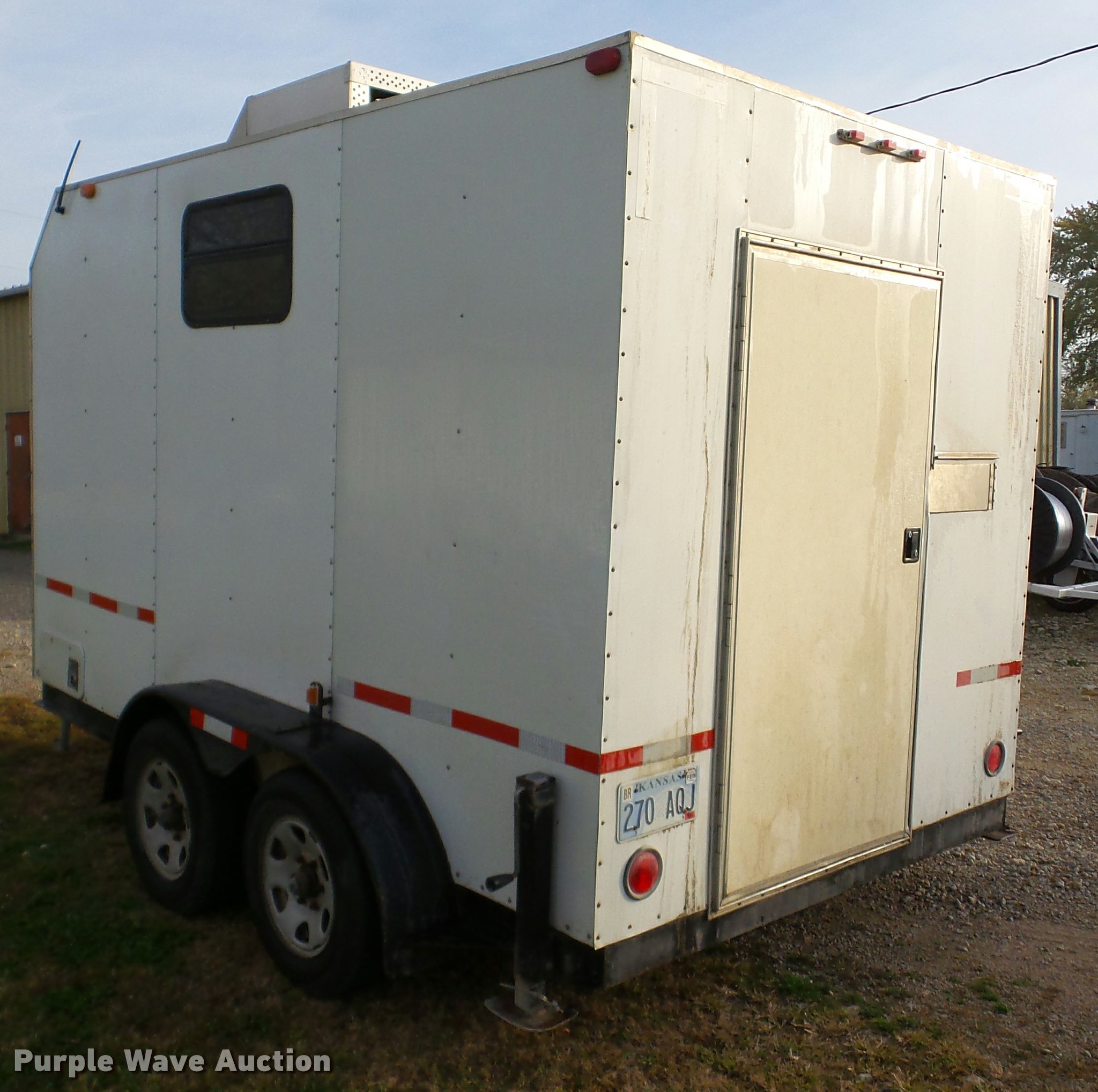Purple Wave is selling a used Enclosed Cargo Trailer in Kansas. This item is a 1997 shop built enclosed cargo trailer with the following: 12'L x 7'W, Honda EM5000S generator, Gas engine, Electric start, Engine sputters, Sony radio, Brisk air root air conditioner, 2" ball hitch, Tandem axle, 205/75R15 tires