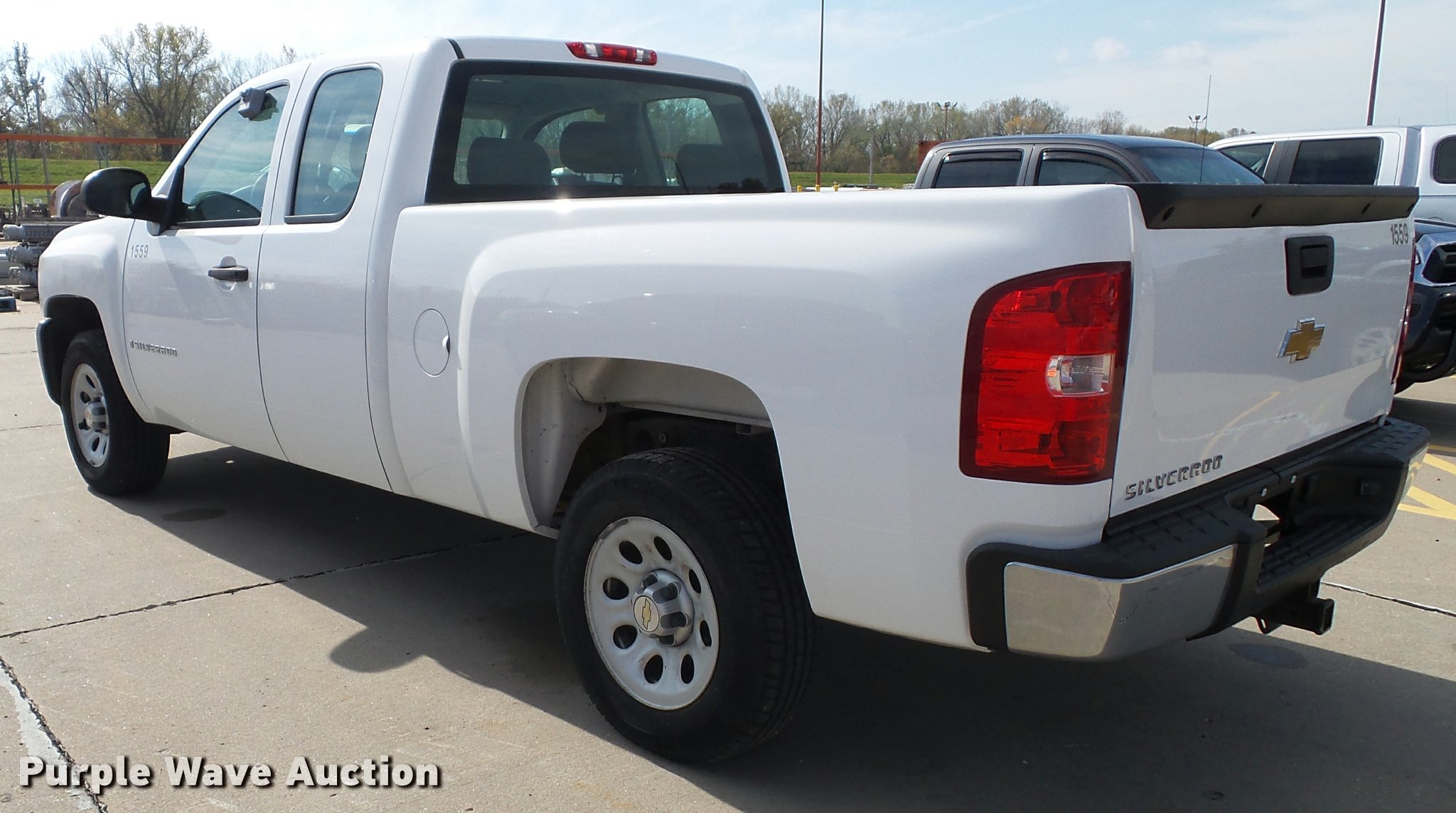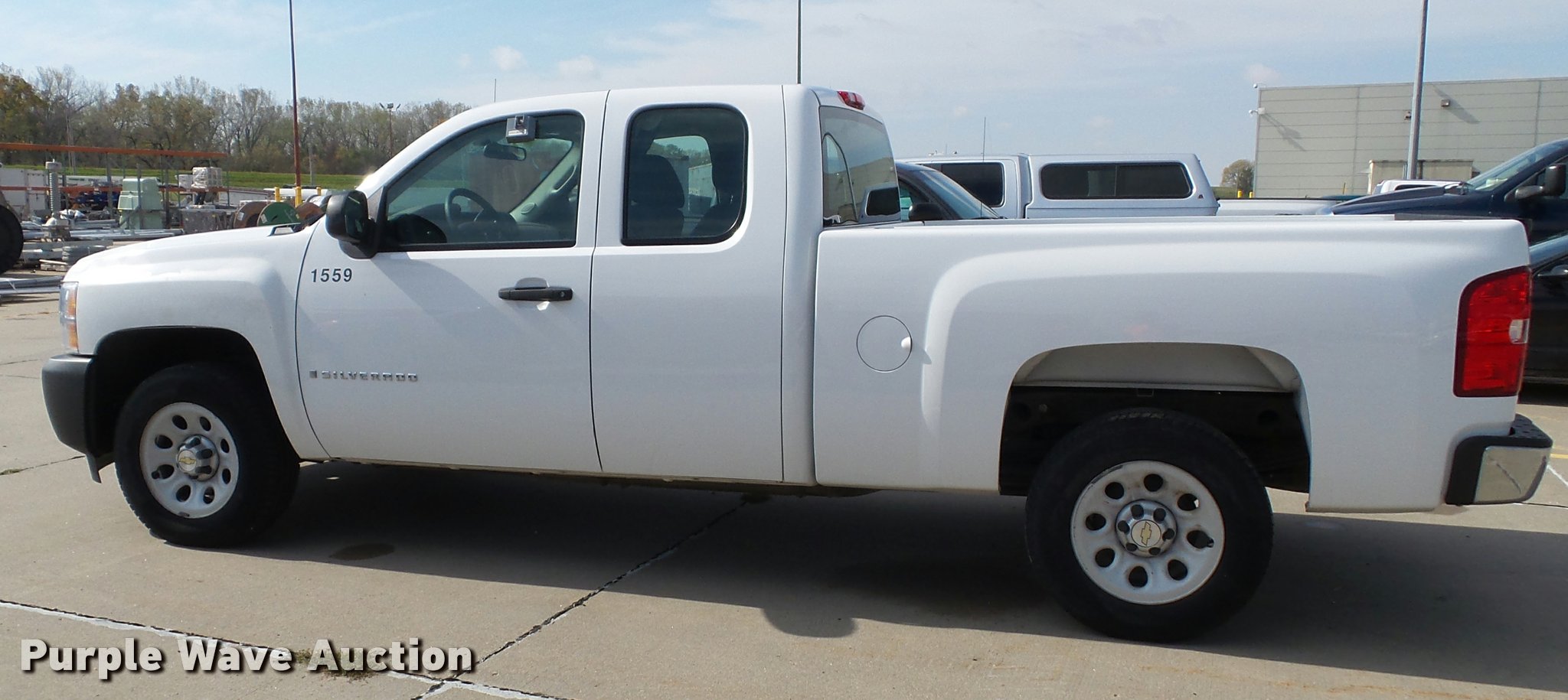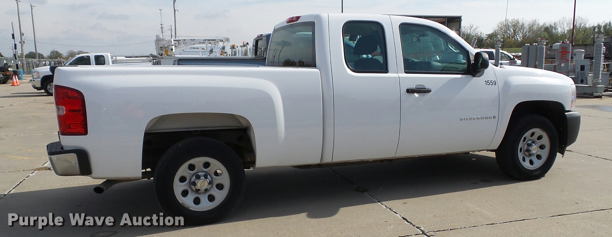 Purple Wave is selling a used 1/2 Ton Pickup or Van in Kansas. This item is a 2009 Chevrolet Silverado 1500 Ext. Cab pickup truck with the following: 190,542 miles on odometer, 4.8L V8 OHV 16V gas engine, Automatic transmission, AC and heat, Tilt, Cruise, AM/FM/CD, Power windows, locks, and mirrors, Cloth interior, Front tow hooks, Receiver hitch, Trailer wiring, 245/70R17 tires, Unit# 1559