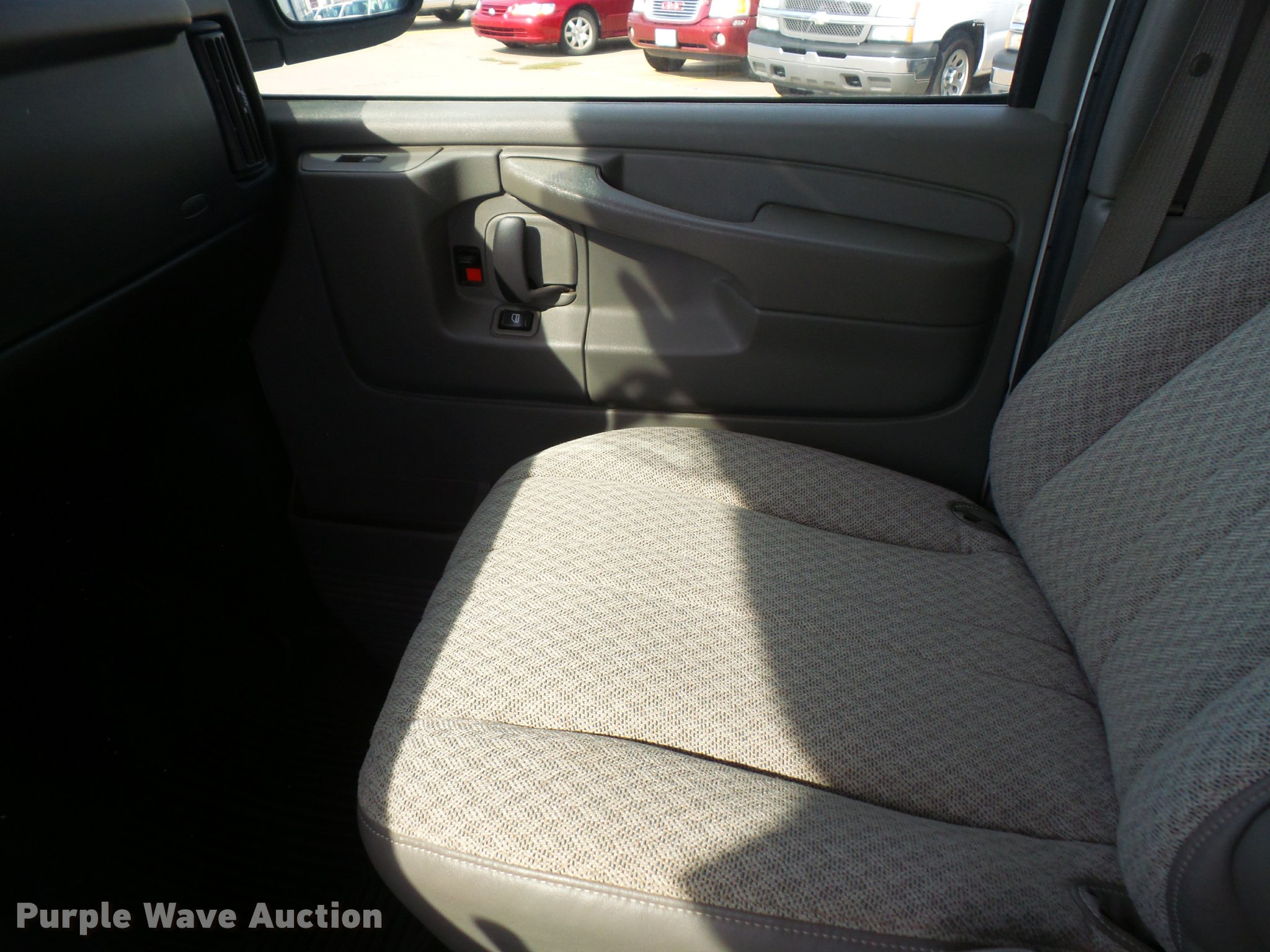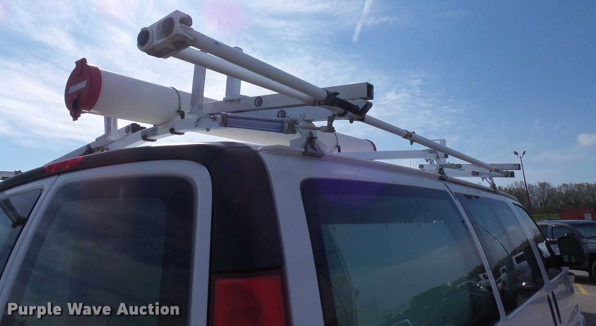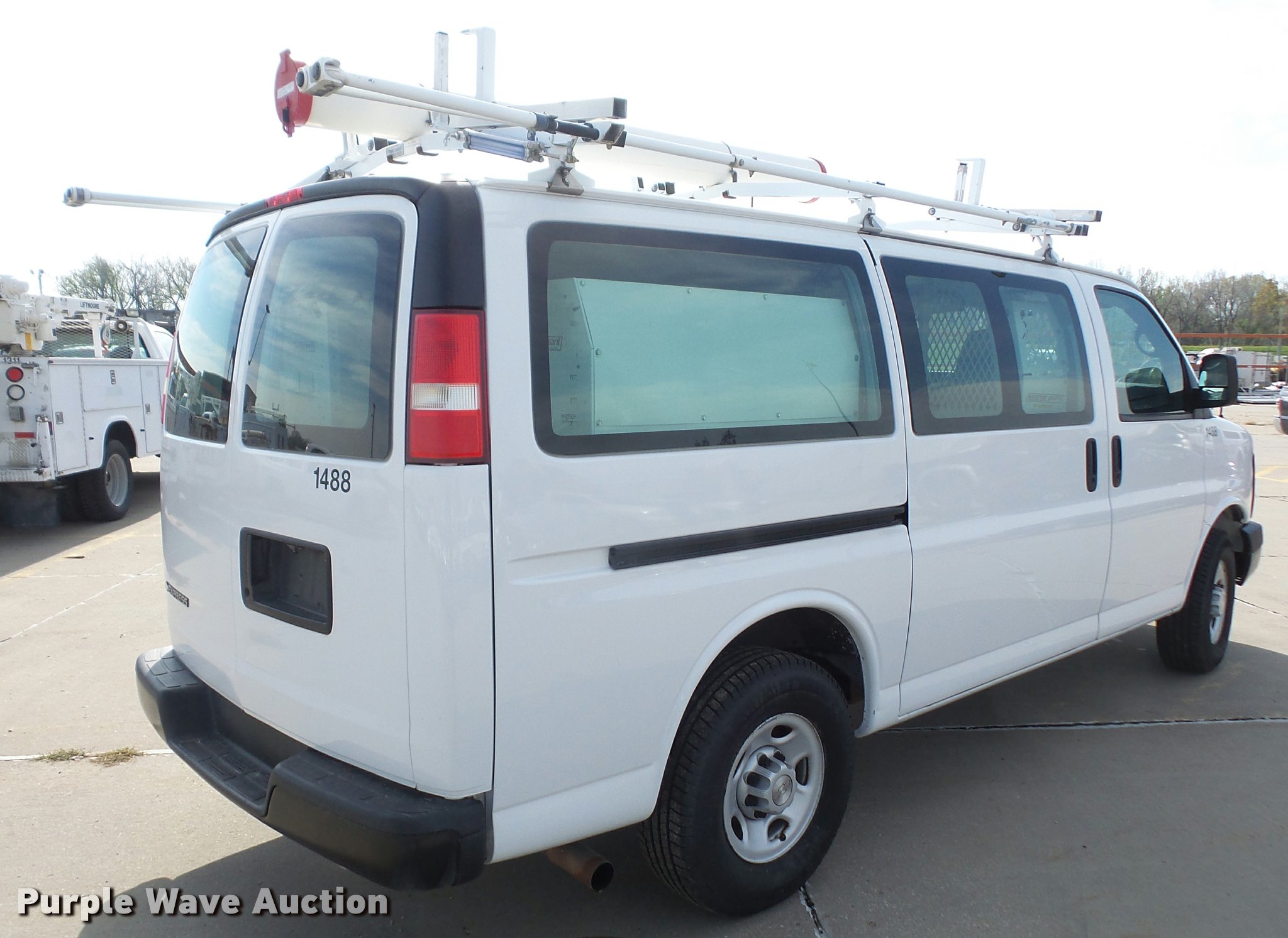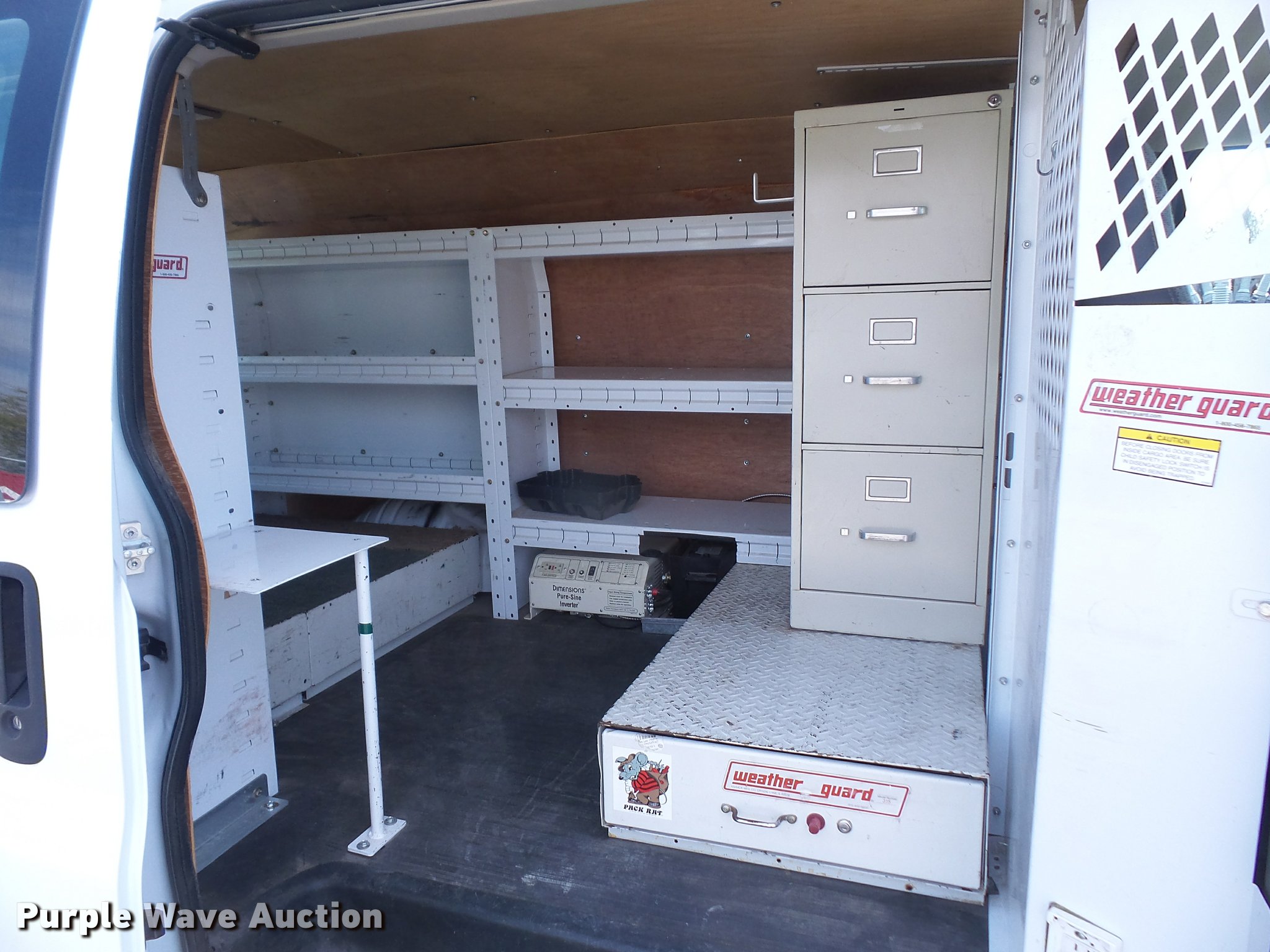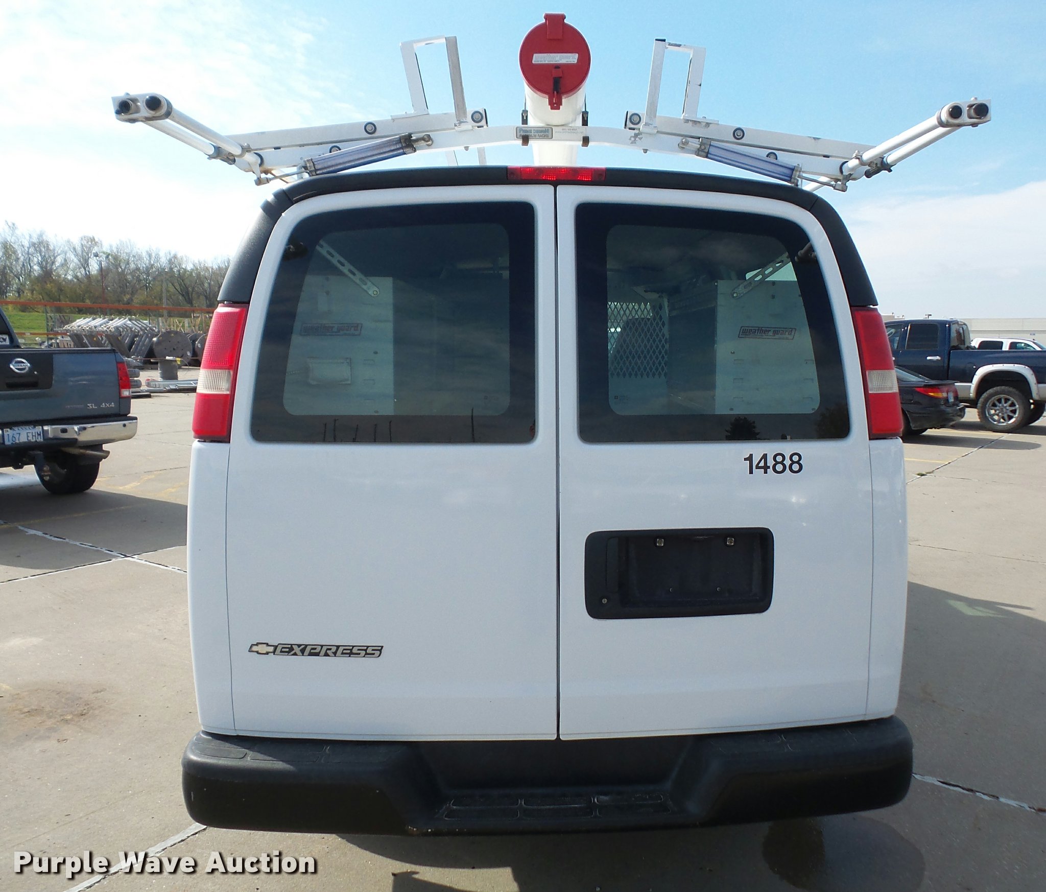 Purple Wave is selling a used 3/4 or 1 Ton Pickup or Van in Kansas. This item is a 2008 Chevrolet Express 3500 Cargo van with the following: 141,155 miles on odometer, 4,430 hours on meter, 6.0L V8 OHV 16V gas engine, Automatic transmission, AC and heat, Tilt, Cruise, AM/FM/CD, Power windows, locks, and mirrors, Cloth interior, Interior shelving, Toolboxes, Inverter, File cabinet, Cargo divider, Ladder rack, 245/75R16 tires, Unit# 1488