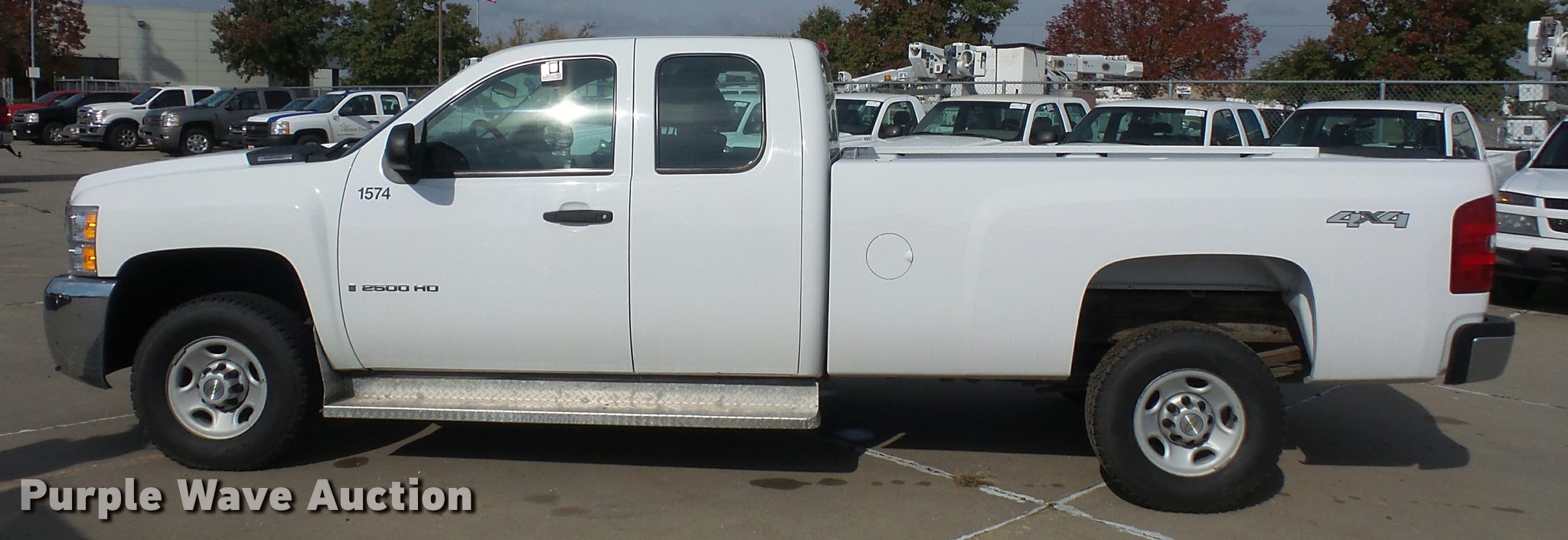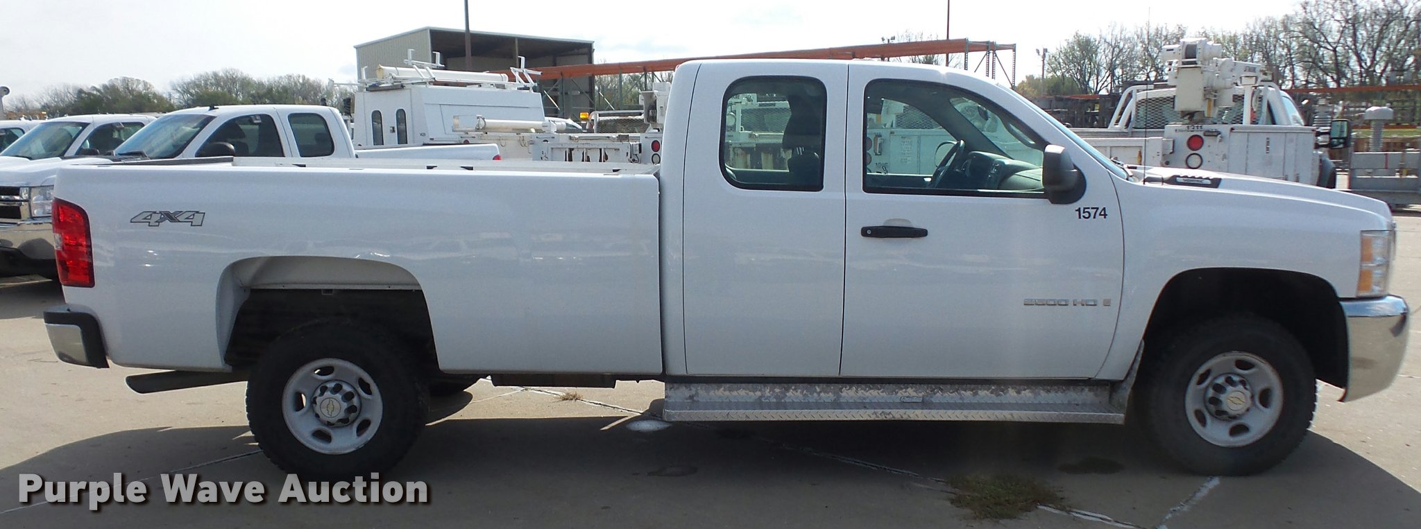 Purple Wave is selling a used 3/4 or 1 Ton Pickup or Van in Kansas. This item is a 2009 Chevrolet Silverado 2500HD Ext. Cab pickup truck with the following: 198,870 miles on odometer, 6.0L V8 OHV 16V gas engine, Automatic transmission, Four wheel drive, AC and heat, Tilt, Cruise, AM/FM/CD, Power windows, locks, and mirrors, Cloth interior, Front tow hooks, Running boards, Long bed, Receiver hitch, Trailer wiring, 245/75R16 tires, Unit# 1574