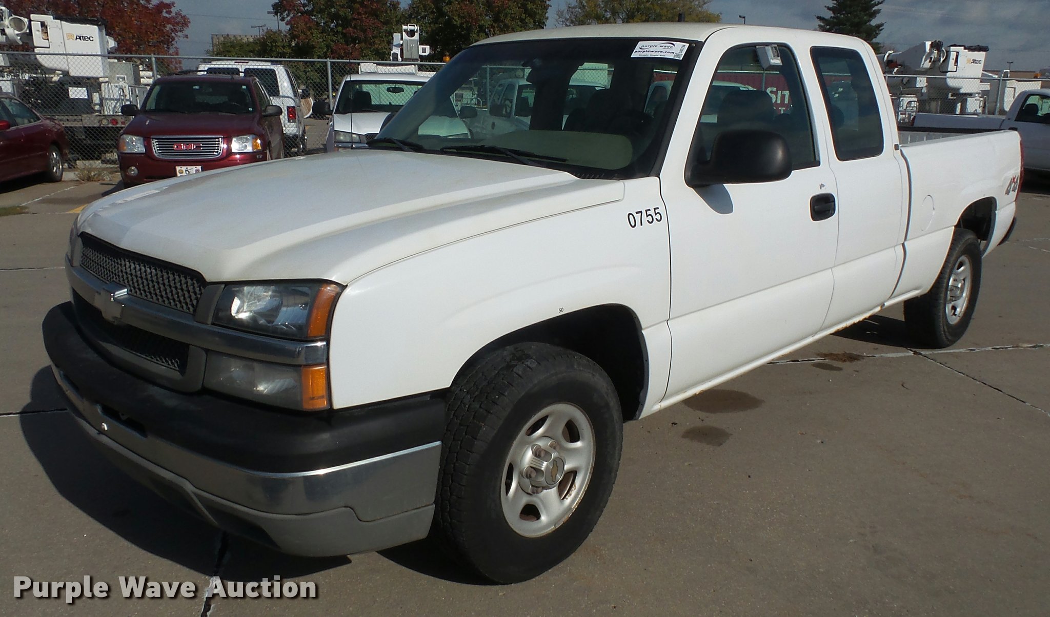 Purple Wave is selling a used 1/2 Ton Pickup or Van in Kansas. This item is a 2003 Chevrolet Silverado 1500 Ext. Cab pickup truck with the following: 122,779 miles on odometer, 4.8L V8 OHV 16V gas engine, Automatic transmission, Four wheel drive, AC and heat, Tilt, Cruise, AM/FM, Manual windows and locks, Cloth driver's interior, Vinyl passenger and rear interior, Front tow hooks, 245/75R16 tires, Unit# 0755
