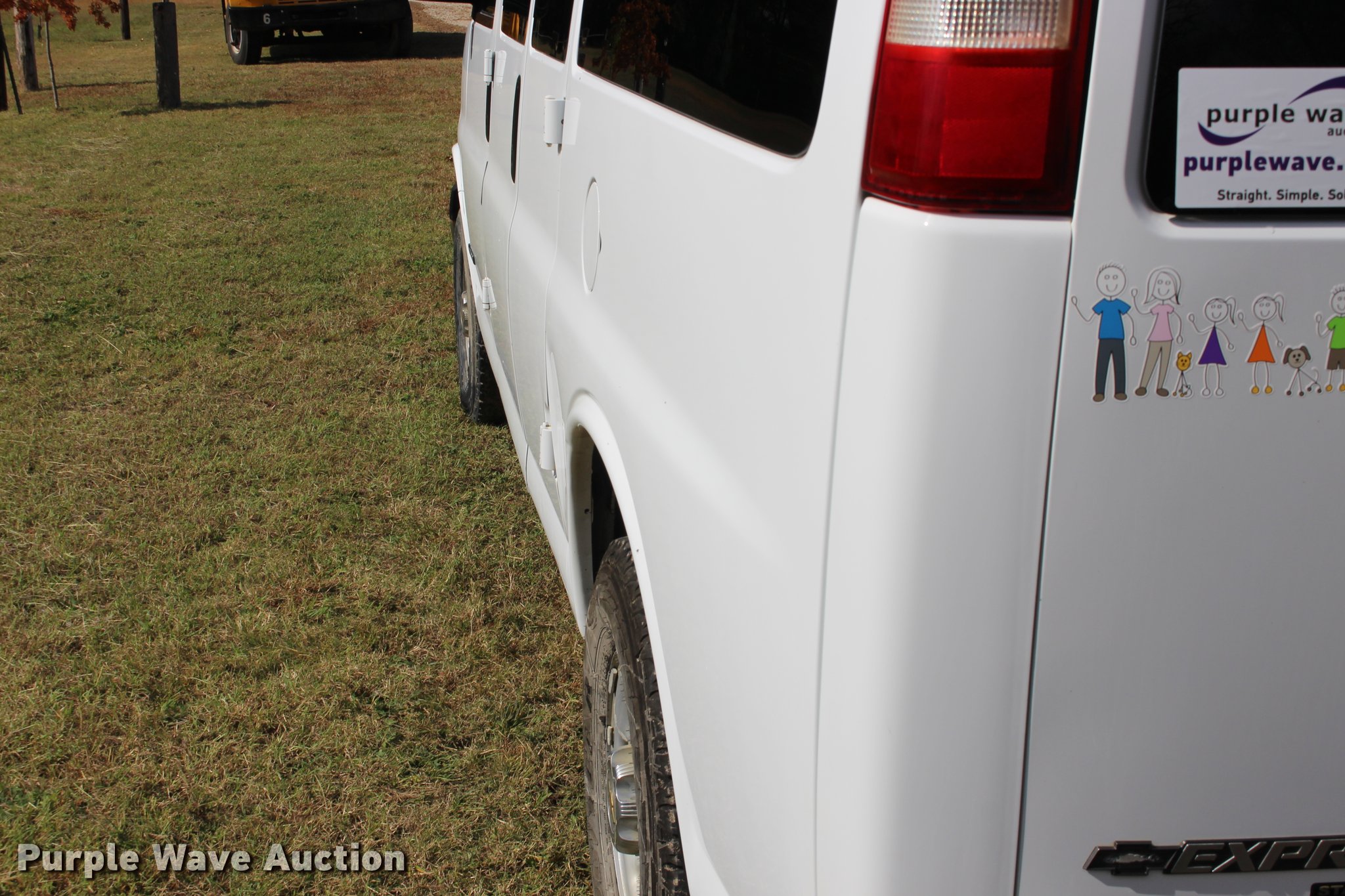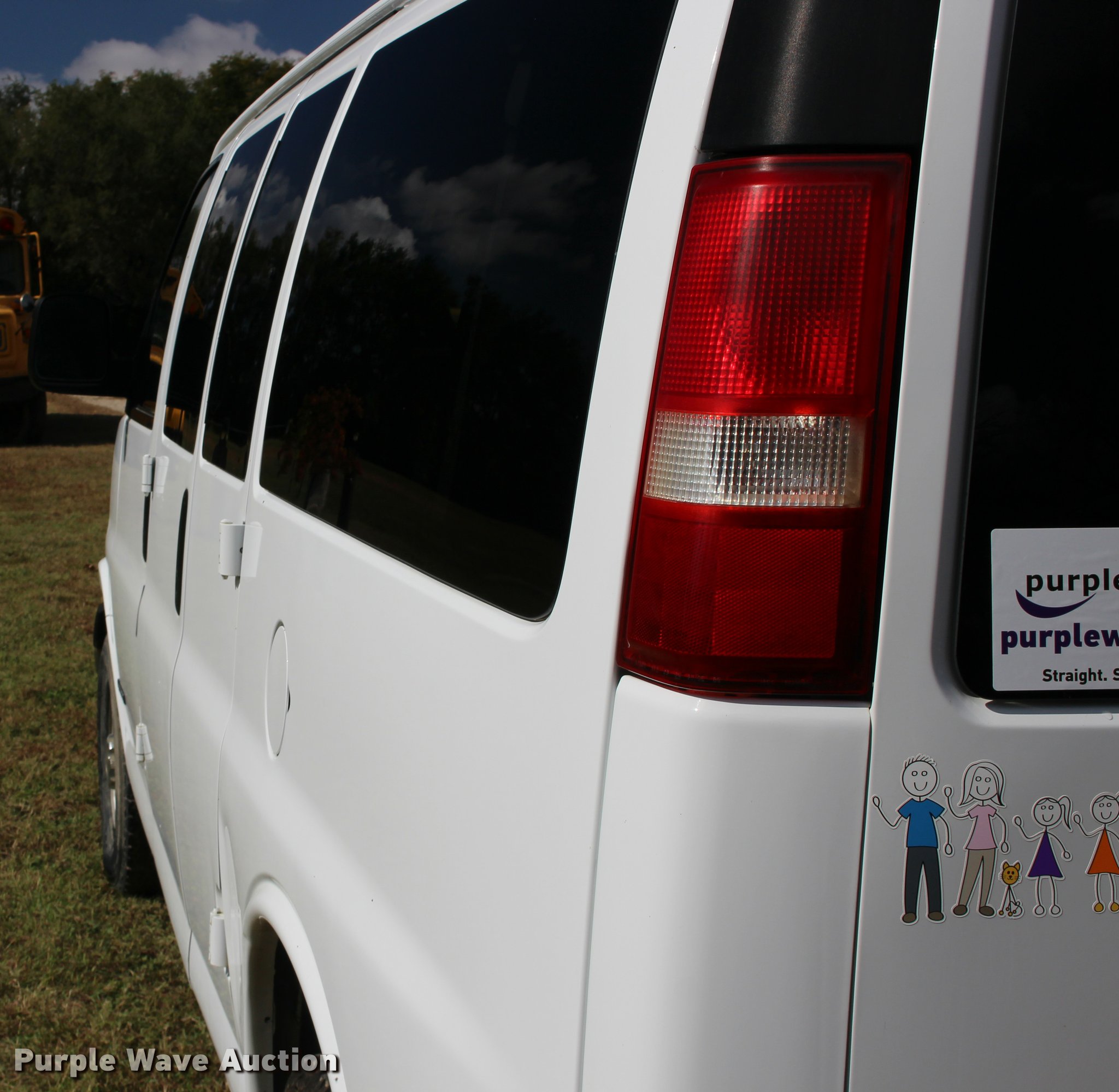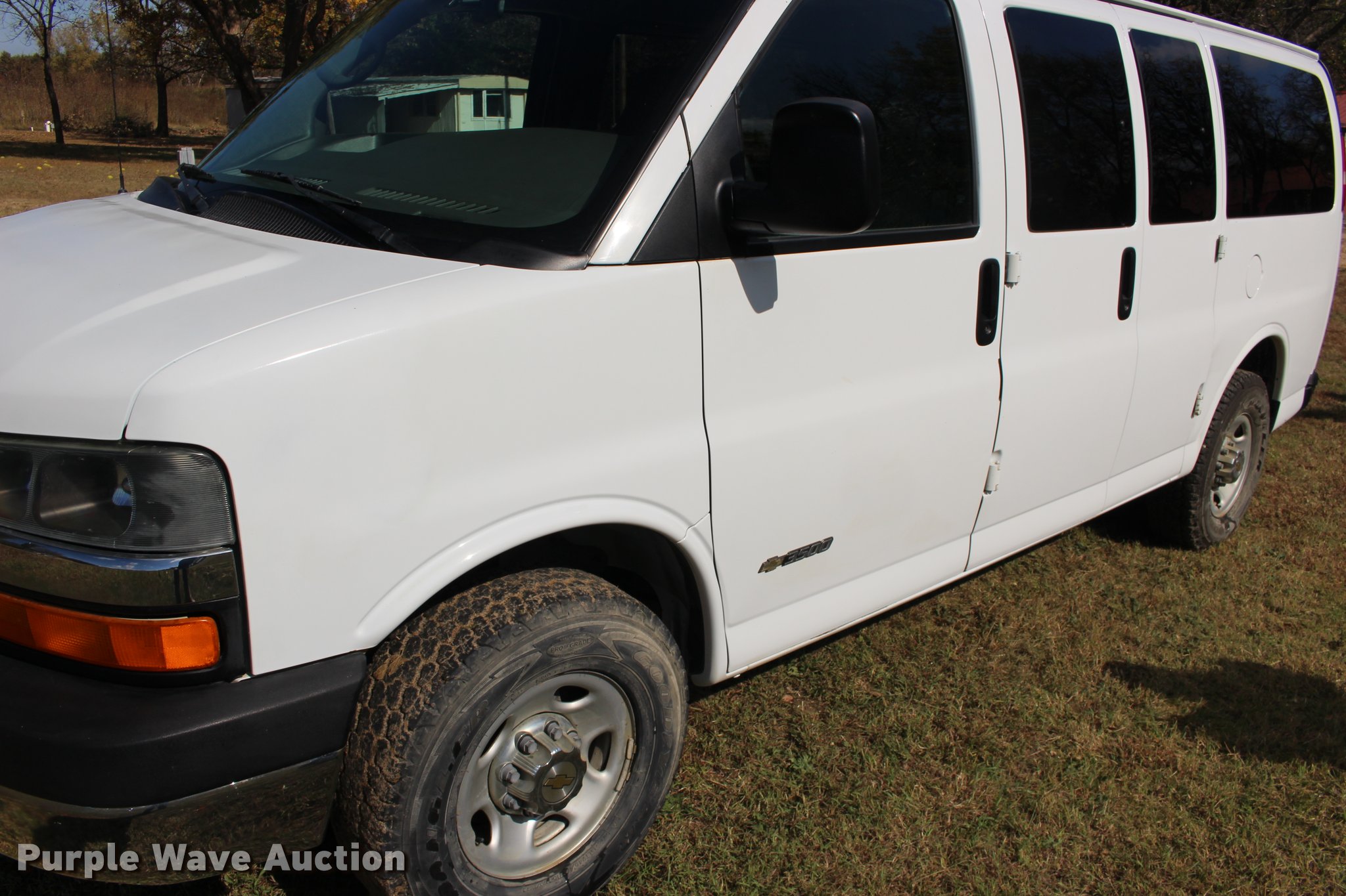Purple Wave is selling a used 3/4 or 1 Ton Pickup or Van in Kansas. This item is a 2005 Chevrolet Express 3500 van with the following: 123,275 miles on odometer, 6.0L V8 OHV 16V gas engine, Automatic transmission, AC and heat, Tilt, Cruise, AM/FM/CD/cassette, Power windows and locks, Rear DVD player, 12 passenger capacity, Receiver hitch, 245/75R16 tires, Hail damage
