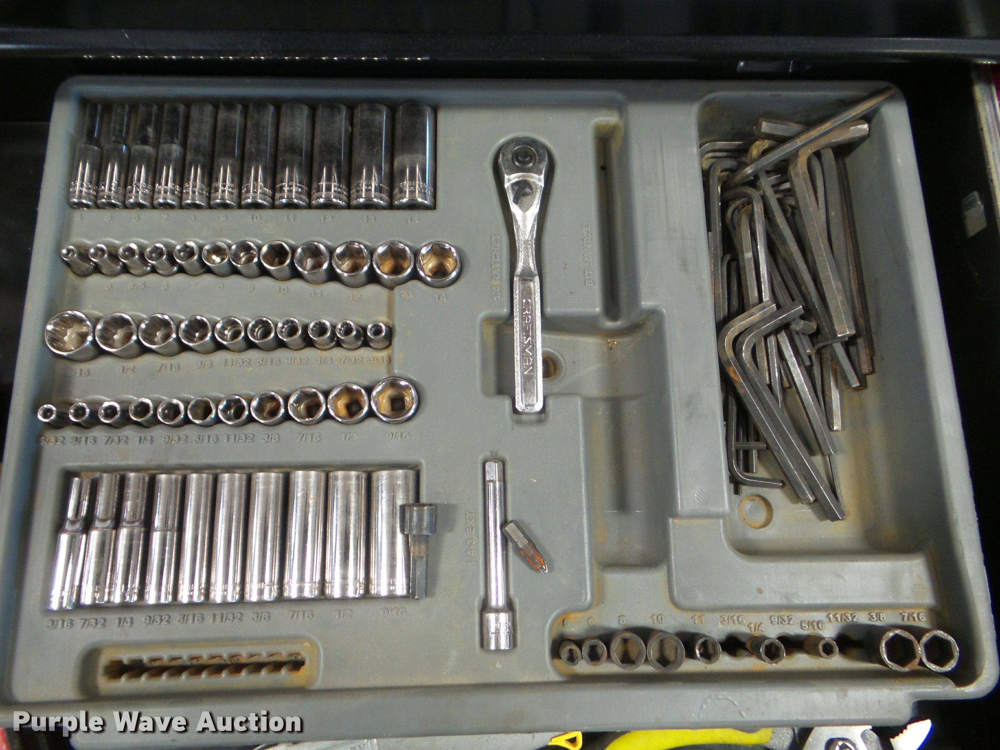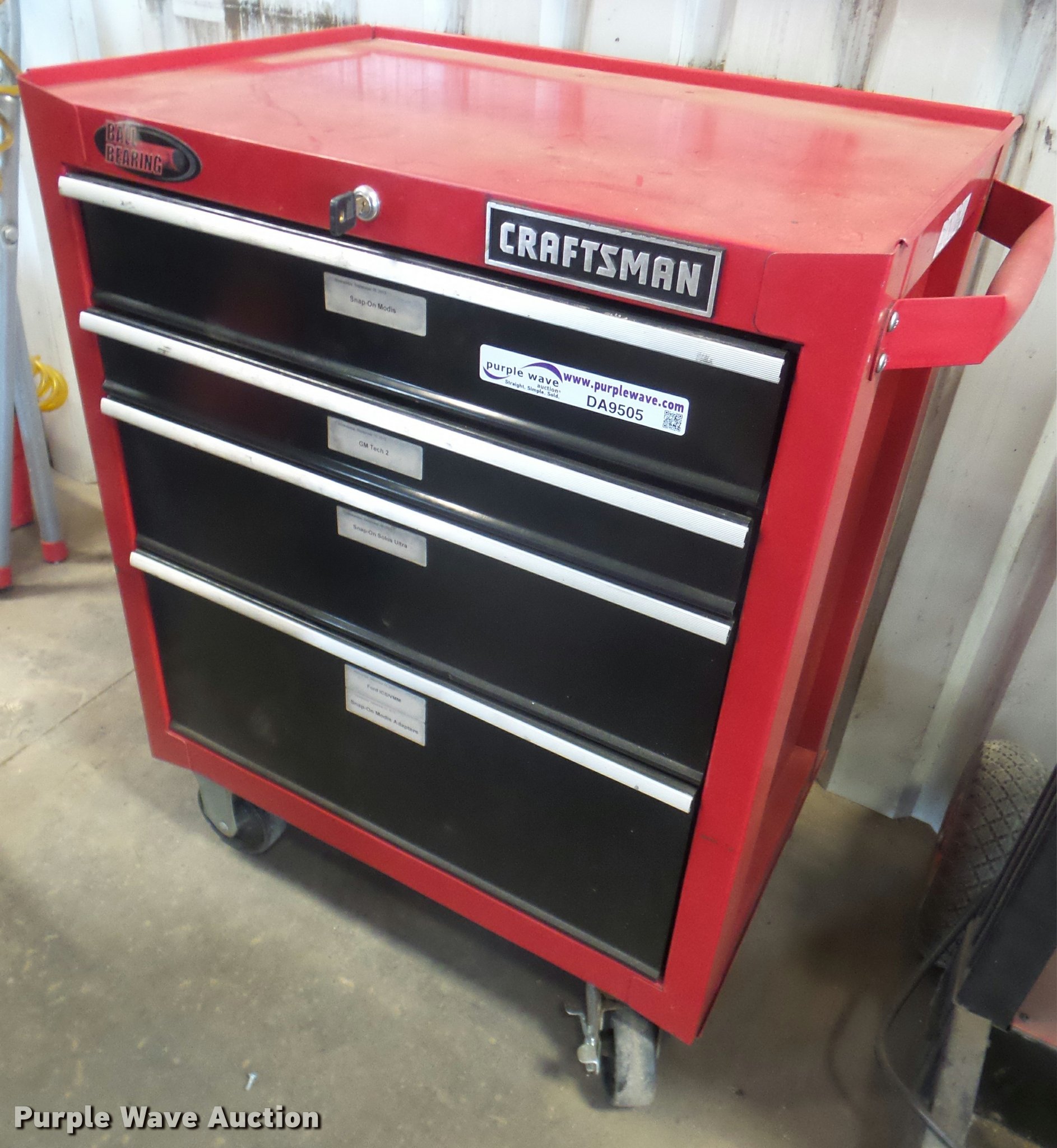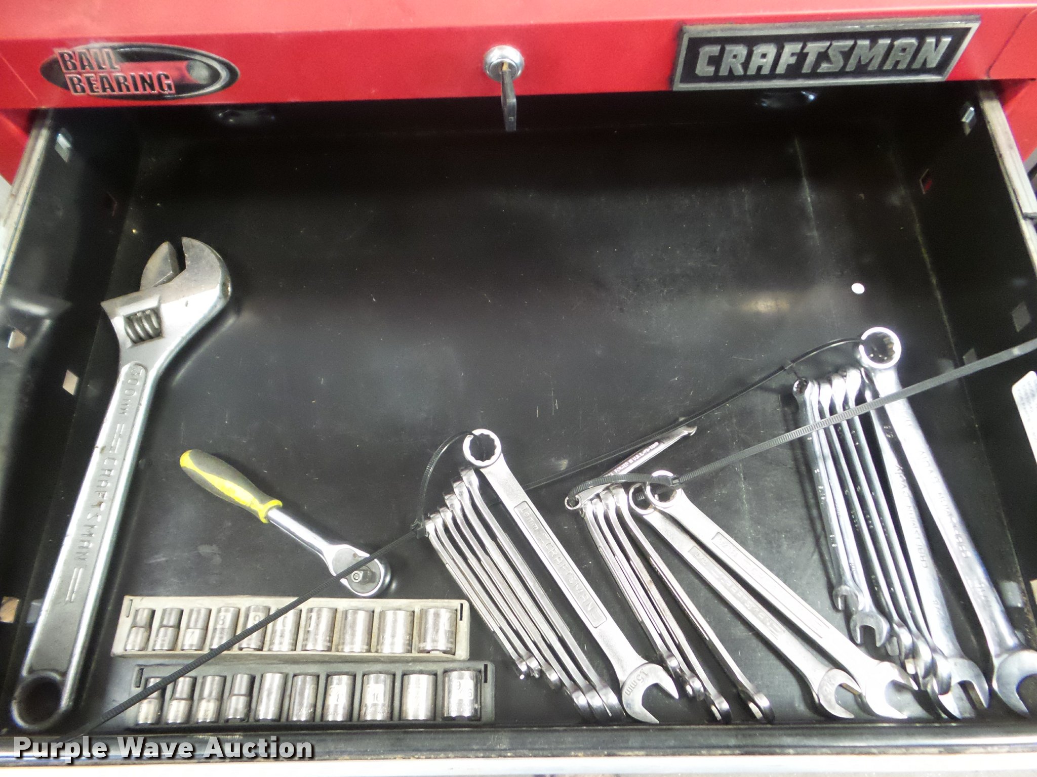 Purple Wave is selling a used Tools in Kansas. This item is a Tools with the following: Craftsman tool chest, Four drawer, Pliers, Sockets, Screw drivers, Wrenches