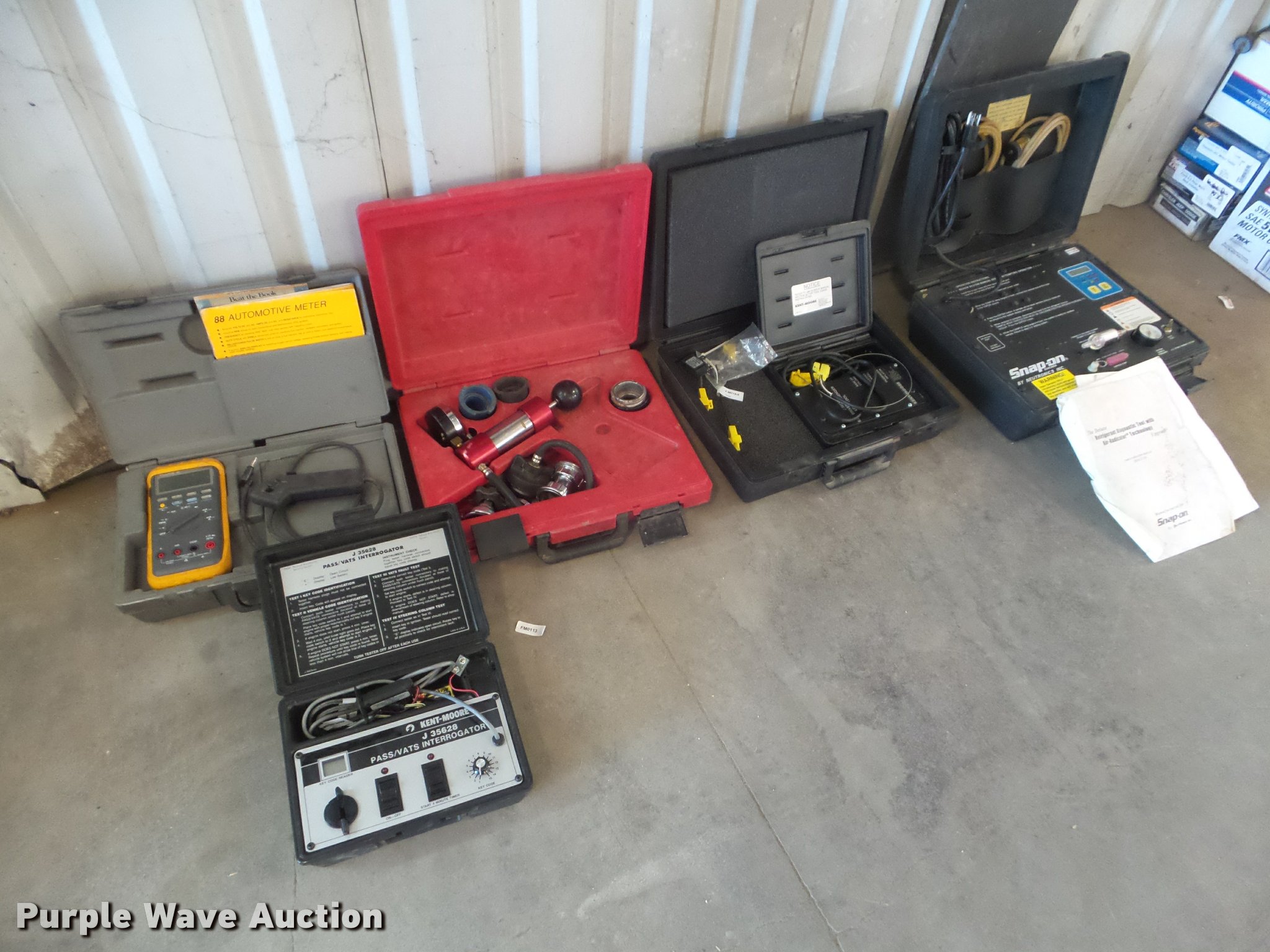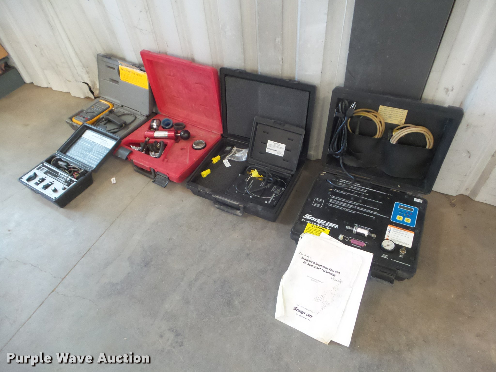 Purple Wave is selling a used Tools in Kansas. This item is a Tools with the following: Automotive meter, Snap-On freon analyzer, Radiator pressure tester, Air bag tester and more