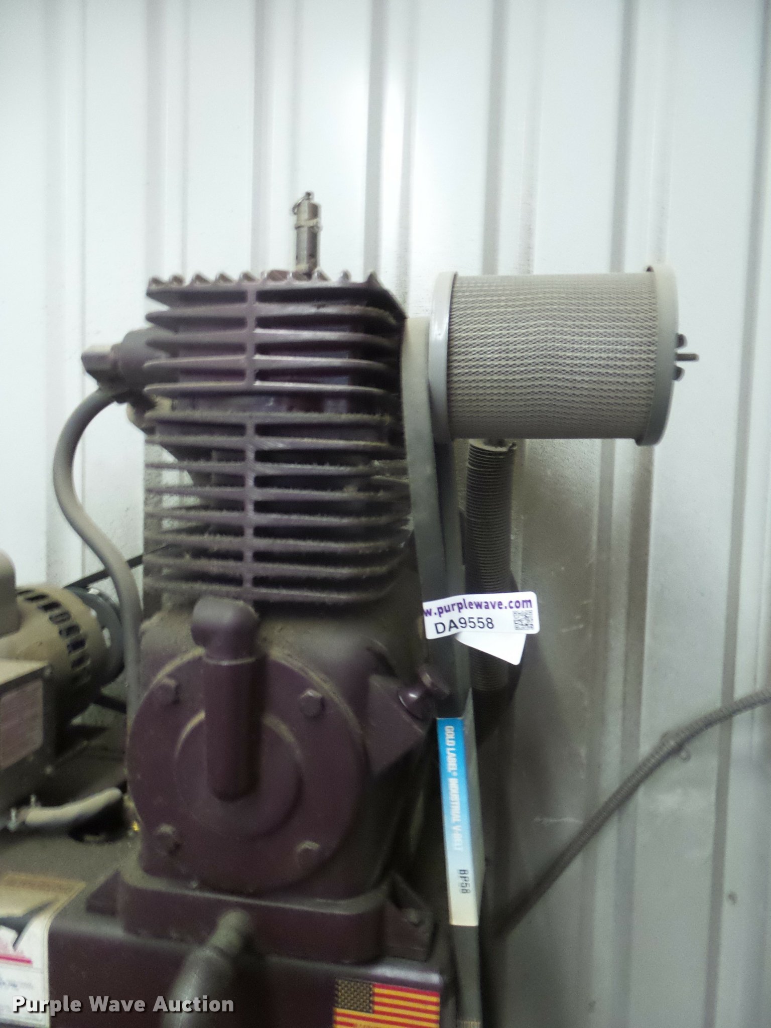 Purple Wave is selling a used Air Compressor in Kansas. This item is a Quincy 241060VC air compressor with the following: 5 HP, Two stage, 240V, Single phase, Cast iron head, 160 psi, 60 gallon tank, Serial 5042605