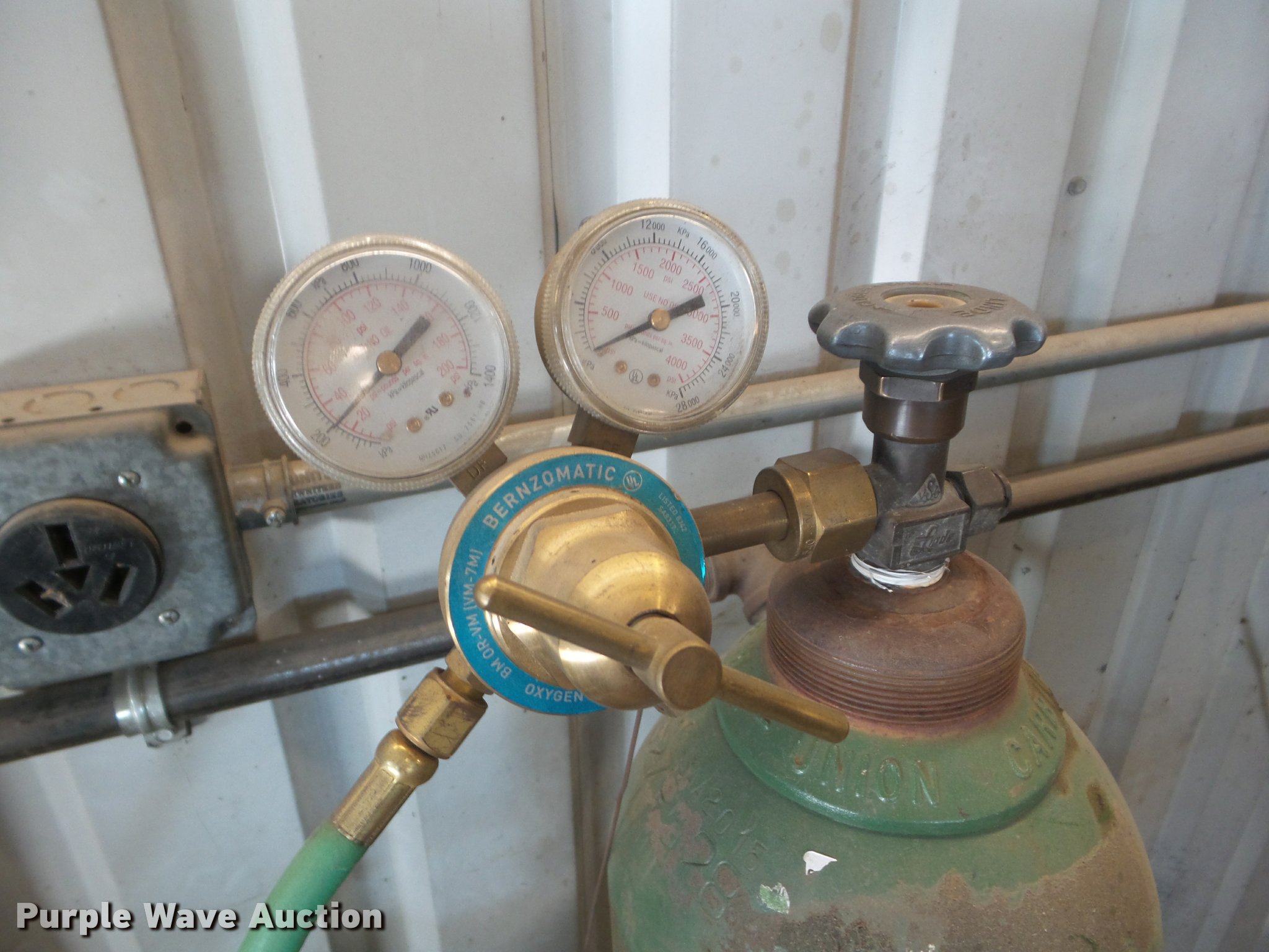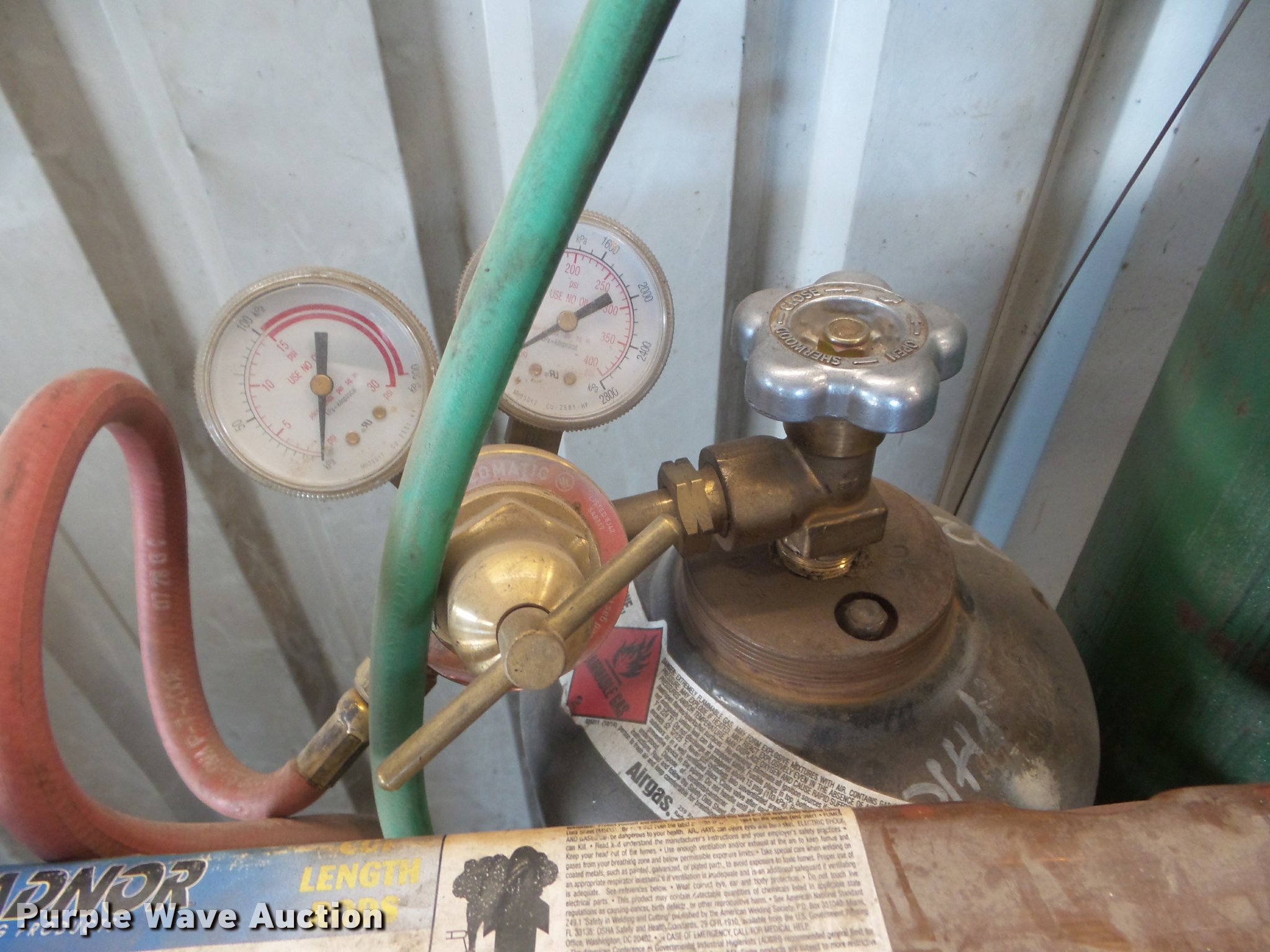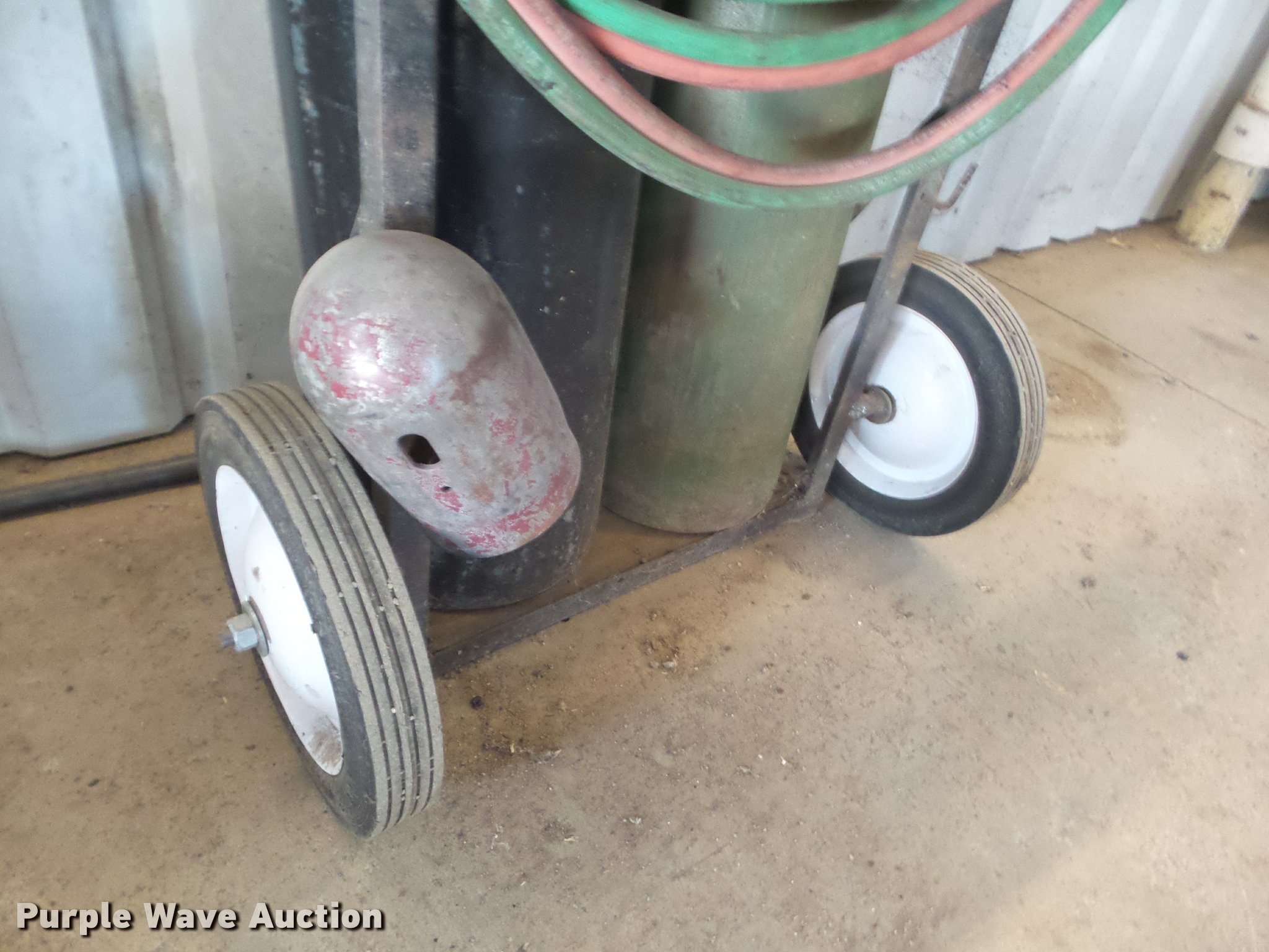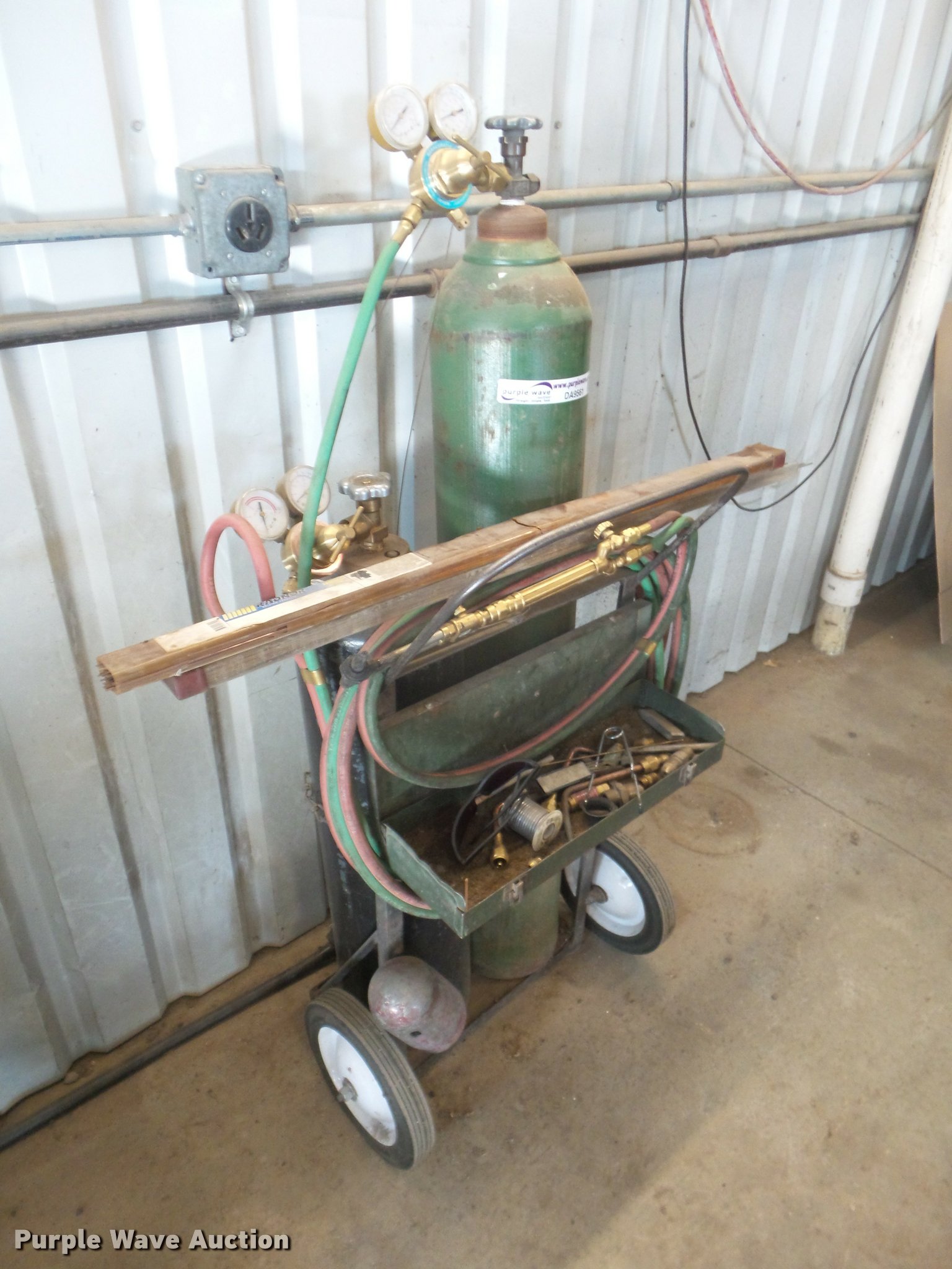 Purple Wave is selling a used Torch in Kansas. This item is a Torch set with the following: Oxygen and acetylene bottles, Cart, Regulators, Torch tips