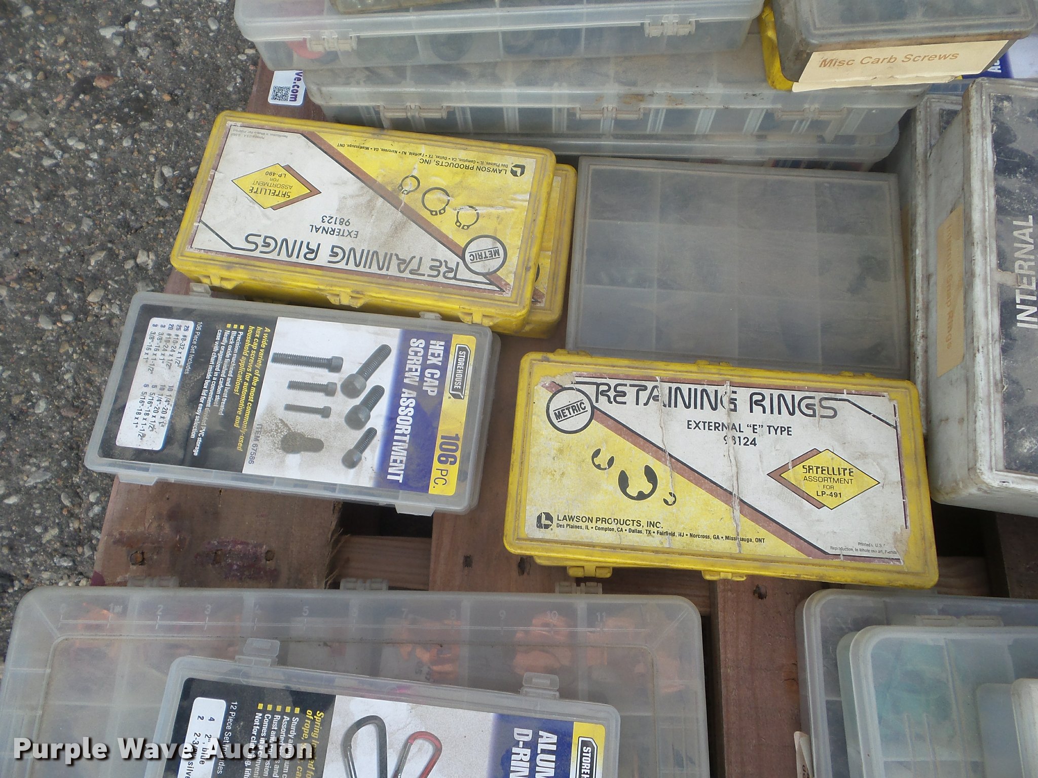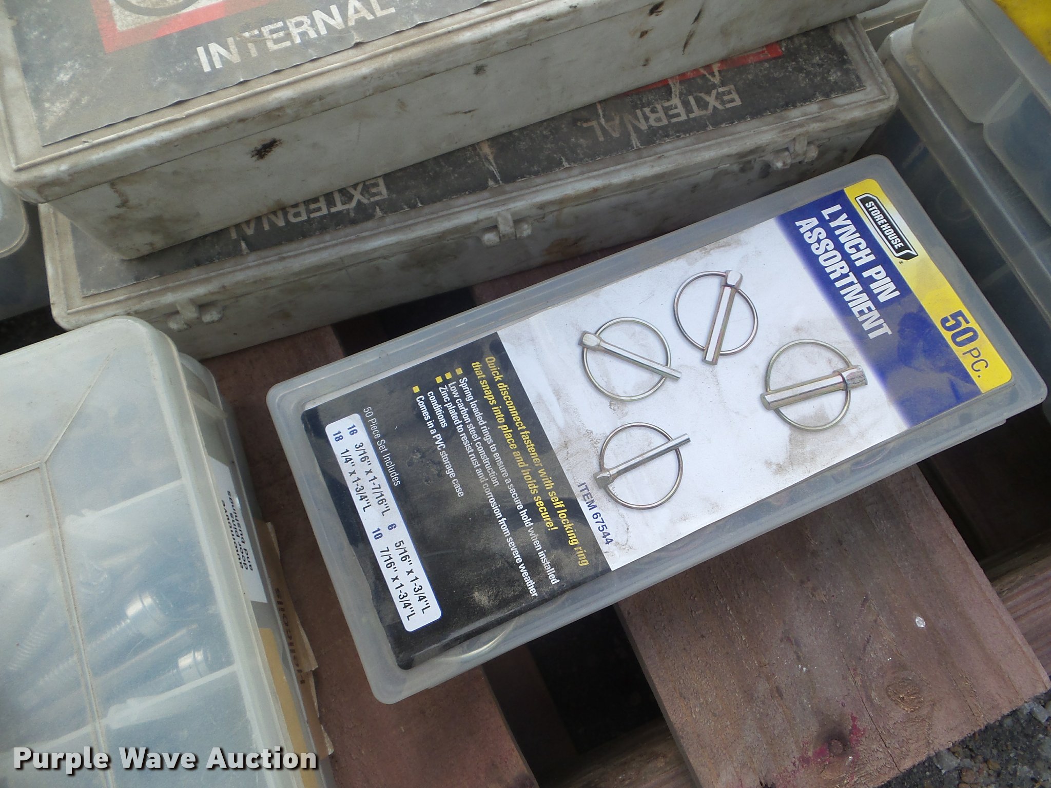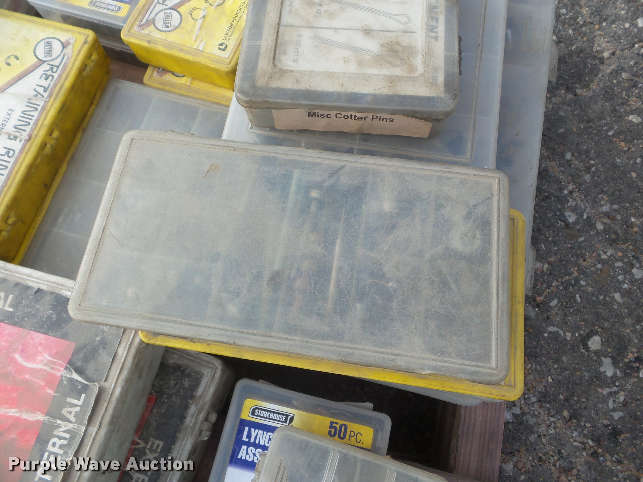Purple Wave is selling a used Tools in Kansas. This item is a Automotive parts with the following: Cotter pins, Hex caps, O-rings, Grease fittings, E clips, Soder slugs, Snap rings, Wire terminals