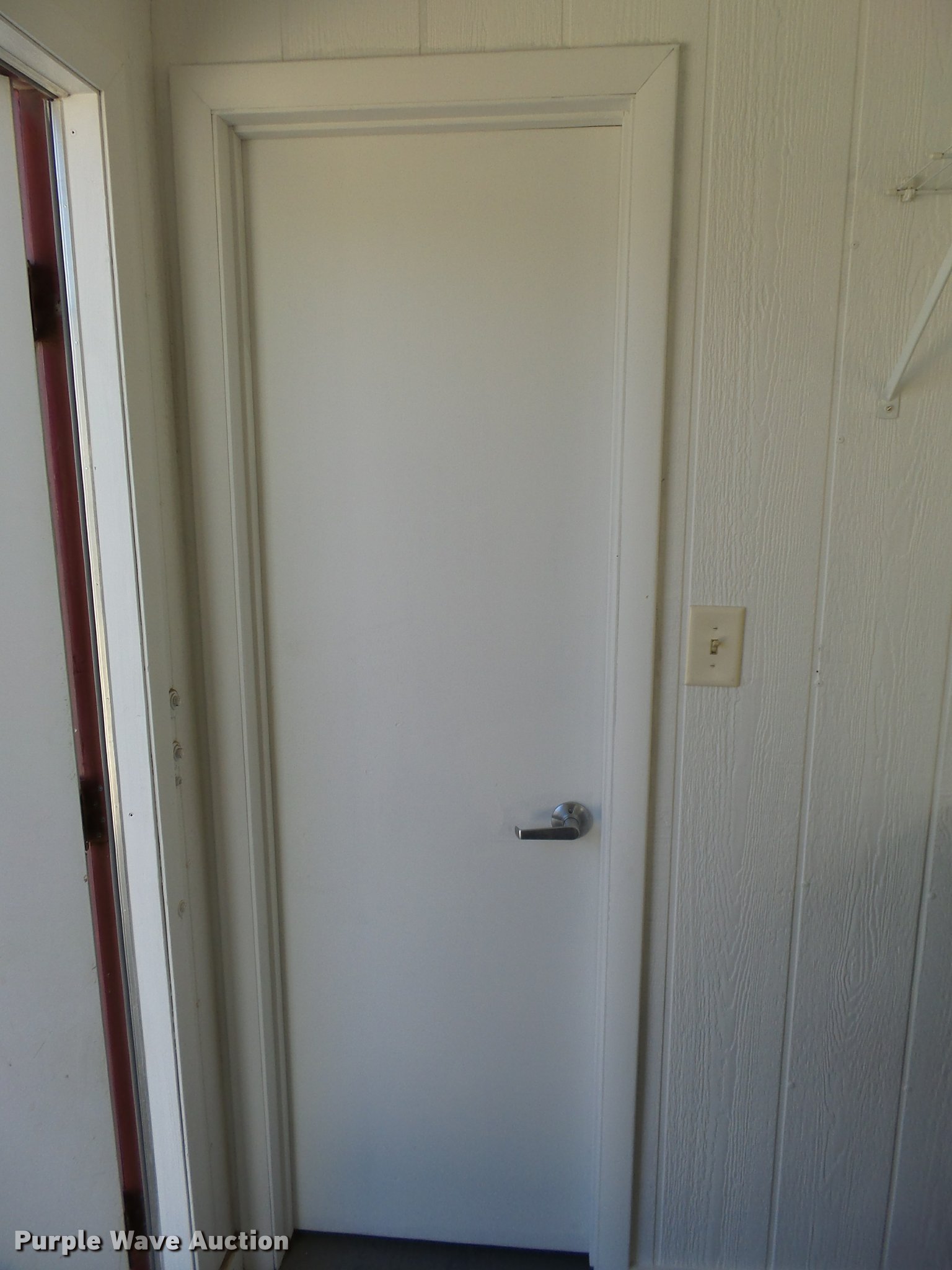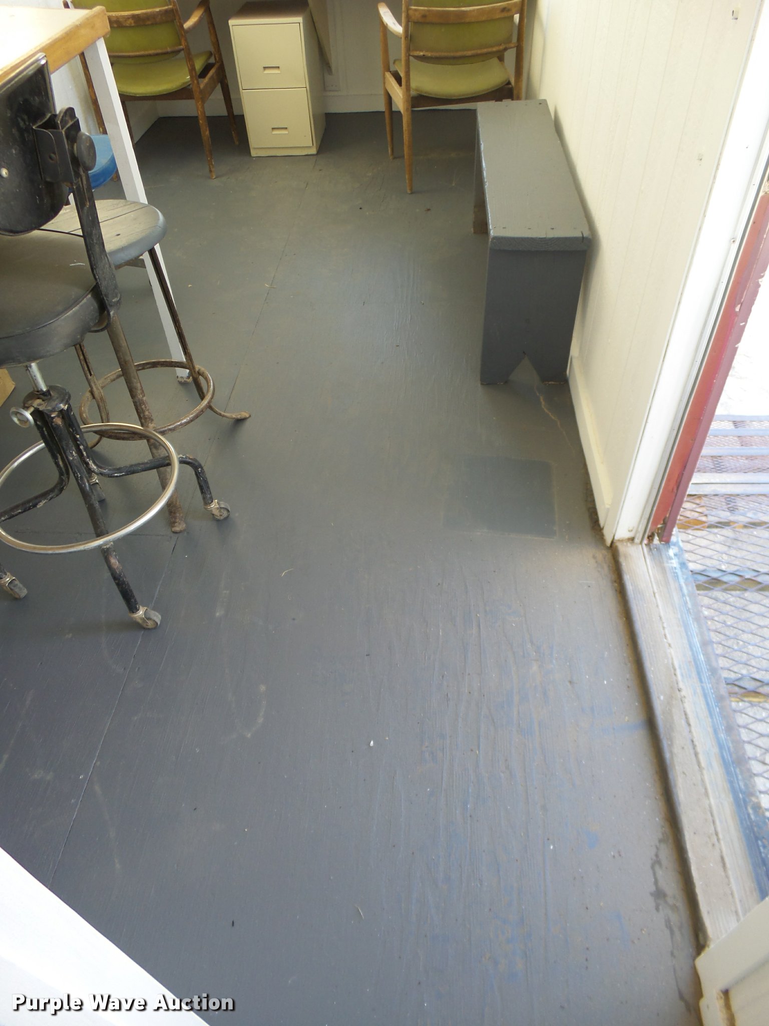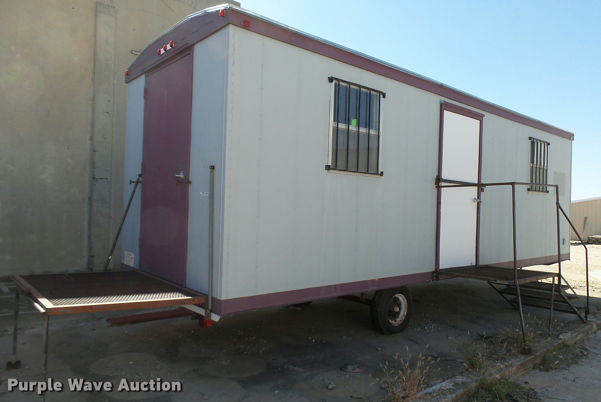 Purple Wave is selling a used Manufactured Home or Office in Kansas. This item is a 1980 Jobsite office trailer with the following: 25'L x 8'W x 8'H, Side and rear entry doors, (2) rooms, Barred windows, Steel steps, Steel rear deck, Wood floor, AC unit with remote, Chairs, Tables, Shelving, Lights, Electrical outlets, Breaker box, Power cord/plug, Ball hitch, Single axle, 7-14.5 tires