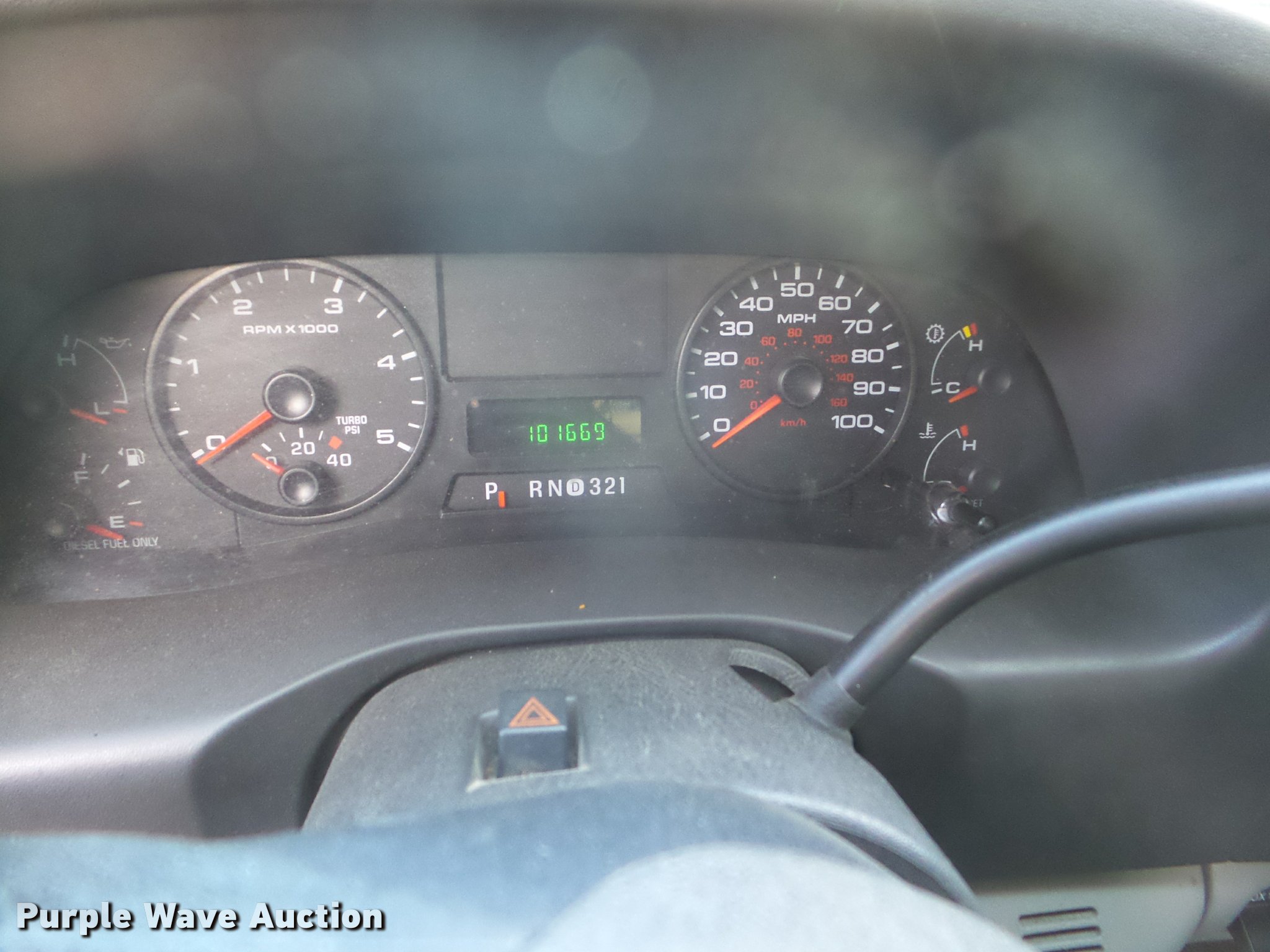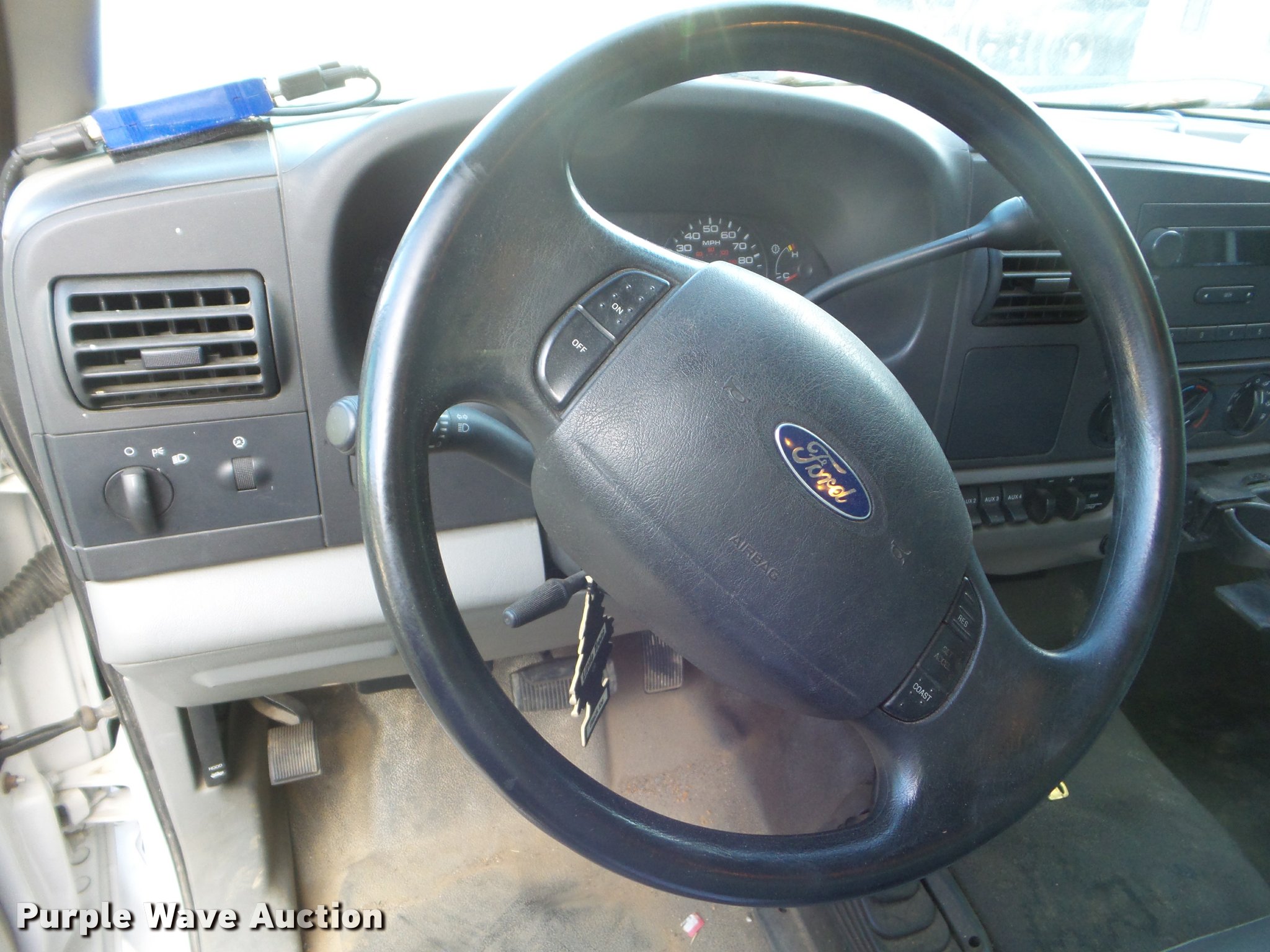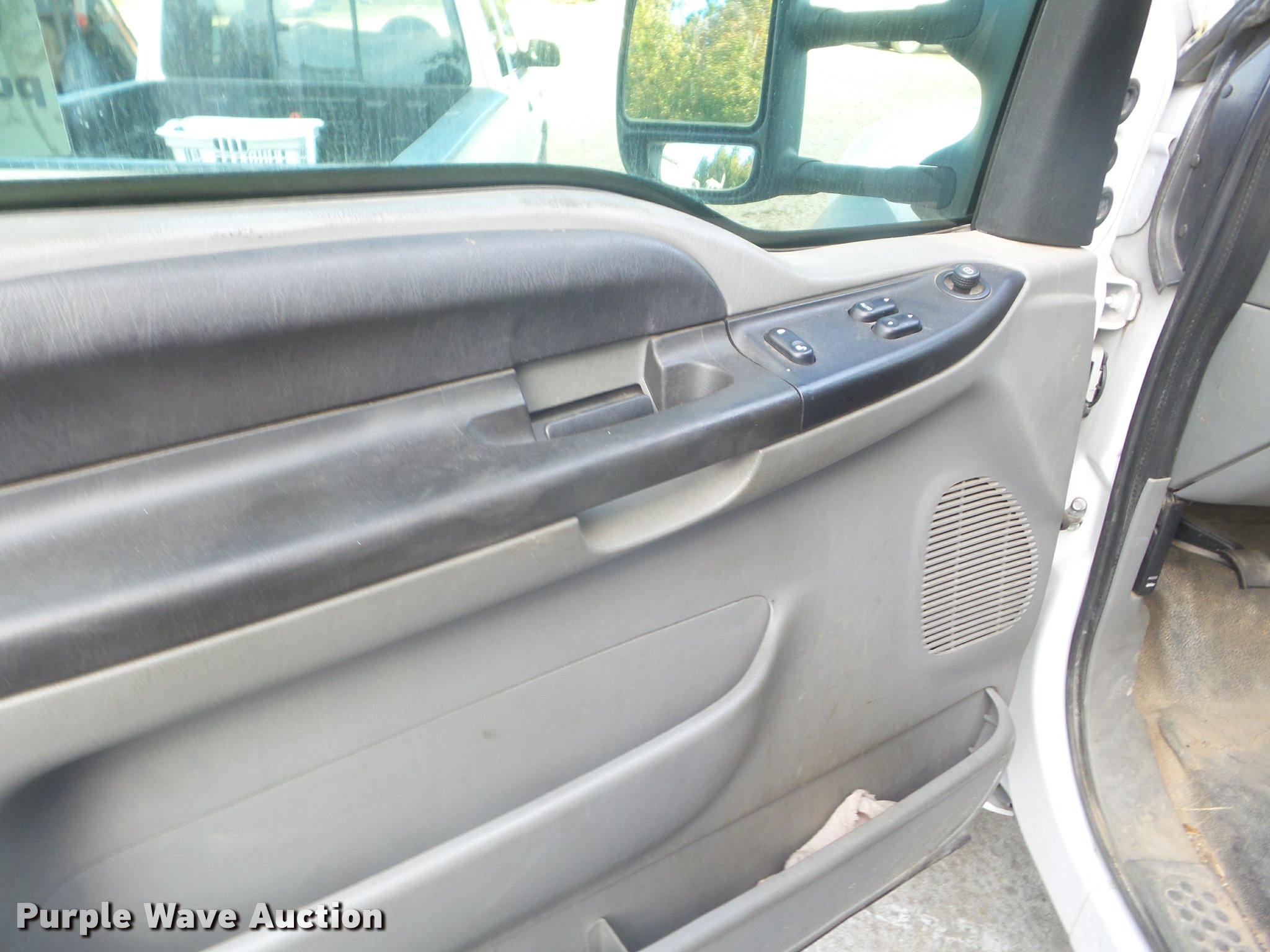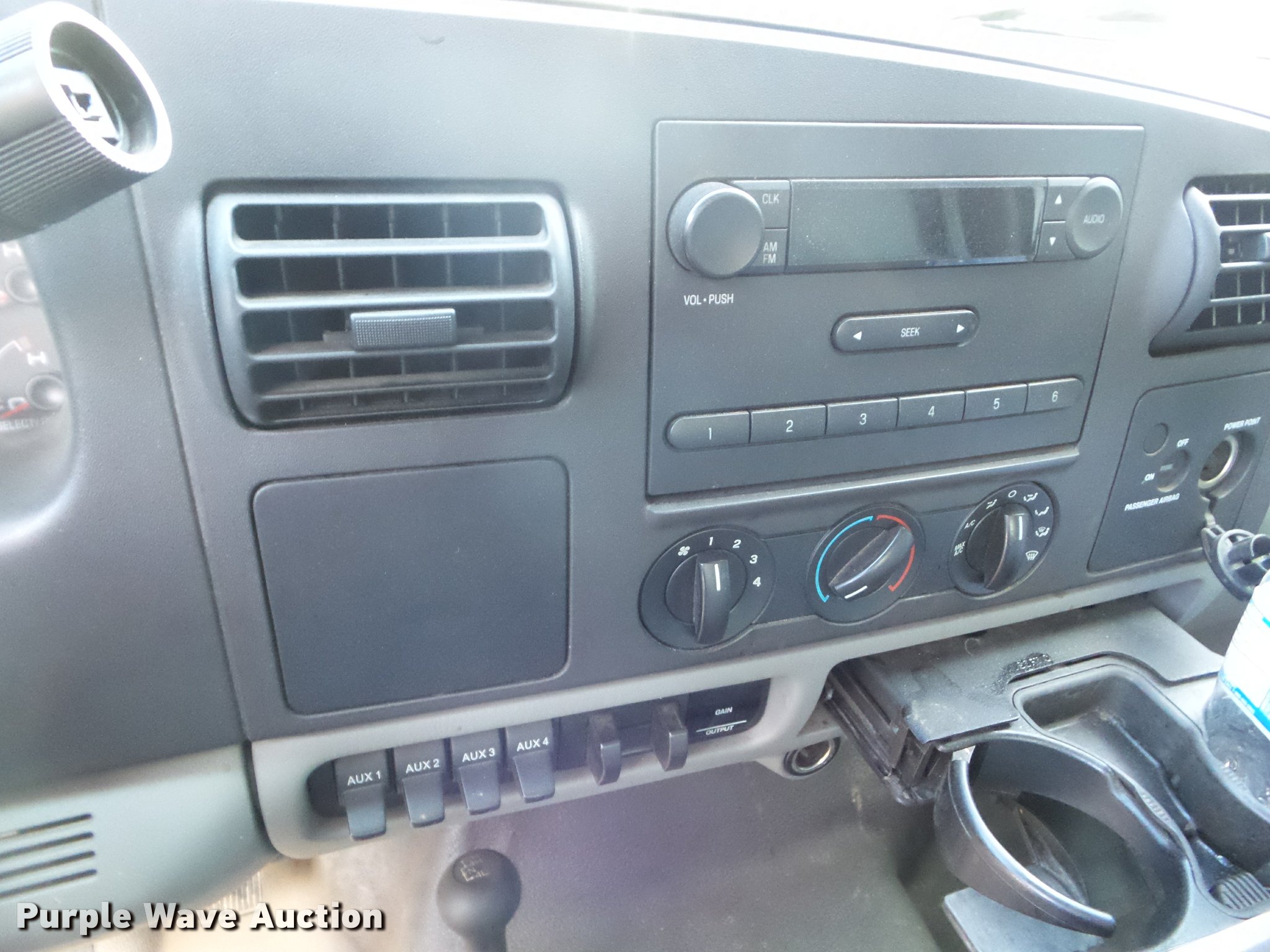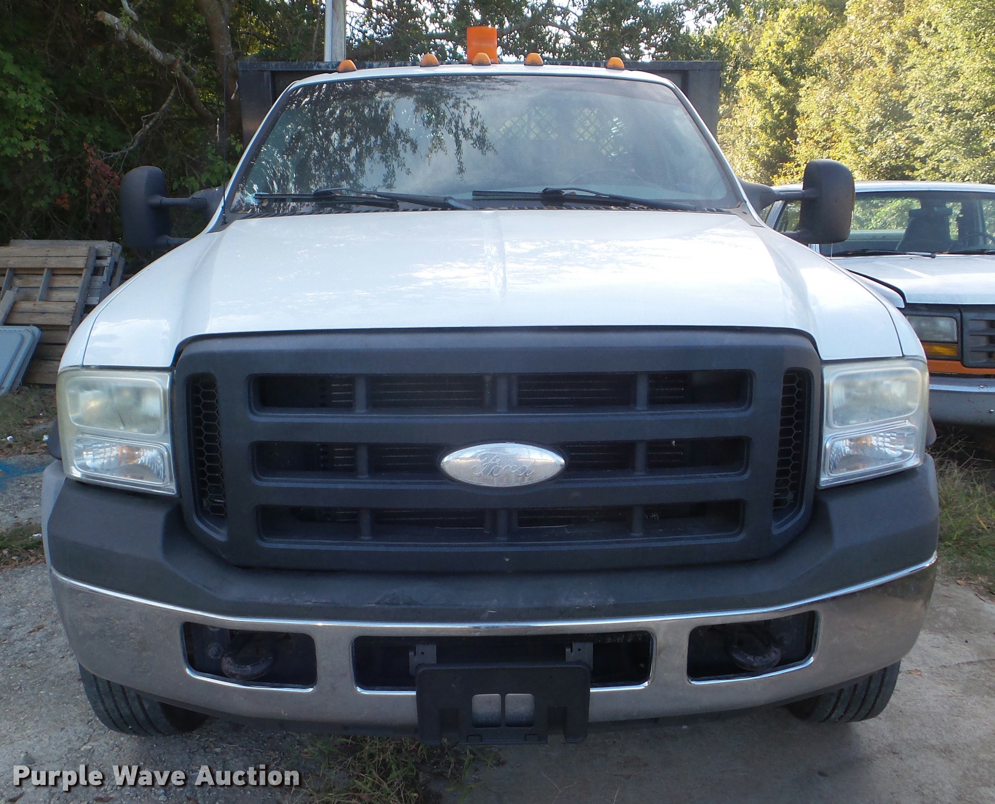 Purple Wave is selling a used Flat Bed Truck in South Carolina. This item is a 2007 Ford F450 Super Duty flatbed truck with the following: 101,669 miles on odometer, 6.0L V8 OHV 32V diesel engine, Automatic transmission, Four wheel drive, AC and heat, Tilt, Cruise, AM/FM, Power windows, locks, and mirrors, Vinyl interior, Front tow hooks, 13'L x 8'W stake side bed, 40" side height, Wood floor, Under mounted toolboxes, Tommy Gate lift end gate, Receiver hitch, 225/70R19.5 tires, Head gasket needs to be replaced, EIN 950596