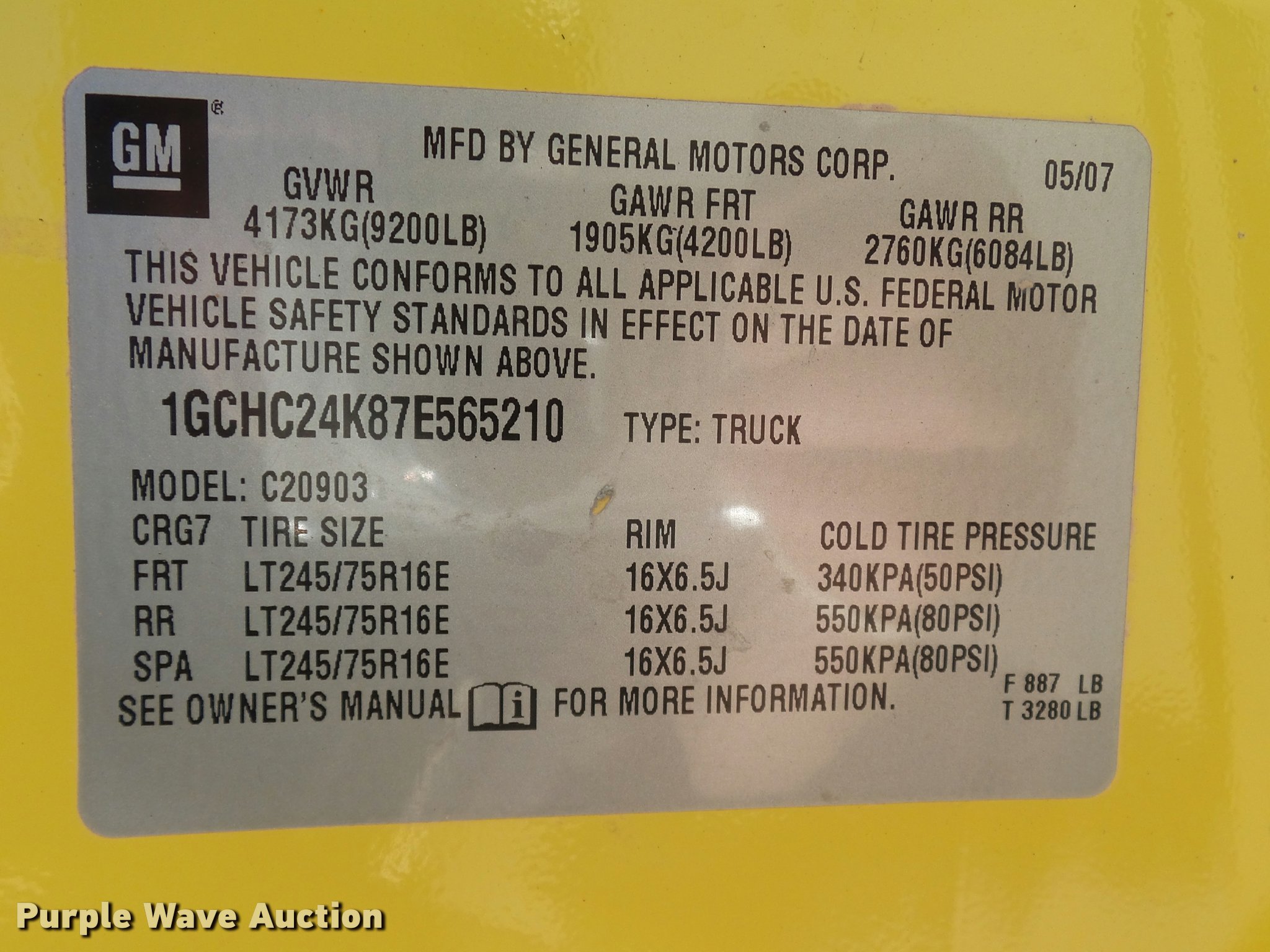Purple Wave is selling a used 3/4 or 1 Ton Pickup or Van in Oklahoma. This item is a 2007 Chevrolet Silverado 2500HD pickup truck with the following: 136,475 miles on odometer, 6.0L V8 OHV 16V gas engine, Automatic transmission, AC and heat, Tilt, Cruise, AM/FM/CD, Manual windows and locks, Vinyl interior, Front tow hooks, Long bed, Receiver hitch, Trailer wiring, LT245/75R16 tires, Cracked windshield, Check engine light on, Service air bag light on, Unit# 103980