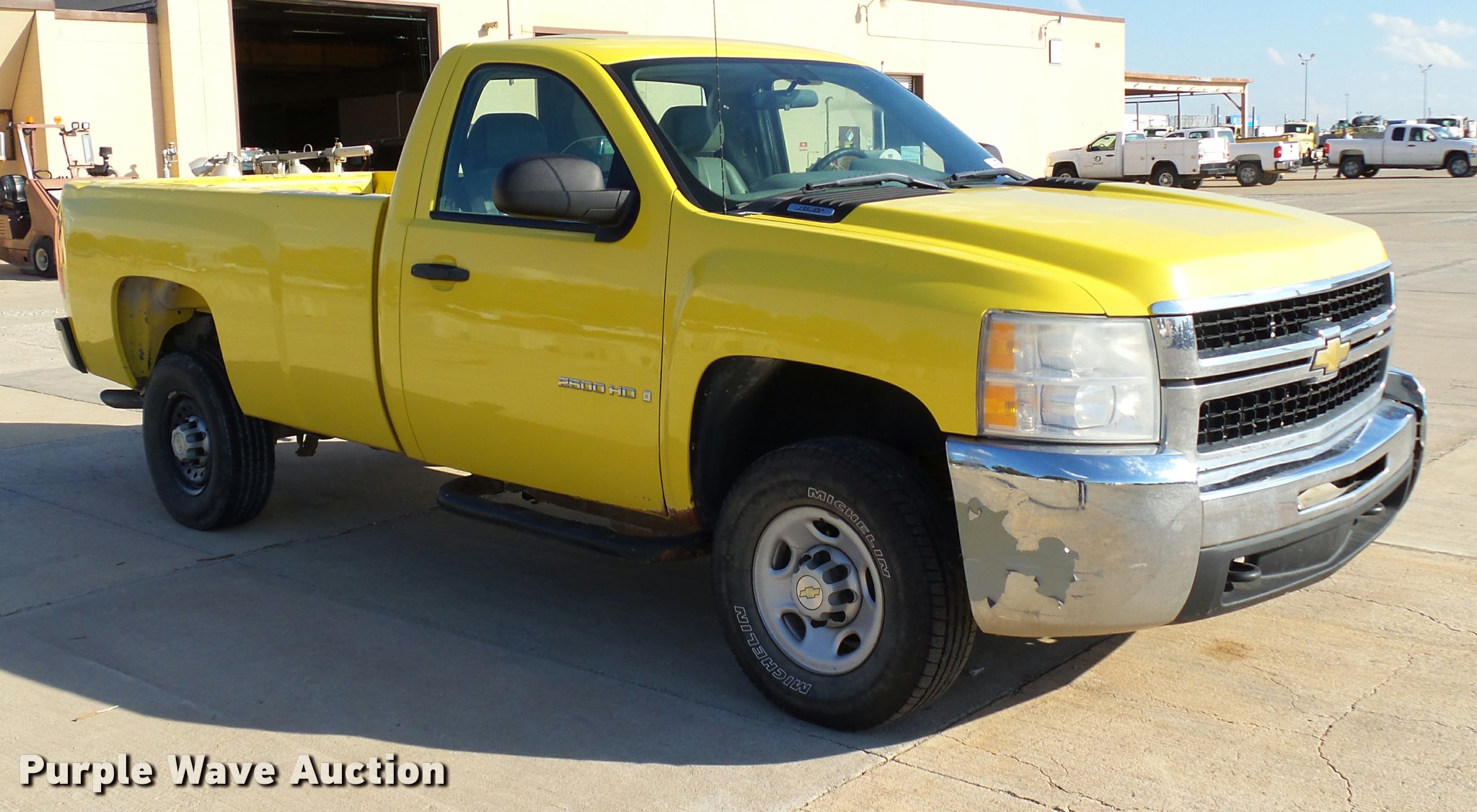 Purple Wave is selling a used 3/4 or 1 Ton Pickup or Van in Oklahoma. This item is a 2009 Chevrolet Silverado 2500HD pickup truck with the following: 124,546 miles on odometer, 6.0L V8 OHV 16V gas engine, Automatic transmission, AC and heat, Tilt, Cruise, AM/FM/CD, Manual windows and locks, Vinyl interior, Brake controller, LT245/75R16 tires, Hail damage, Cracked windshield, Driver's door damage, Check engine light on, Service air bag light on, Various knobs missing, Unit# 103014