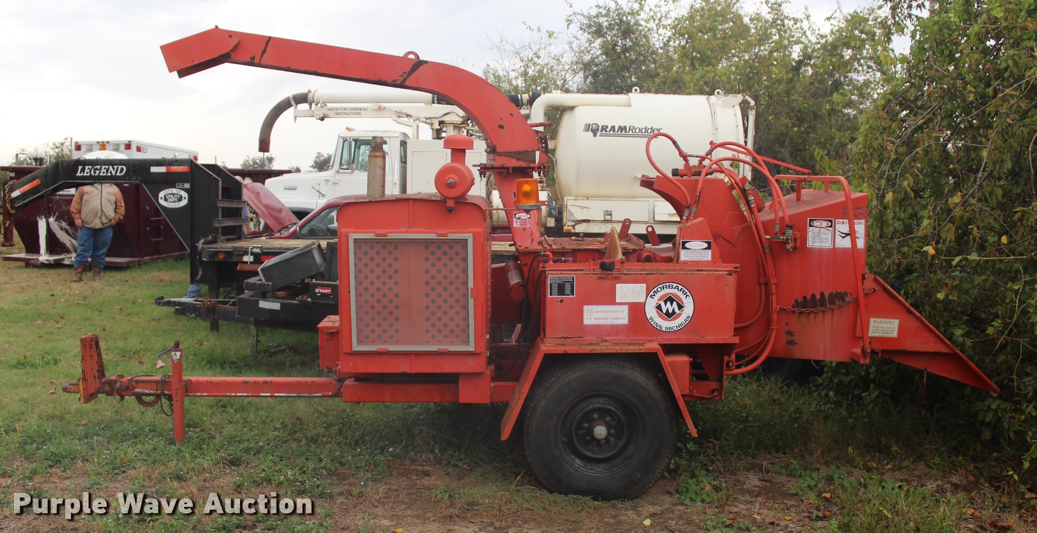 Purple Wave is selling a used Wood Chipper or Stump Grinder in Oklahoma. This item is a Morbark 13 wood chipper with the following: Four cylinder diesel engine, Twin disc cutting system, Model SP111HP3, Serial 1E2890, 13" diameter capacity, Pin hitch, LT235/85R16 tires