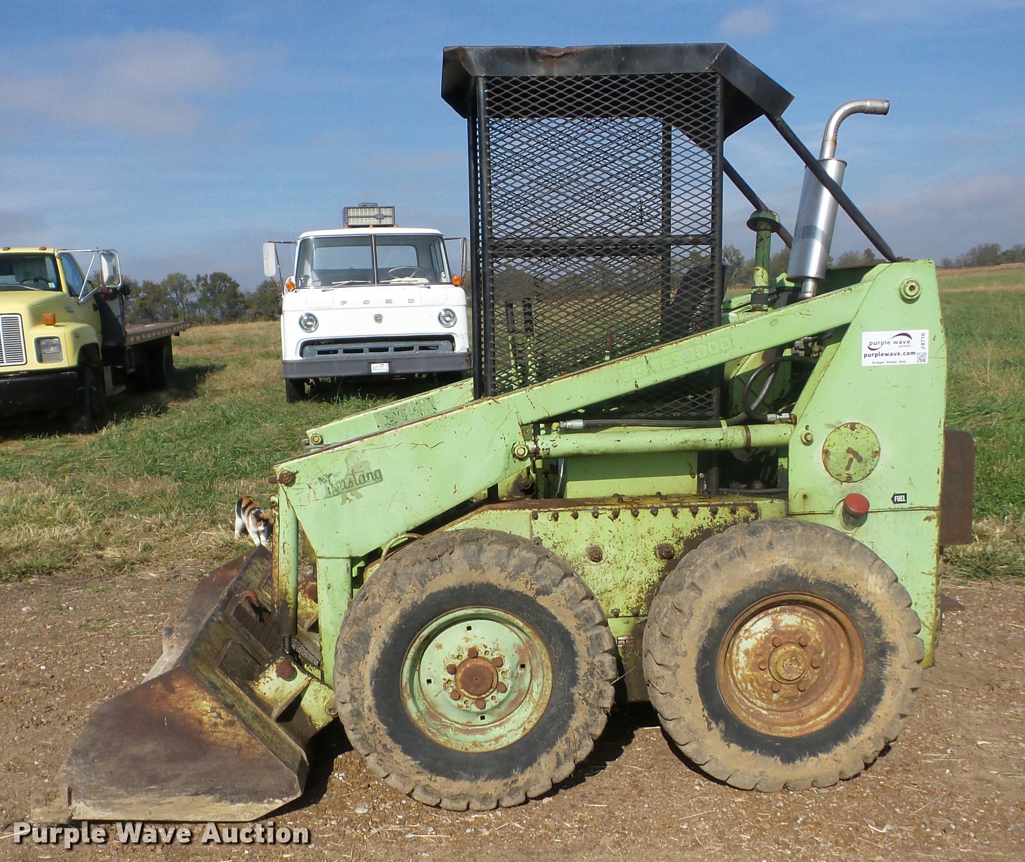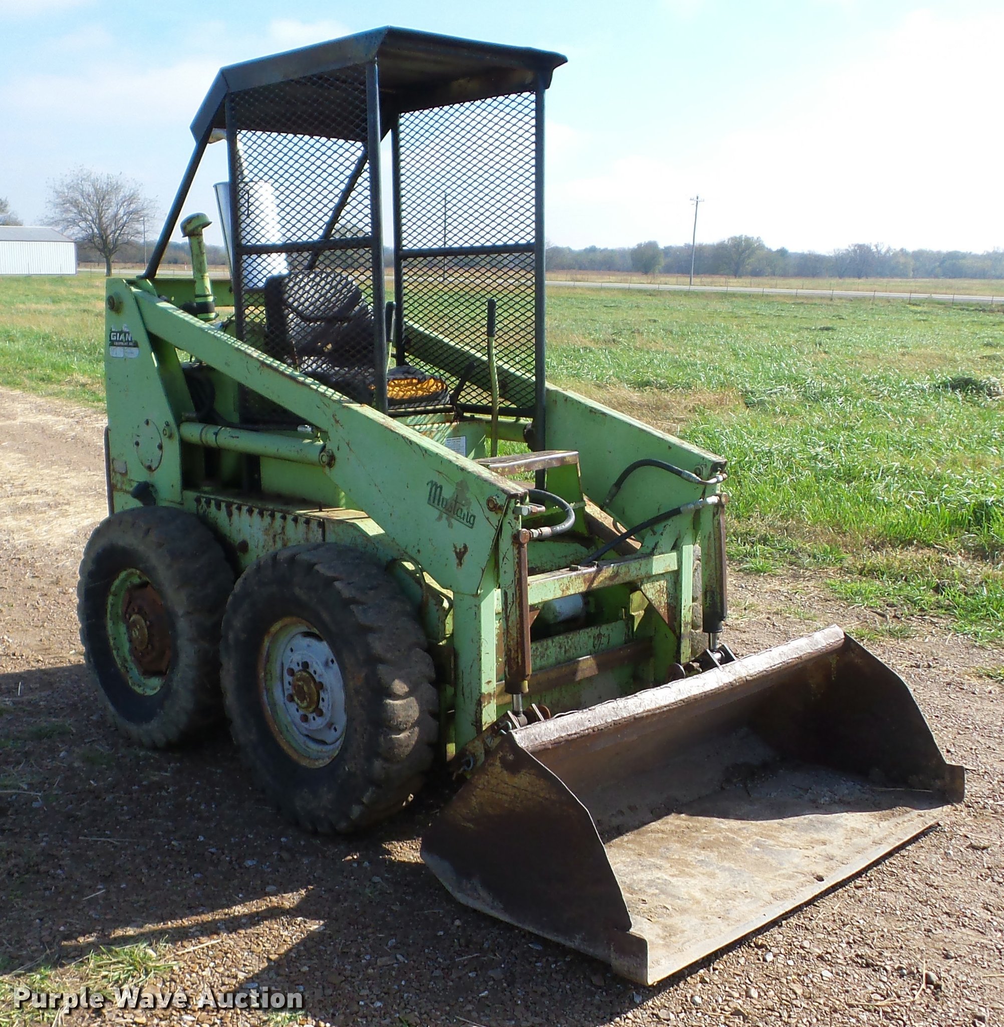 Purple Wave is selling a used Skid Steer Loader in Kansas. This item is a Mustang 1000 skid steer with the following: 1,600 hours on meter, Wisconsin four cylinder gas engine, Hydrostatic transmission, Variable speed drive, OROPS, Auxiliary hydraulics, 48"W low profile bucket, Solid tires, Serial 7748