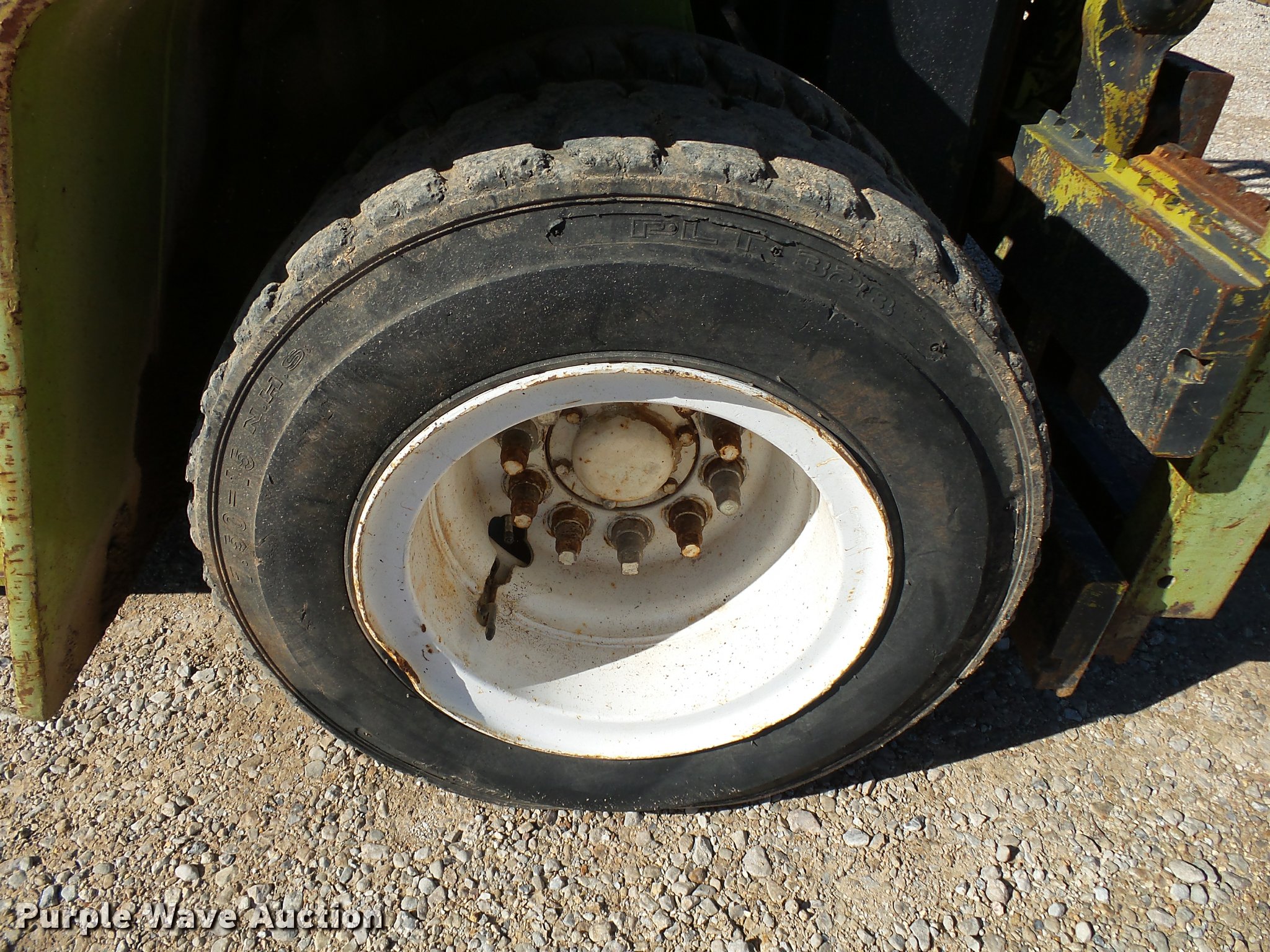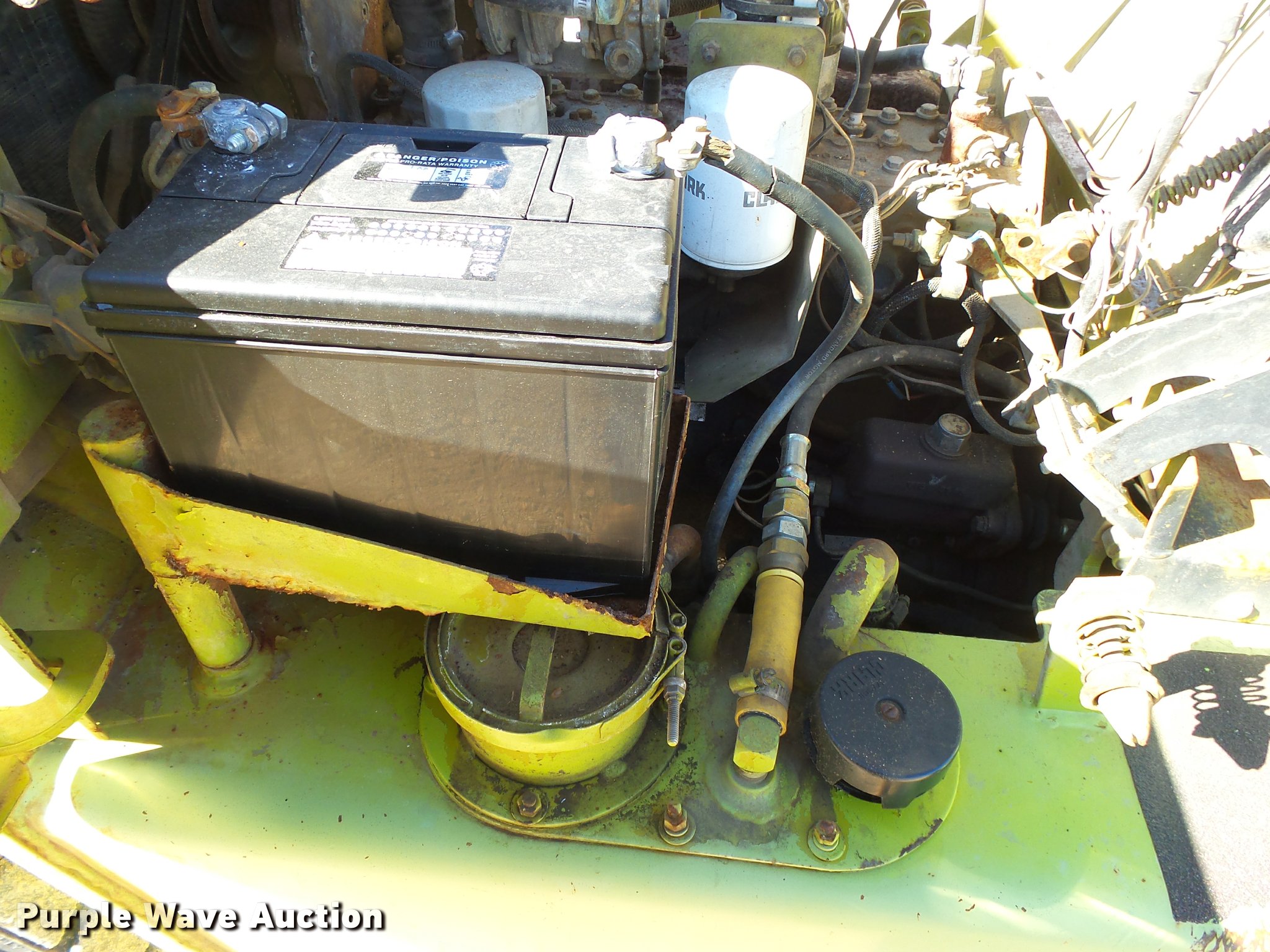 Purple Wave is selling a used Strt. Mast Rough Terr. Forklift in Missouri. This item is a Clark 682 forklift with the following: 7,335 hours on meter, Clark six cylinder propane engine, Shuttle shift transmission, 2F-2R gears, Canopy, 14' max lift height, Three stage mast, Side shift, Mast tilt, 60" fork length, Propane bottle included, 7.5-15 dual front tires, 7.00-12 rear tires, Non-operational brakes