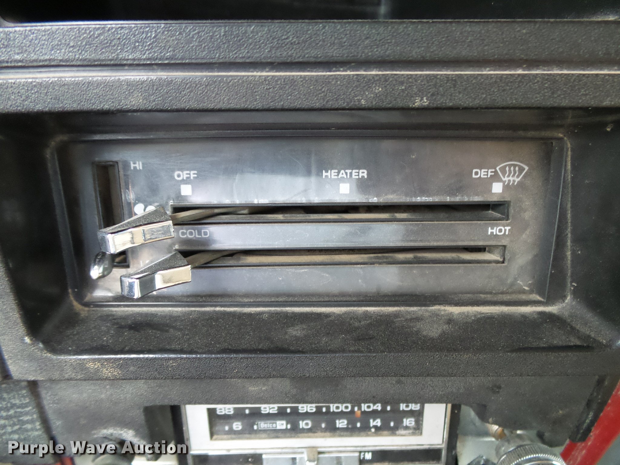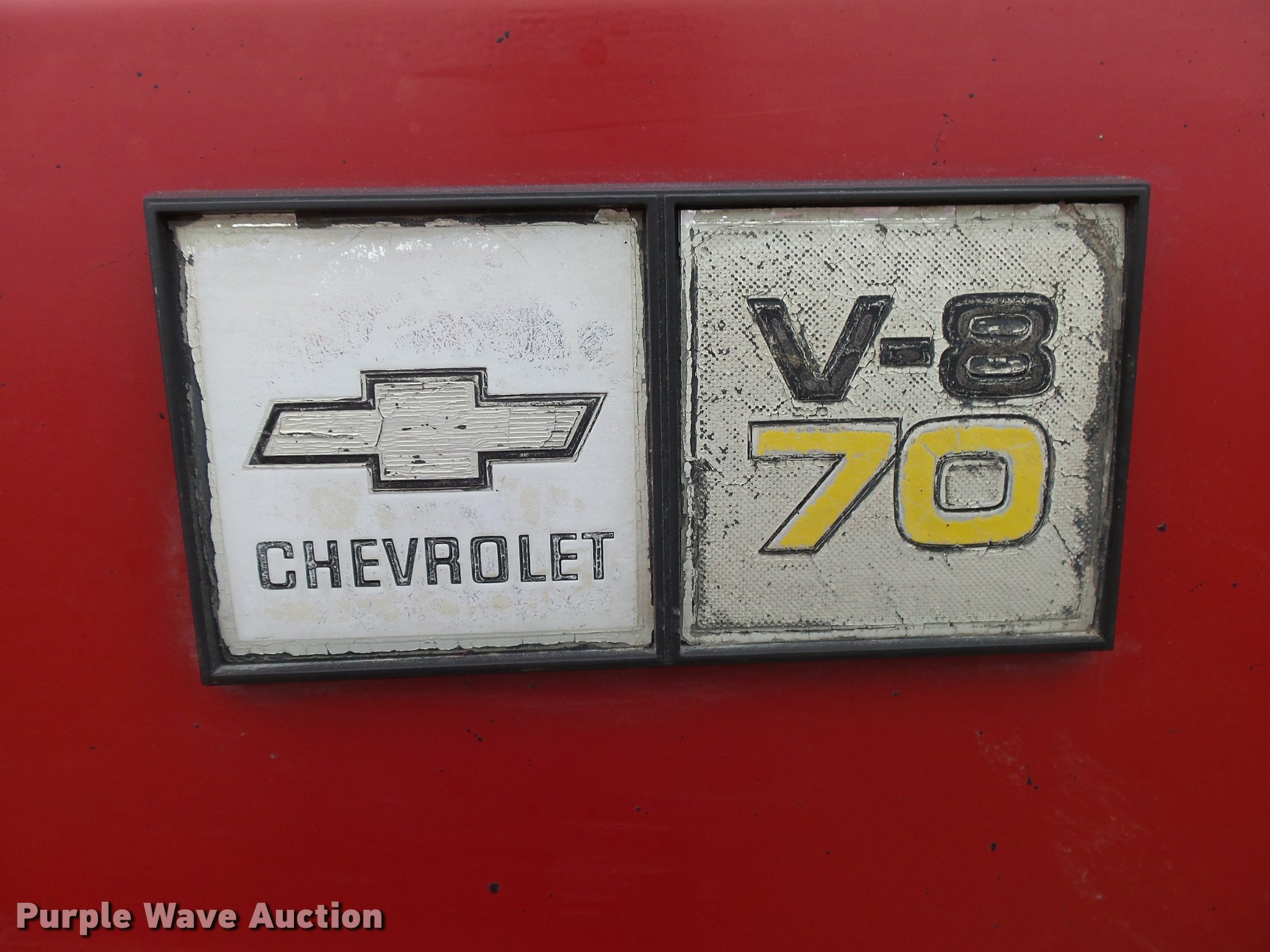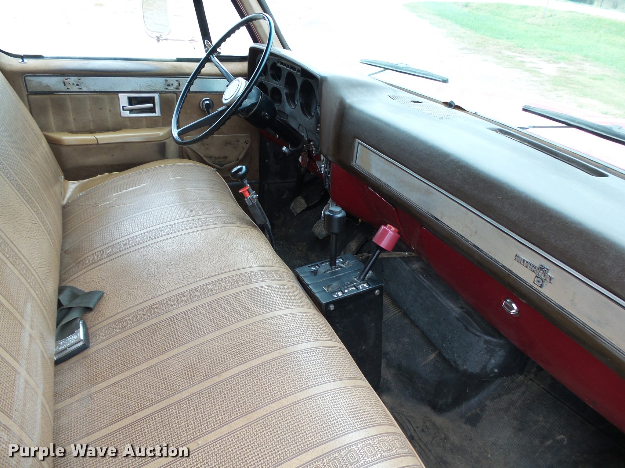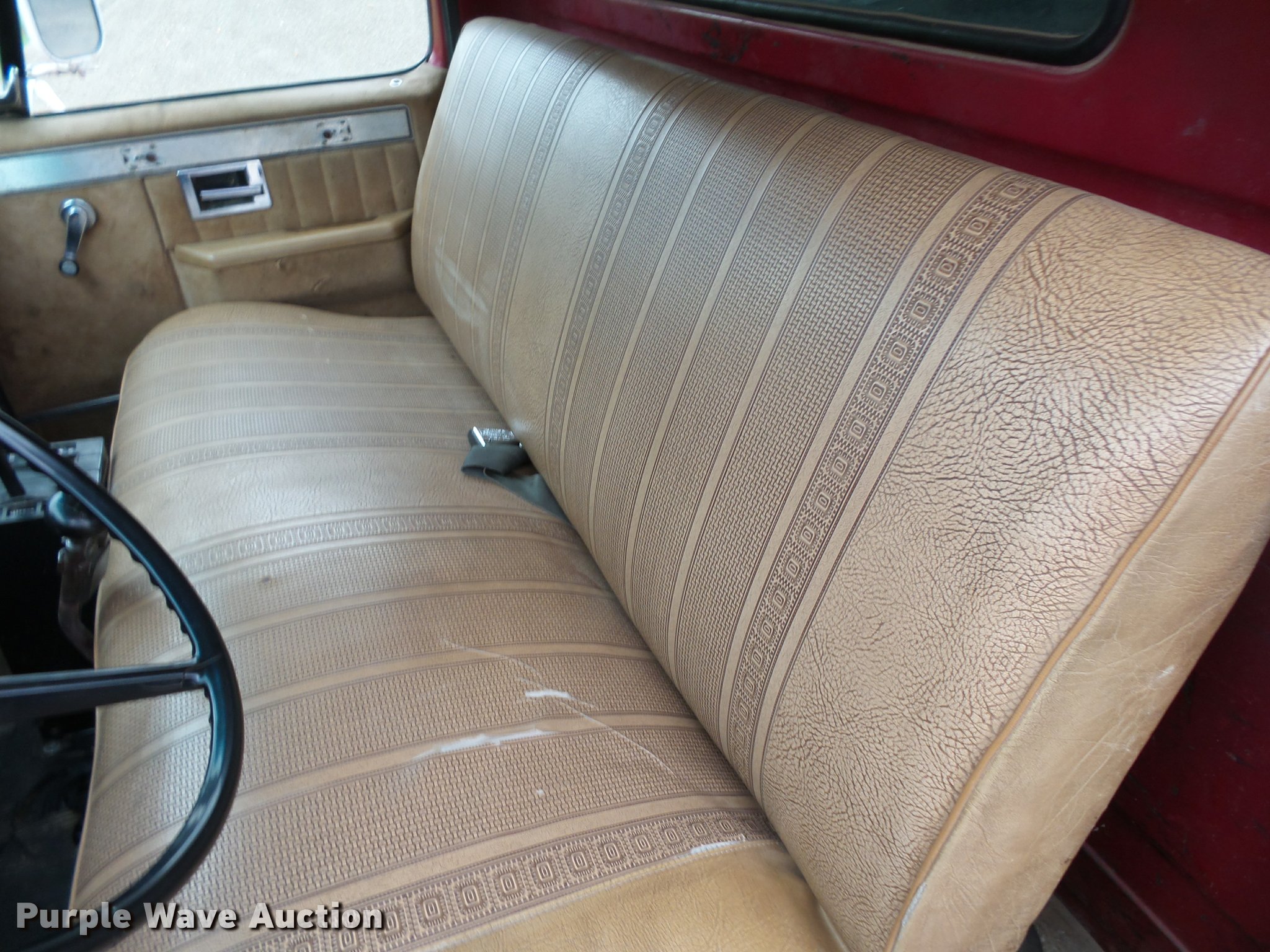 Purple Wave is selling a used Construction Dump Truck in Missouri. This item is a 1982 Chevrolet C70 dump truck with the following: 86,983 miles on odometer, Eight cylinder gas engine, Model 366, Eight speed manual transmission, Single axle, Heat, AM/FM, PTO, 10'L x 96"W steel dump bed, 26" side height, 12" side board height, Manual rollover tarp, Single ram hoist, Single fuel tank, Pintle hitch, Spring suspension, Hydraulic brakes, 10R22.5 tires, GVWR 24,500 lbs, Interior stains, Unit# 5