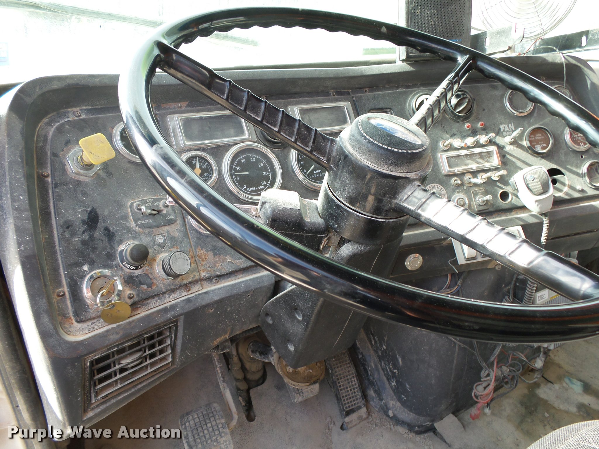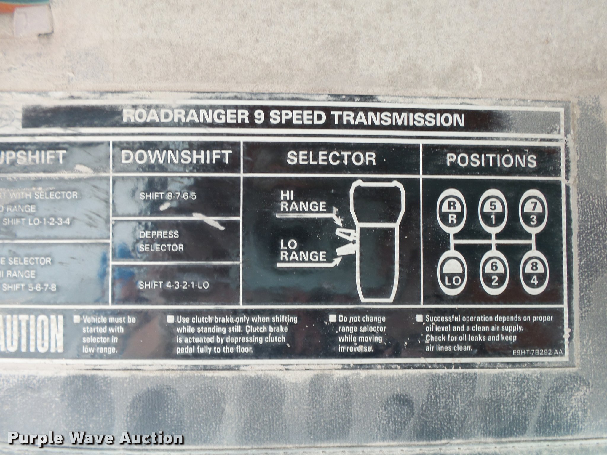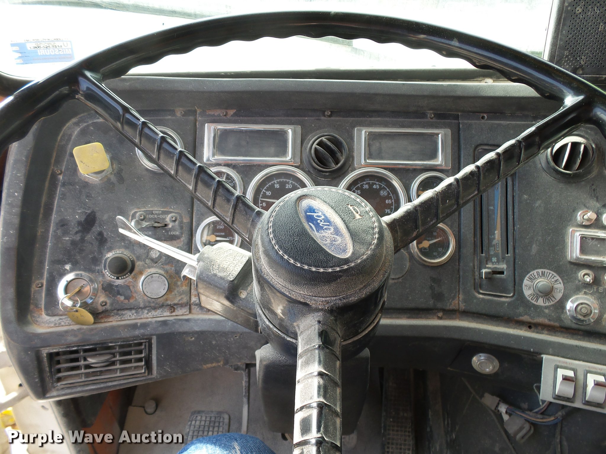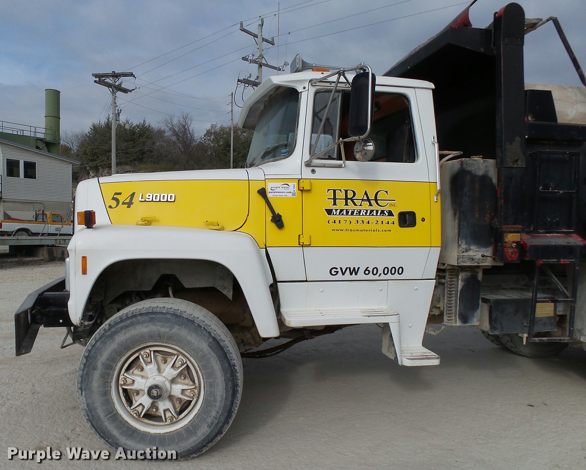 Purple Wave is selling a used Construction Dump Truck in Missouri. This item is a 1995 Ford L9000 dump truck with the following: 148,668 miles on odometer, 1,648 hours on meter, Cummins M11 six cylinder turbo diesel engine, 280 HP, Eaton Fuller Hi-Ranger nine speed manual transmission, Tandem axle, Inter-axle differential lock, Heat, AM/FM, Suspension seat, Front mounted PTO, Gallion 502F-2 steel dump bed, 13'L x 96"W, 39" side height, 12" side board height, Air operated end gate, Single ram hoist, Single fuel tank, Spring suspension, Air brakes, 385/65R22.5 front tires, 11R22.5 rear tires, FAWR 13,180 lbs, RAWR 40,000 lbs, Radio not included, Unit# 54