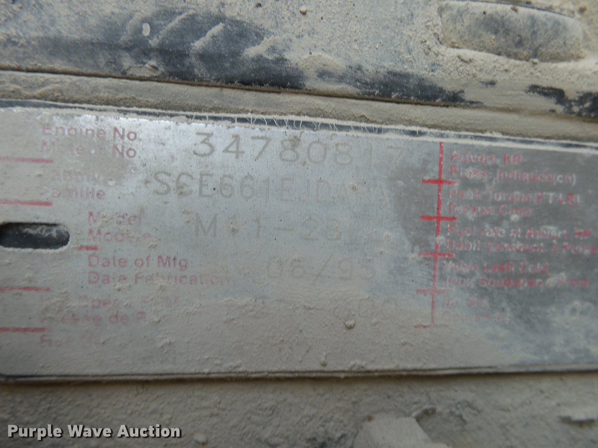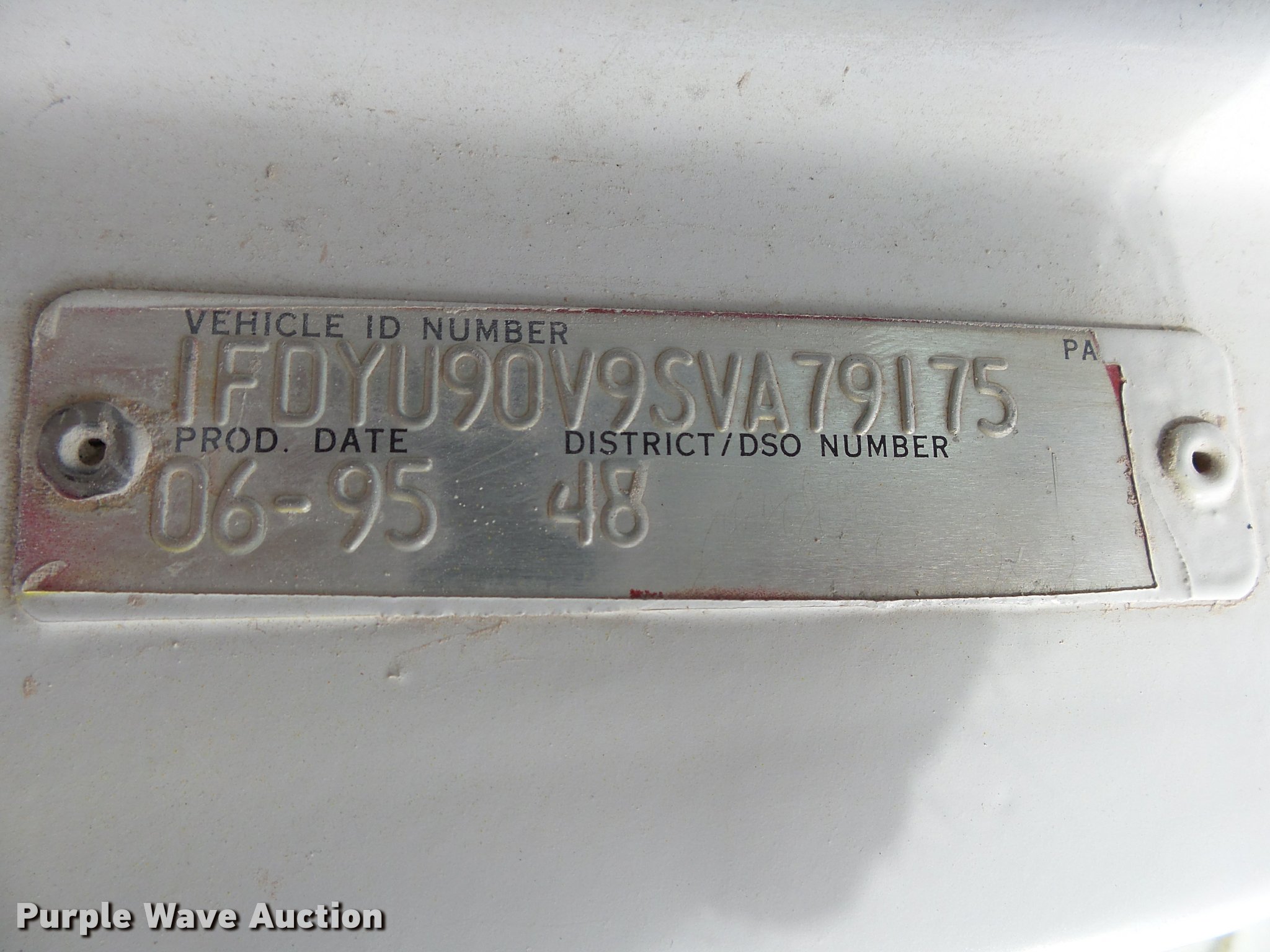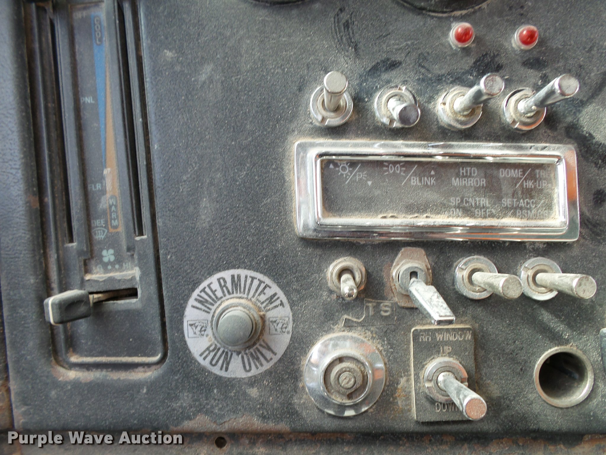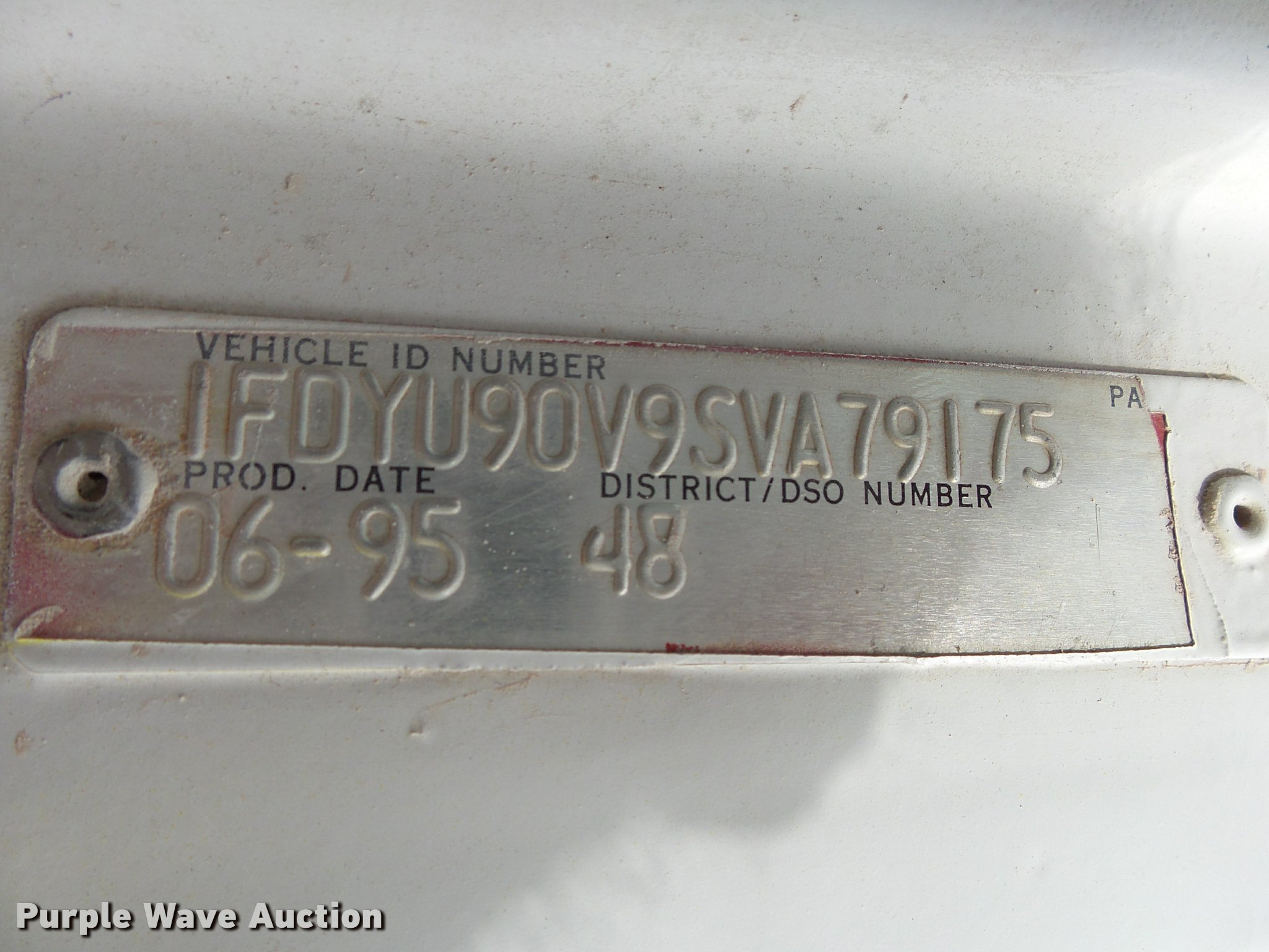 Purple Wave is selling a used Construction Dump Truck in Missouri. This item is a 1995 Ford L9000 dump truck with the following: 148,668 miles on odometer, 1,648 hours on meter, Cummins M11 six cylinder turbo diesel engine, 280 HP, Eaton Fuller Hi-Ranger nine speed manual transmission, Tandem axle, Inter-axle differential lock, Heat, AM/FM, Suspension seat, Front mounted PTO, Gallion 502F-2 steel dump bed, 13'L x 96"W, 39" side height, 12" side board height, Air operated end gate, Single ram hoist, Single fuel tank, Spring suspension, Air brakes, 385/65R22.5 front tires, 11R22.5 rear tires, FAWR 13,180 lbs, RAWR 40,000 lbs, Radio not included, Unit# 54