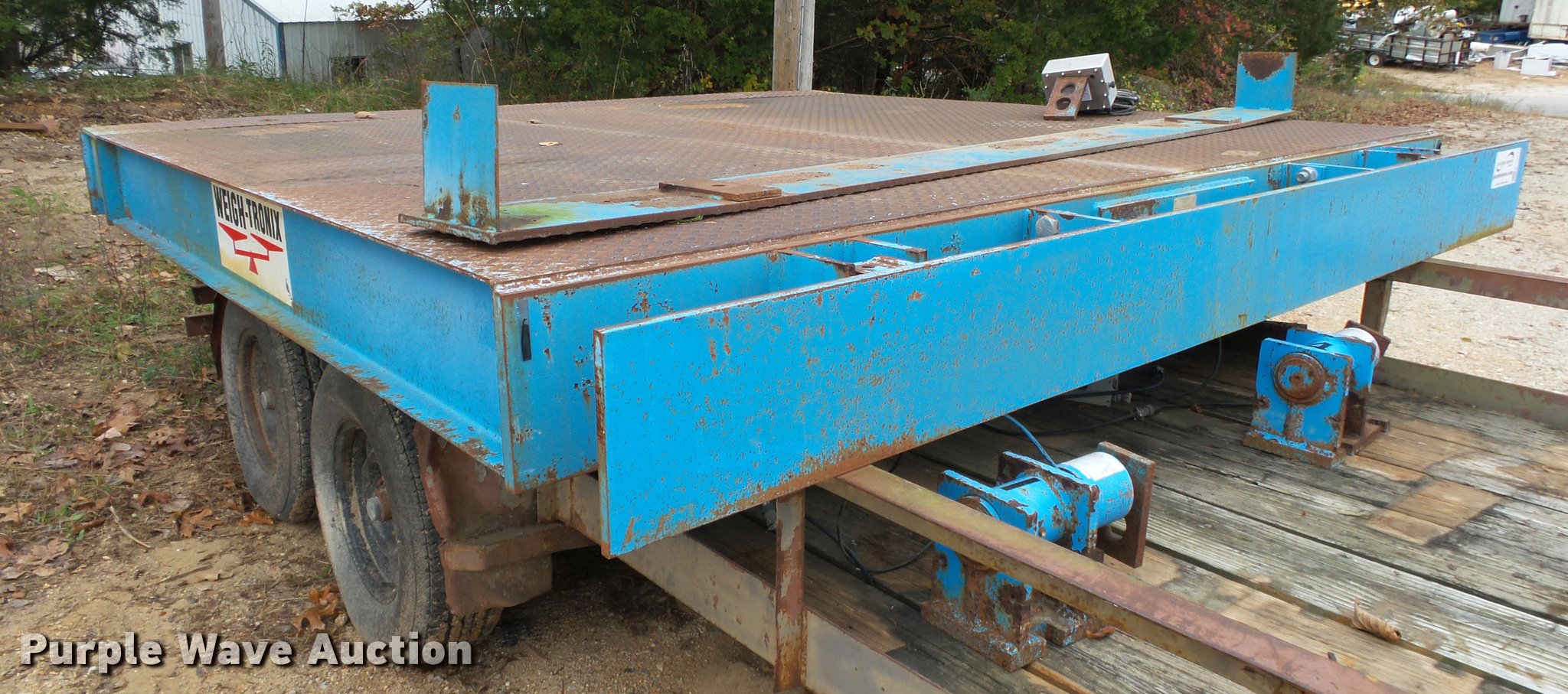 Purple Wave is selling a used Tools in Missouri. This item is a Weigh-Tronix IMTS1010-35T scale with the following: 10' x 10' platform, 70,000 lbs nom. capacity, Chc 70,000 lbs, 10 lbs minimum capacity, Digital monitor, Model W1-125, Serial 073237, Serial 982