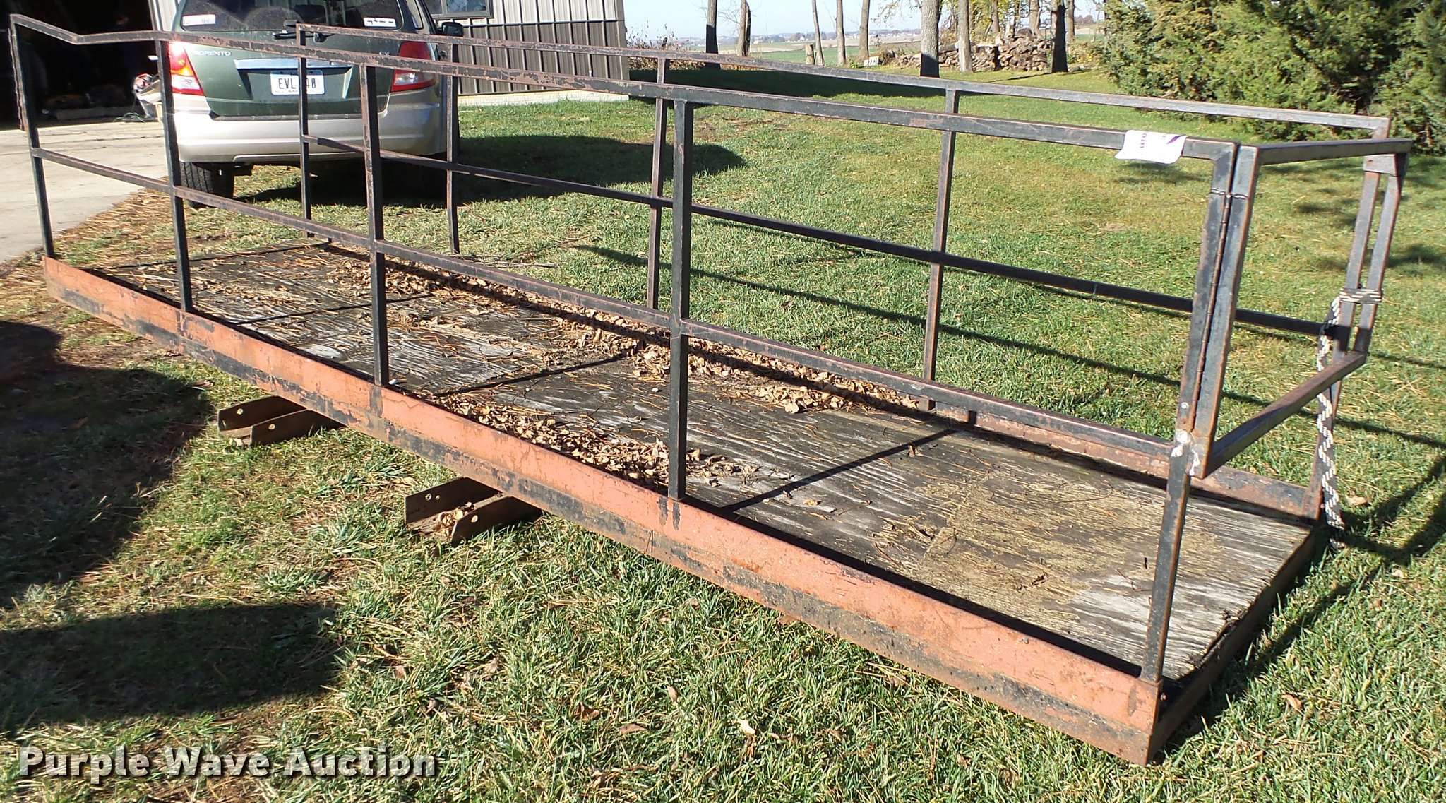 Purple Wave is selling a used Tools in Iowa. This item is a Personnel basket with the following: 16' x 4', Rails, Wood floor, Forklift pockets