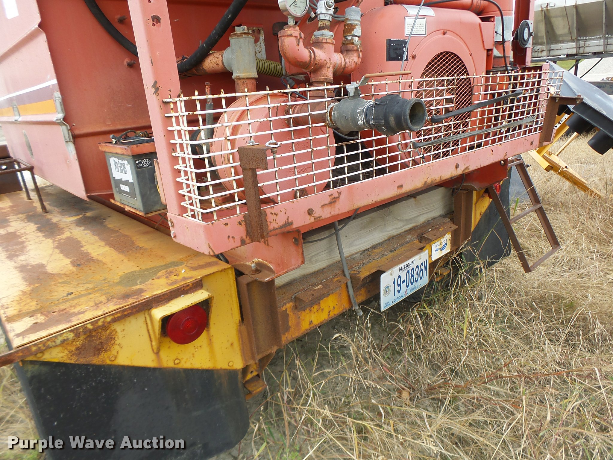 1997 Shop built FMC C100E1000SB pressure washer trailer. 1,211 hours on meter, Wisconsin VG4D1 four cylinder gas engine Serial 6271639, Electric start, Pintle hitch, Spring suspension, Tandem axle, 9.50-16.5 tires, Unknown operating condition, Serial A326841, MODOT ID 2A05234. Missouri title. MOHMTRAILER008070. Missouri Department of Transportation (MODOT). 26826 US Hwy 63. Macon, MO 63552