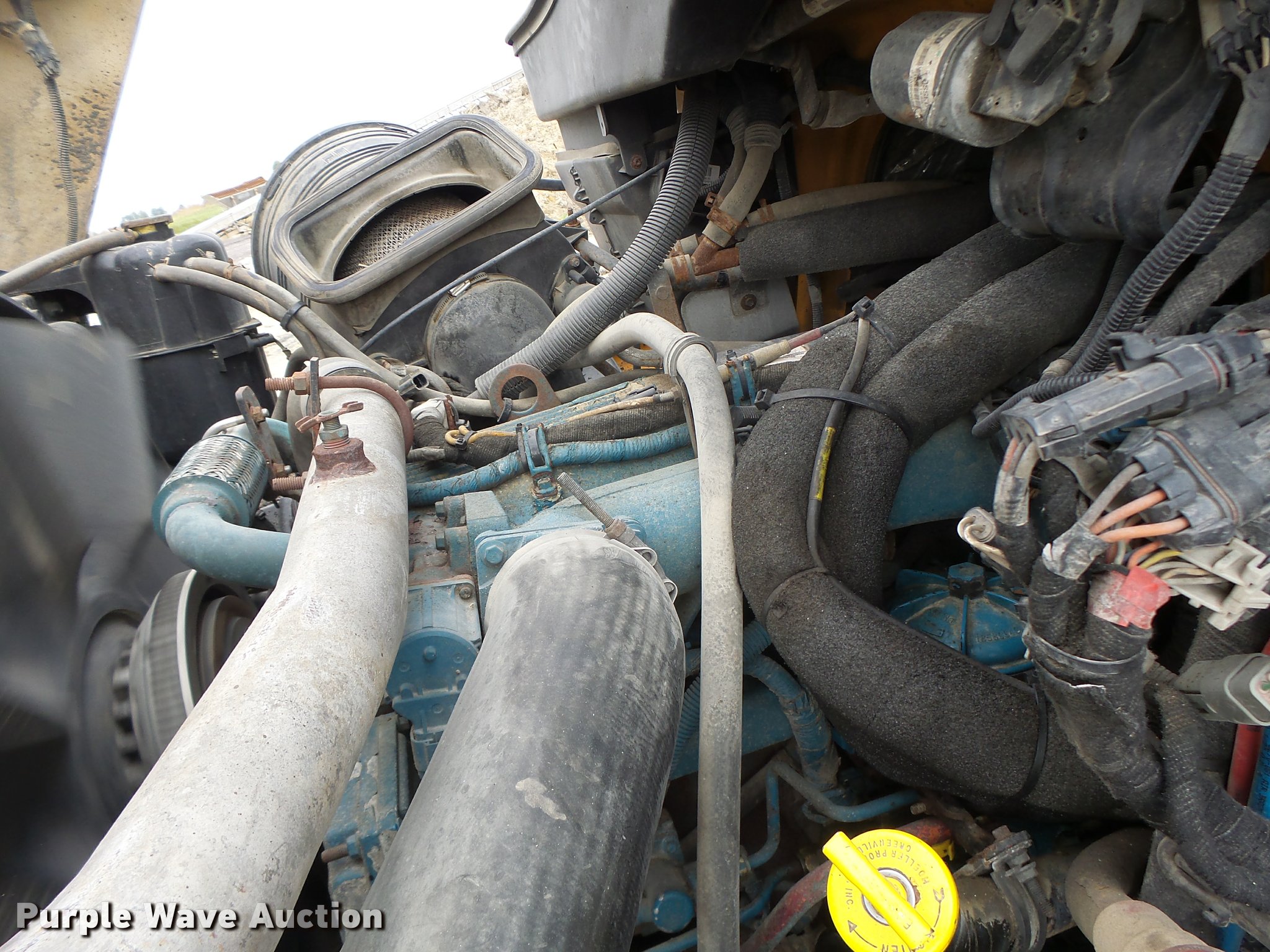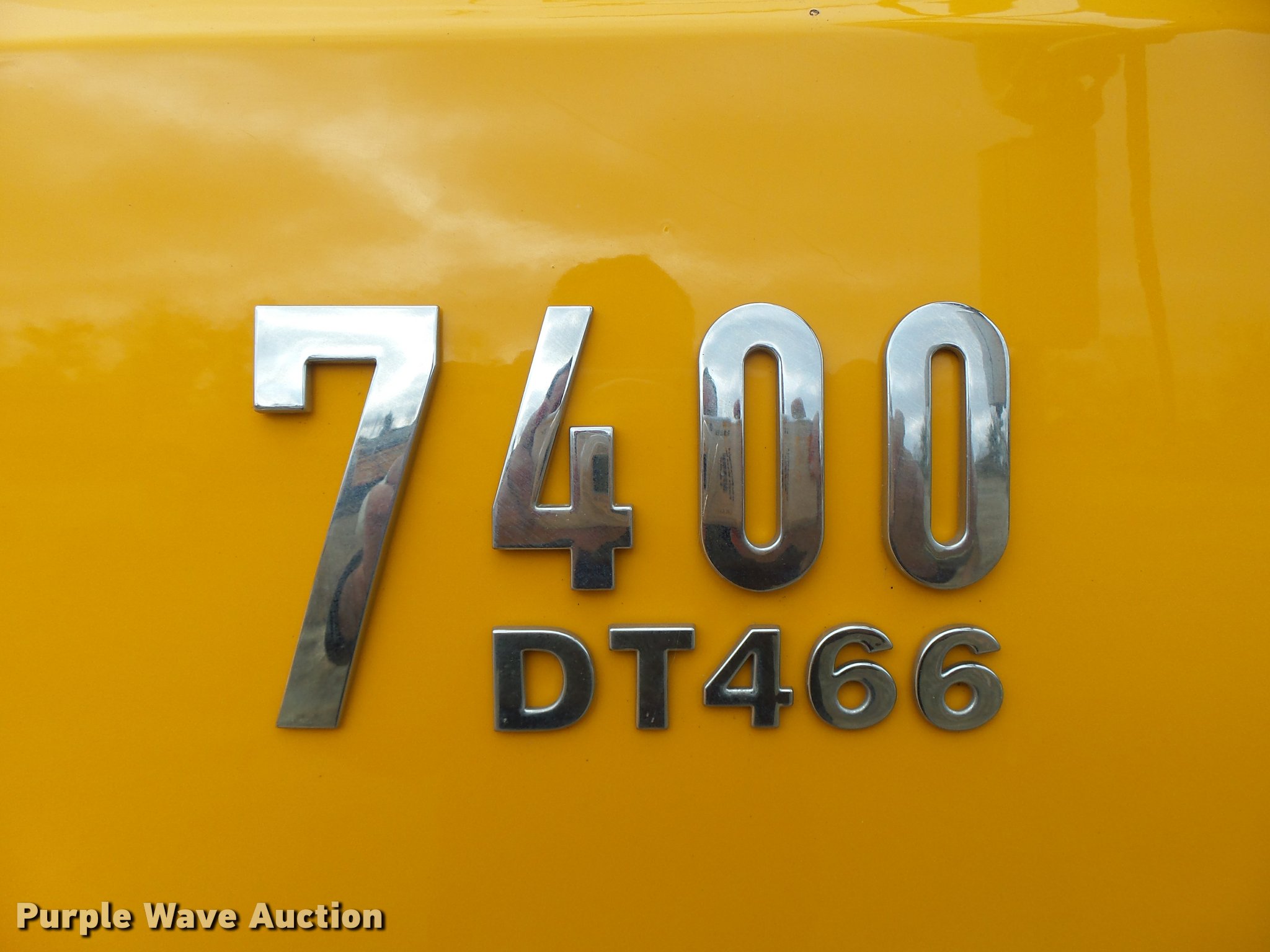 Purple Wave is selling a used Construction Dump Truck in Missouri. This item is a 2006 International 7400 dump truck with the following: 156,356 miles on odometer, 8,310 hours on meter, International DT466 7.6L L6 turbo diesel engine, Allison automatic transmission, Single axle, AC and heat, AM/FM, Heated mirrors, Air suspension seat, Brake controller, PTO, Toolboxes, Wheeler HT1624 steel dump bed, 10'L x 8'W, 24" side height, Air operated end gate, Single ram hoist, 8' side plow, Flink spreader, MODOT ID 3A09265, Single fuel tank, Pintle hitch, Trailer wiring, Spring suspension, Air brakes, 315/80R22.5 front tires, 11R22.5 rear tires, AC clutch may need to be replaced, CB radio not included, Rust, MODOT ID 7418